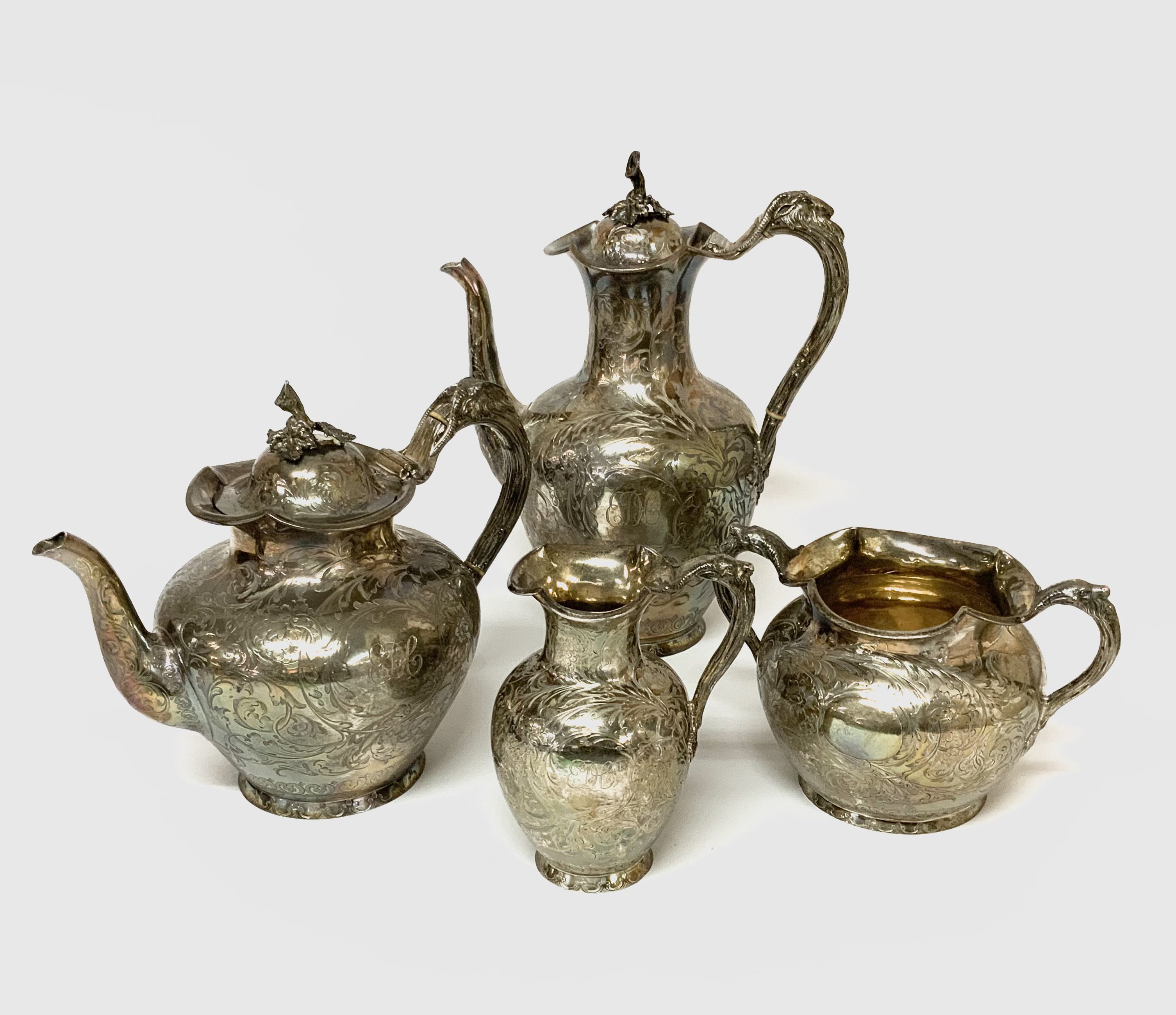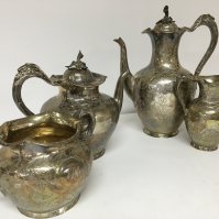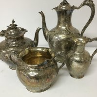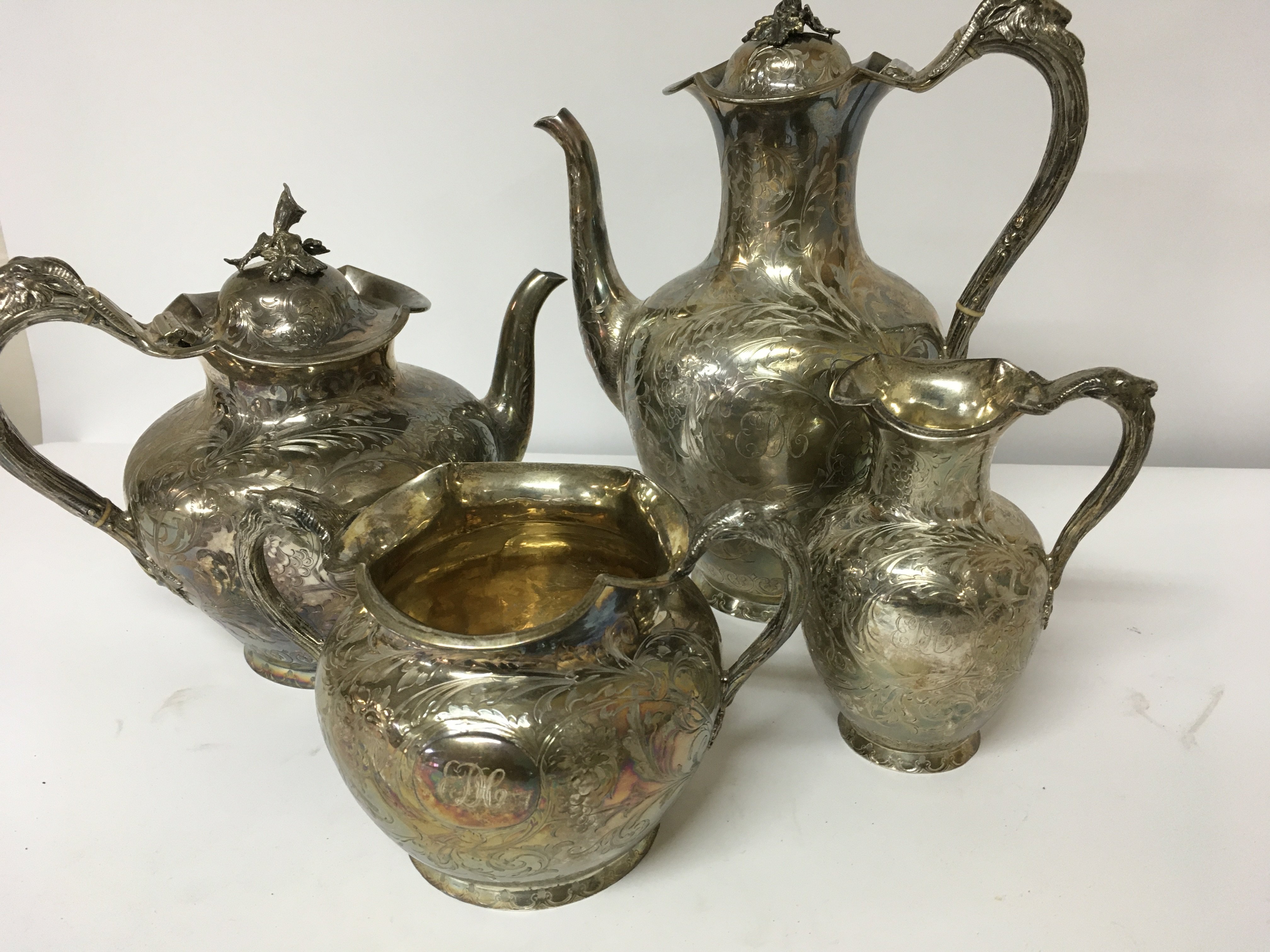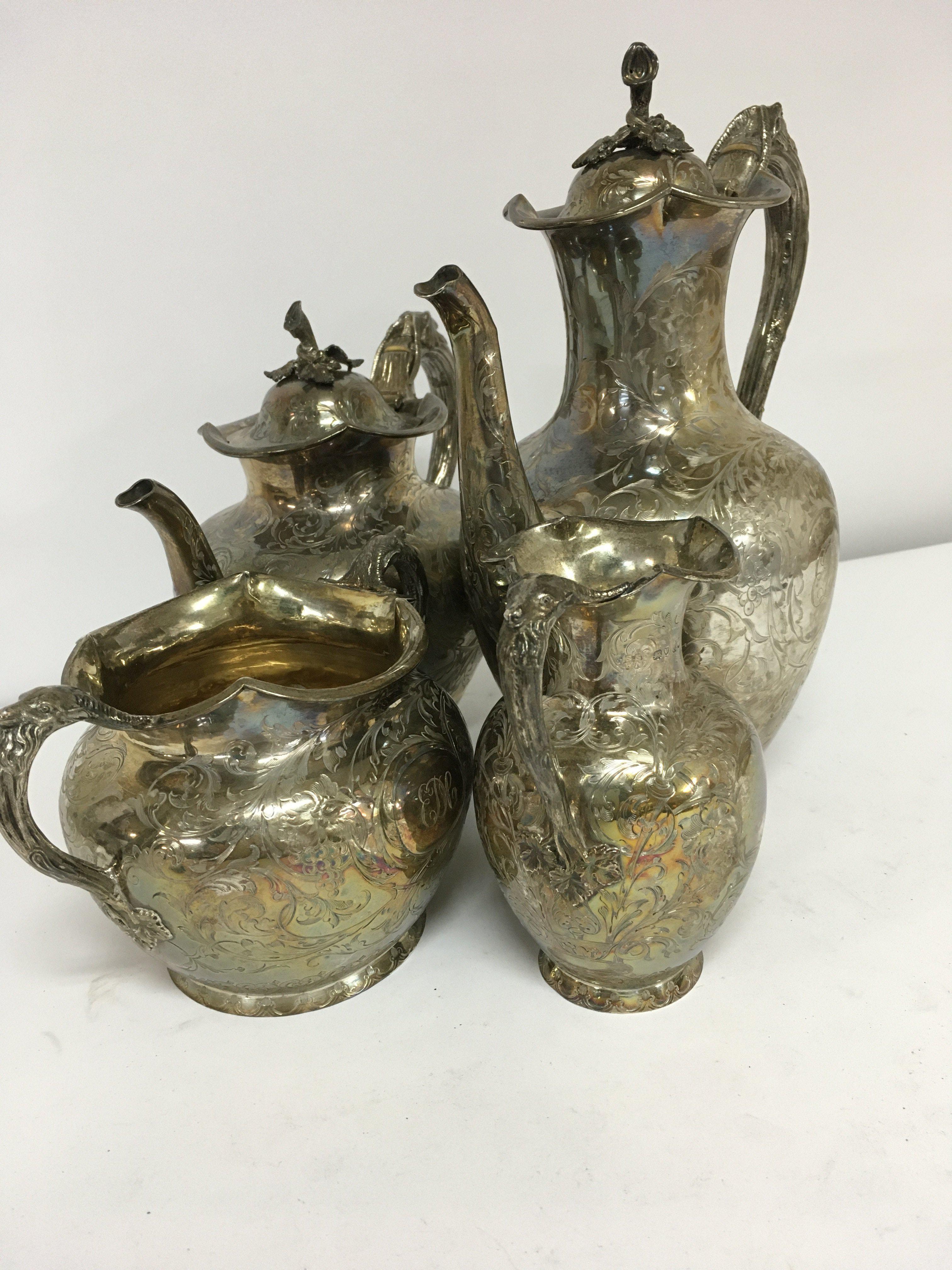 A Victorian four piece silver tea set comprising teapot coffee pot milk jug and sugar bowl 1.955 kg
