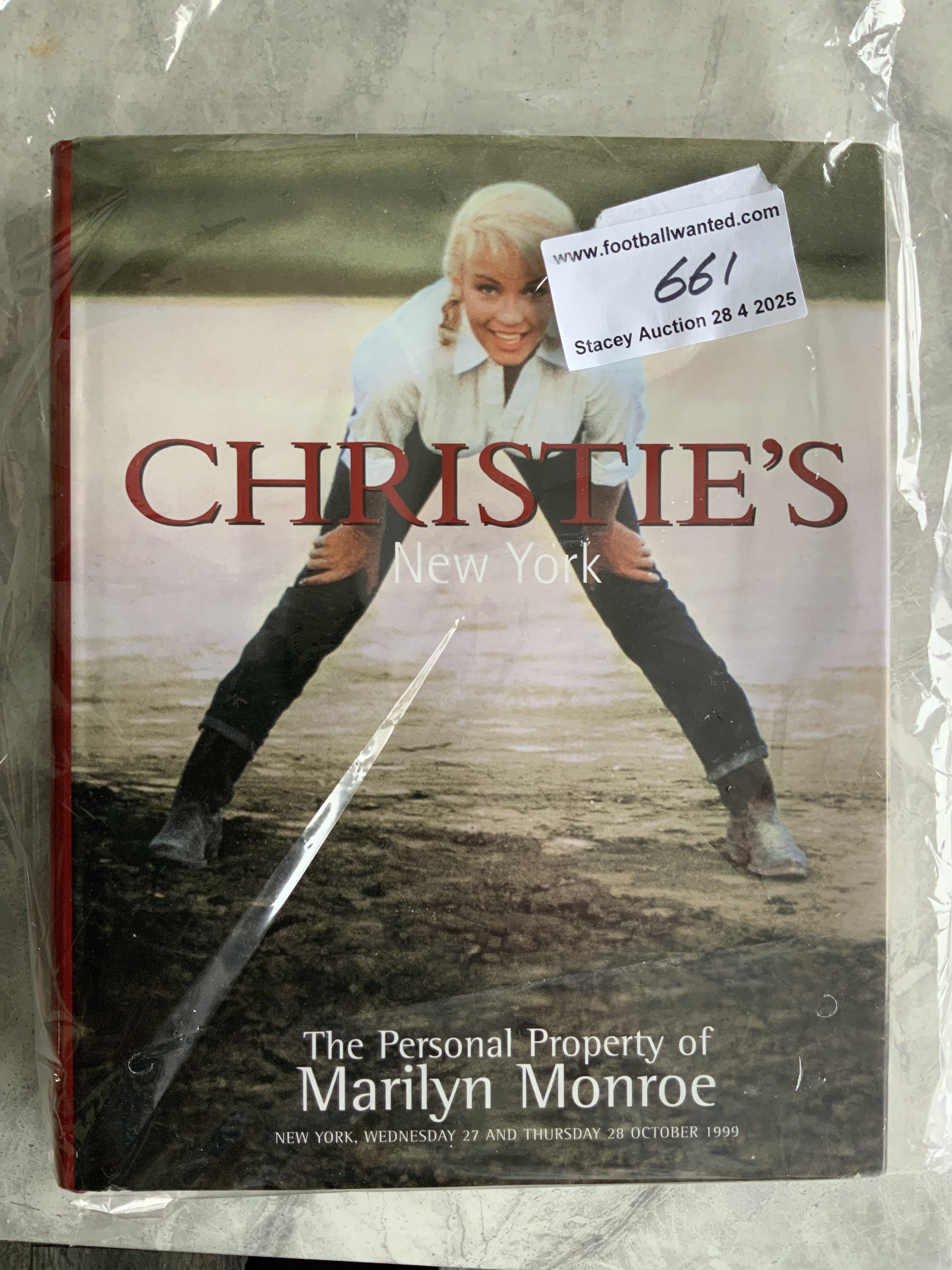Marilyn Monroe Christies New York Hardback Auction Book: Over 400 pages in this stunning heavy book for the 1999 sale of Marilyn Monroes personal property. Tiny tear to dust jacket rear page.