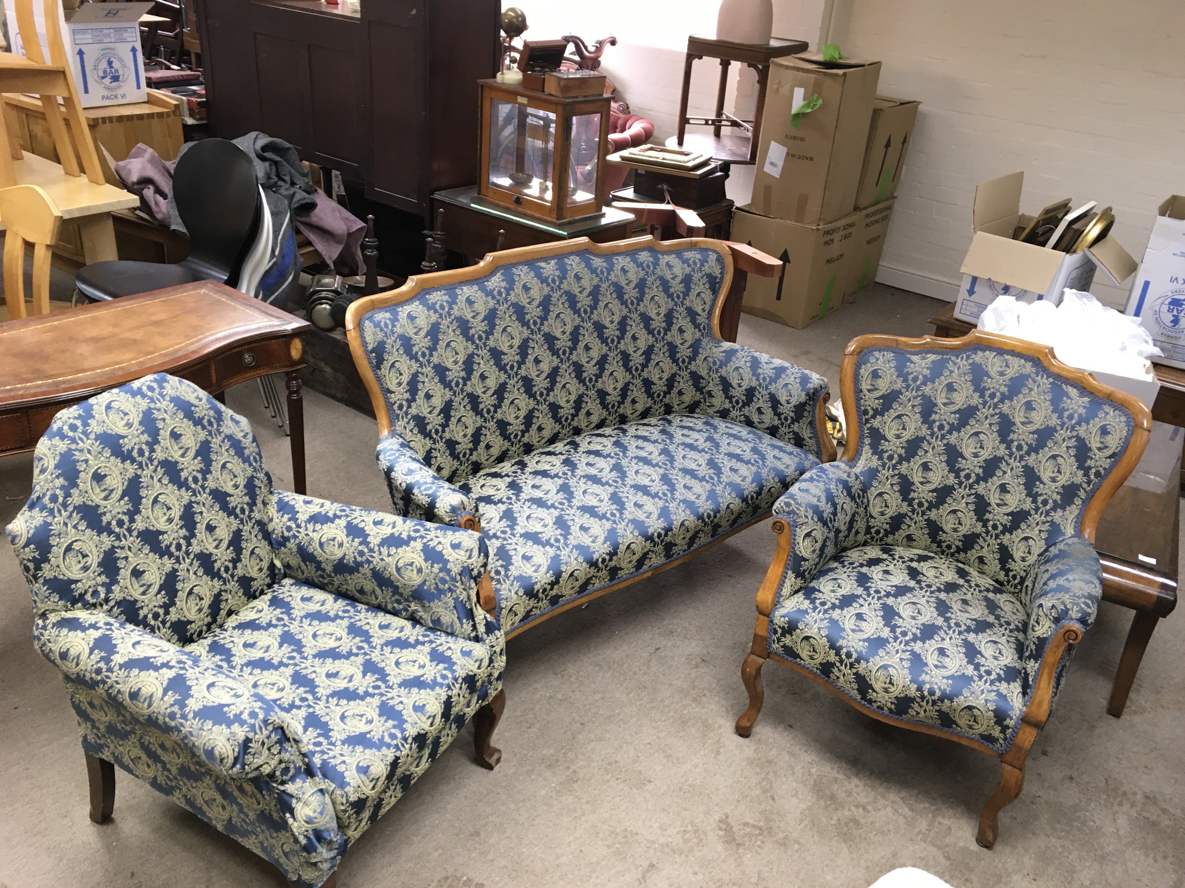 An Edwardian upholstery three piece suite , sofa length 52x width 132x height 94cm.