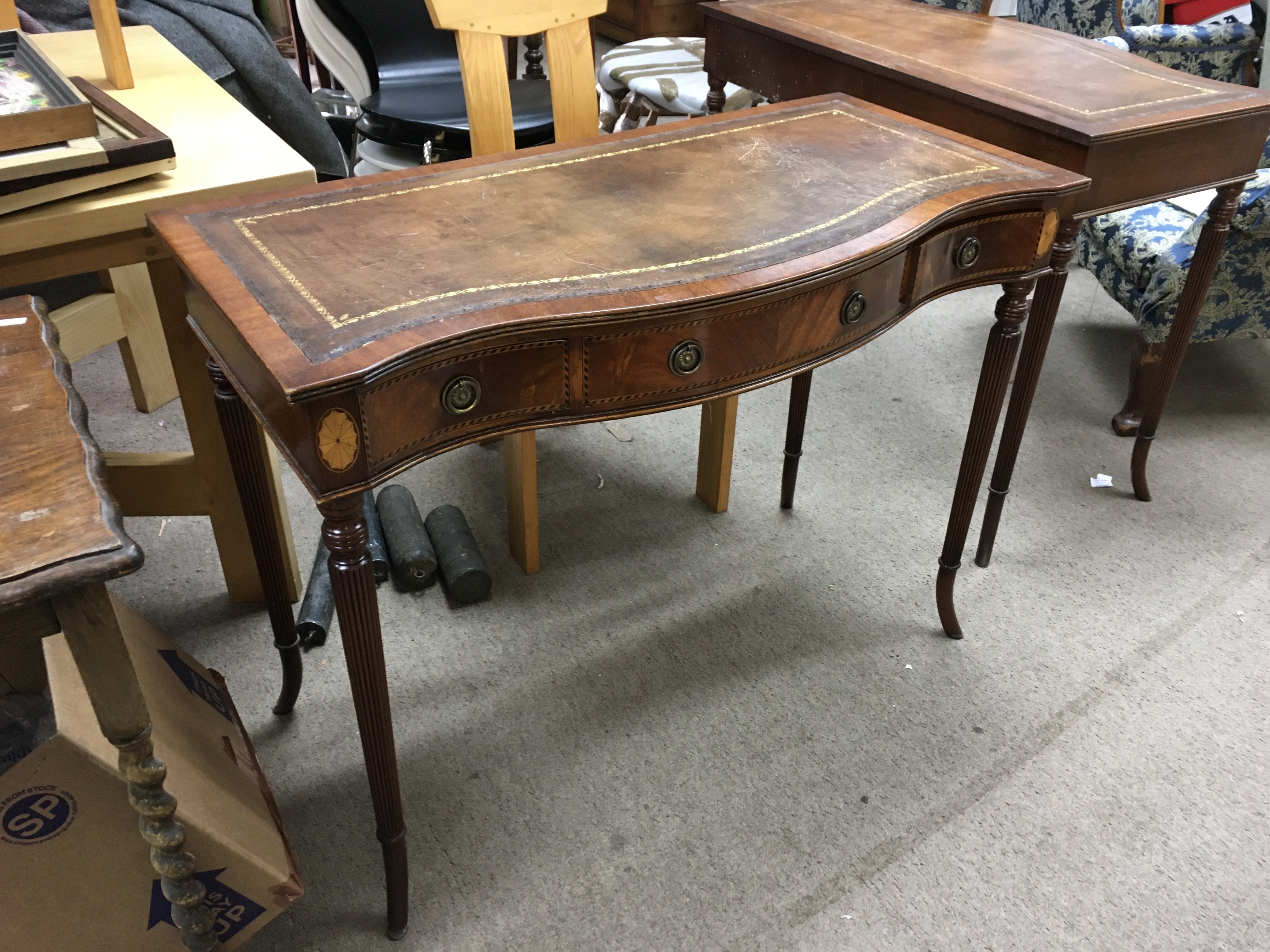 A pair of 20th century inland Mahogany serpentine fronted side tables 48x100x74