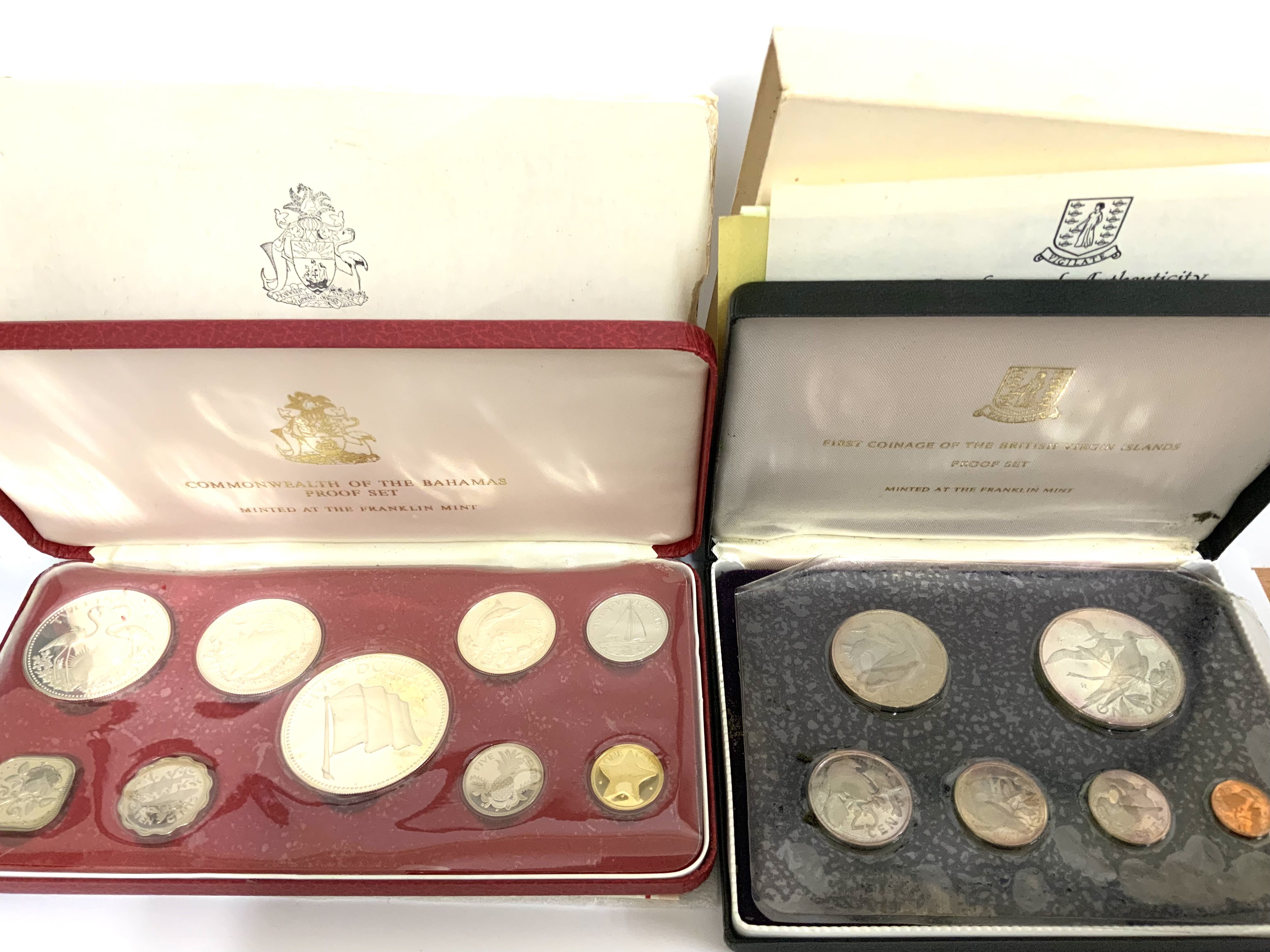 6 Franklin Mint proof sets to include Barbados, X 2 Virgin Islands, Cayman Island, Jamaica, Bahamas.