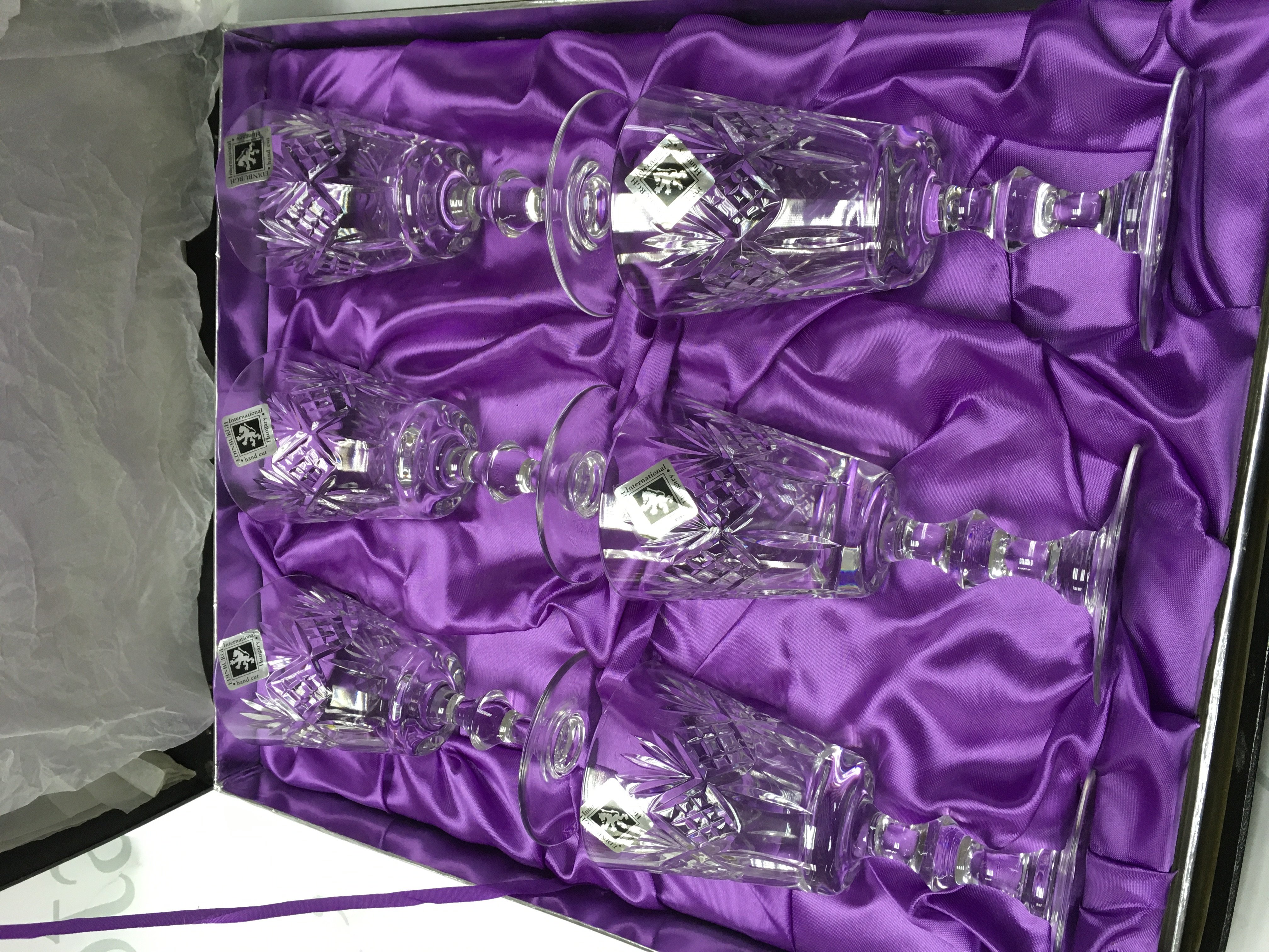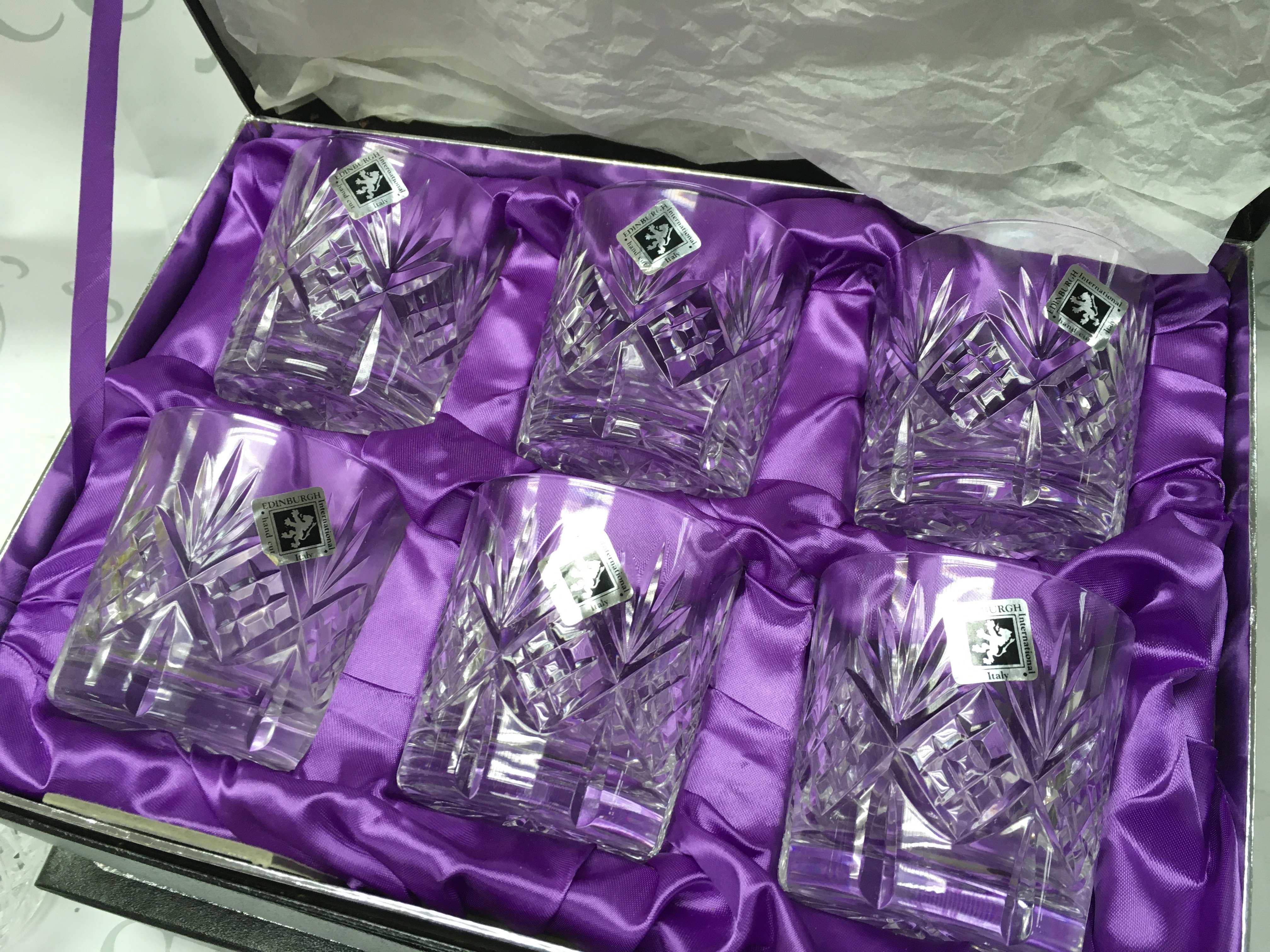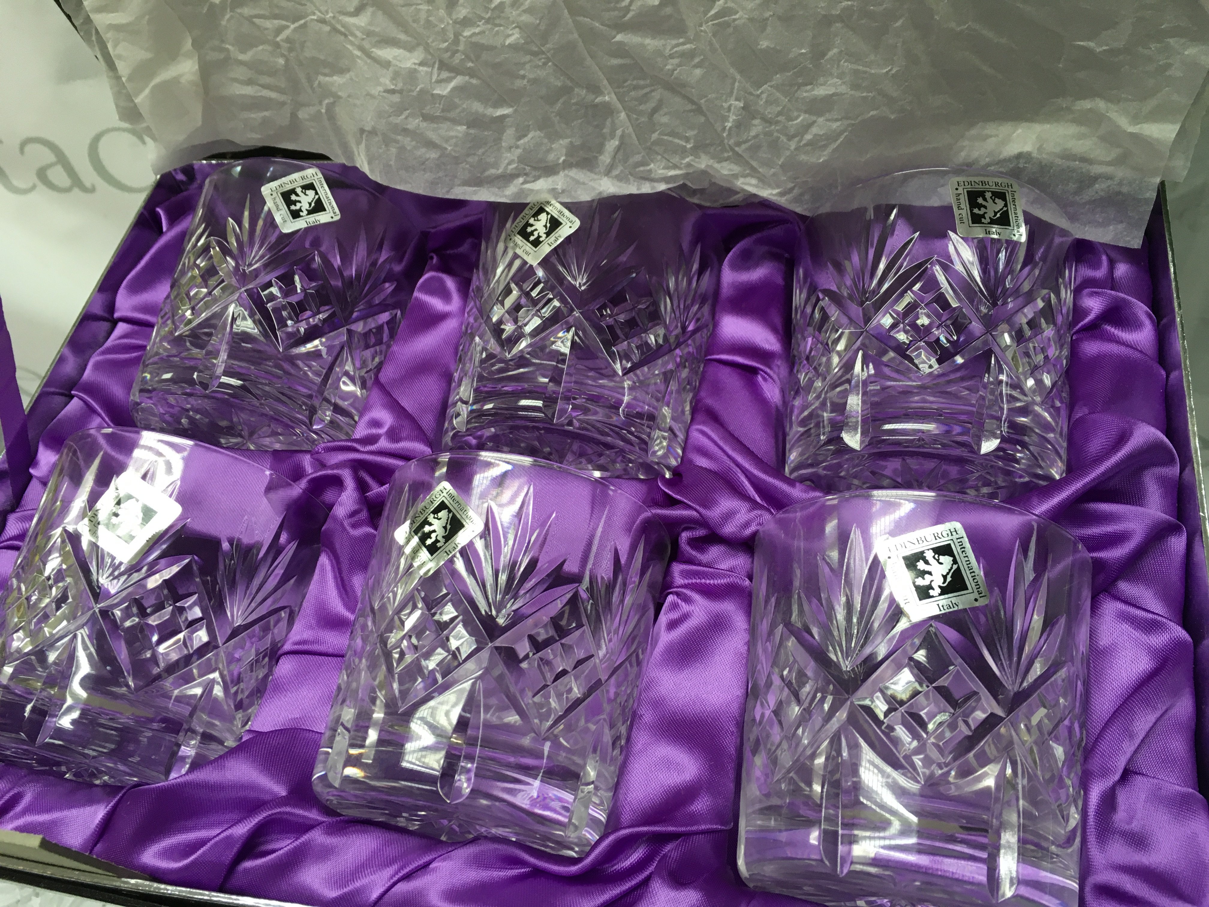 Five boxed sets of Edinburgh crystal glasses and an unboxed decanter. This lot cannot be posted