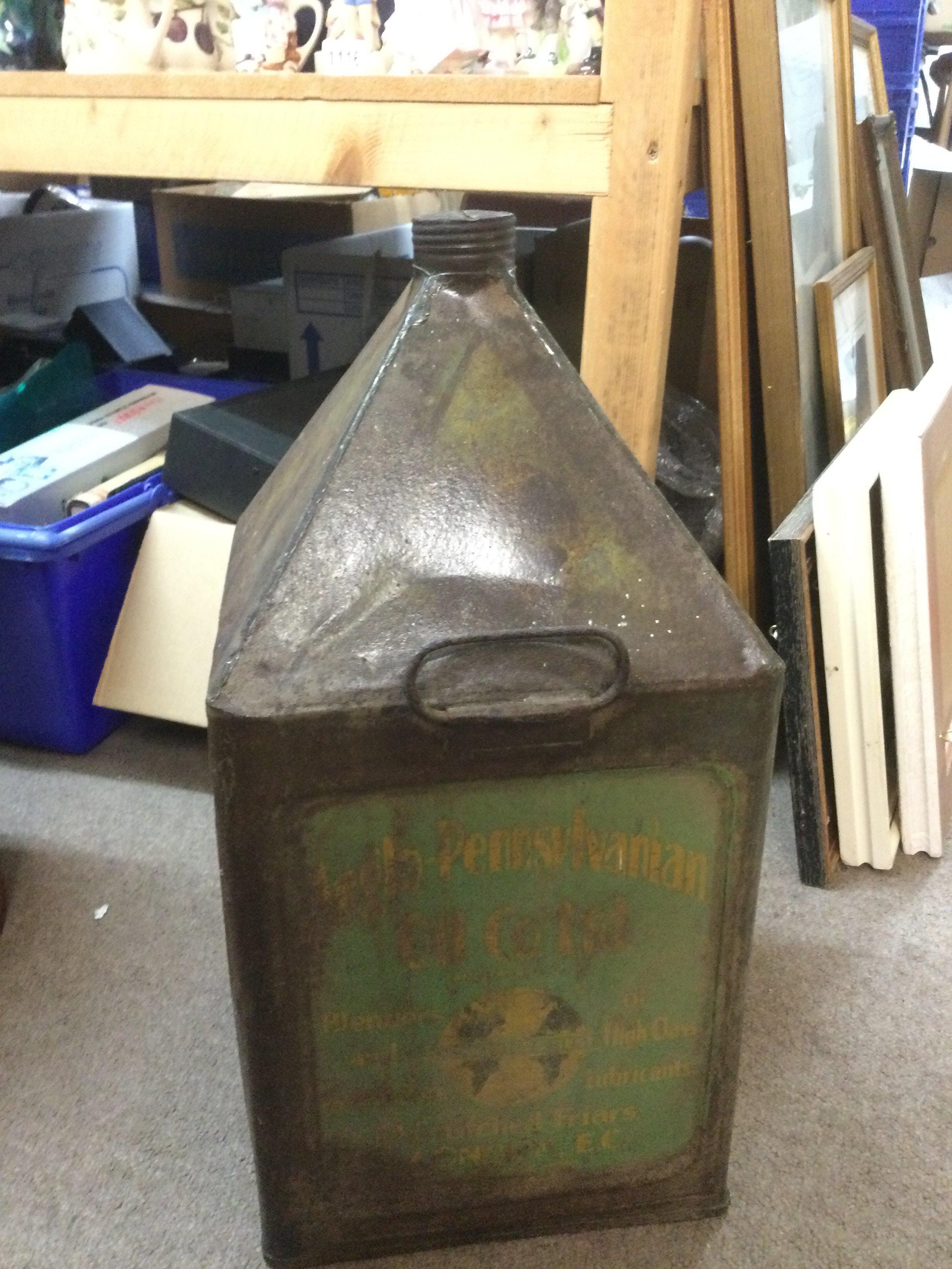 A rare vintage 5 gallon pyramid can for the Anglo Pennsylvania oil company Ltd. Shipping category D.