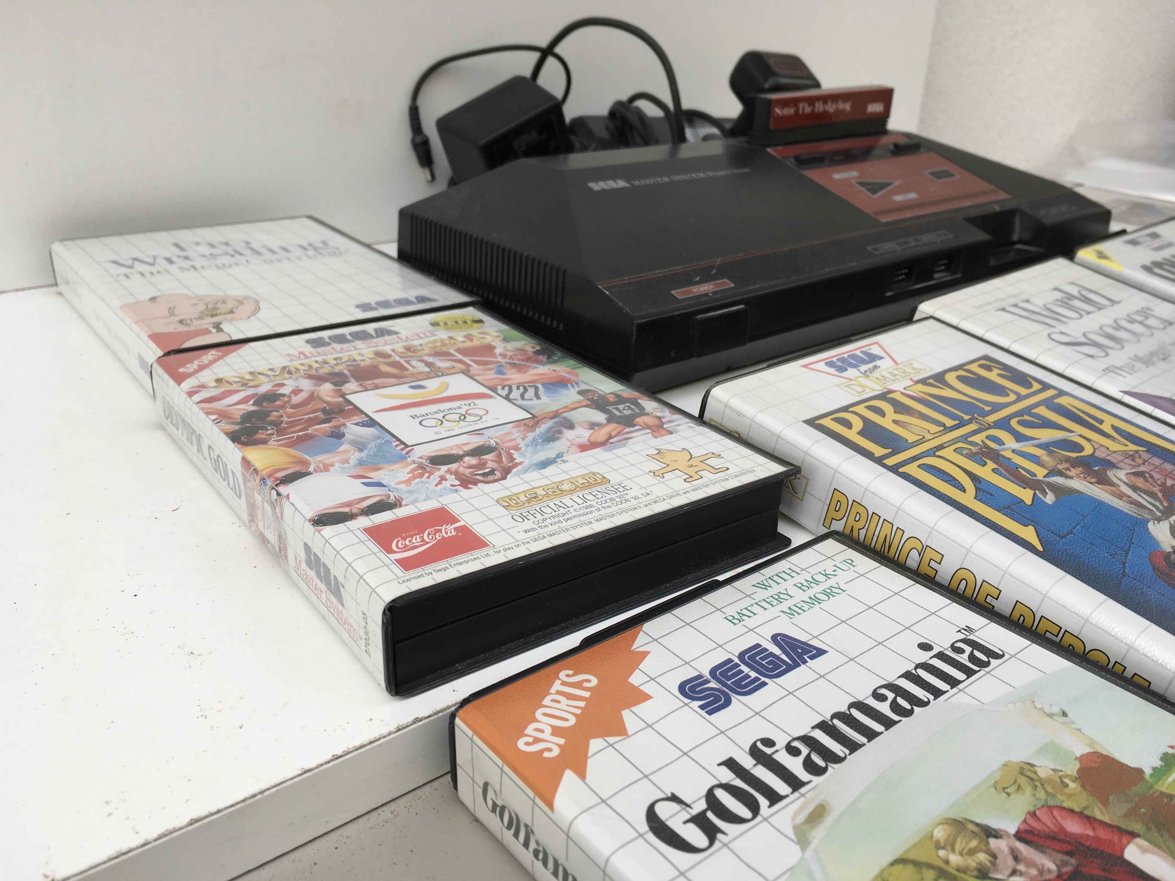A SEGA Master System includes power supply..control stick..9 games cartridges. No reserve