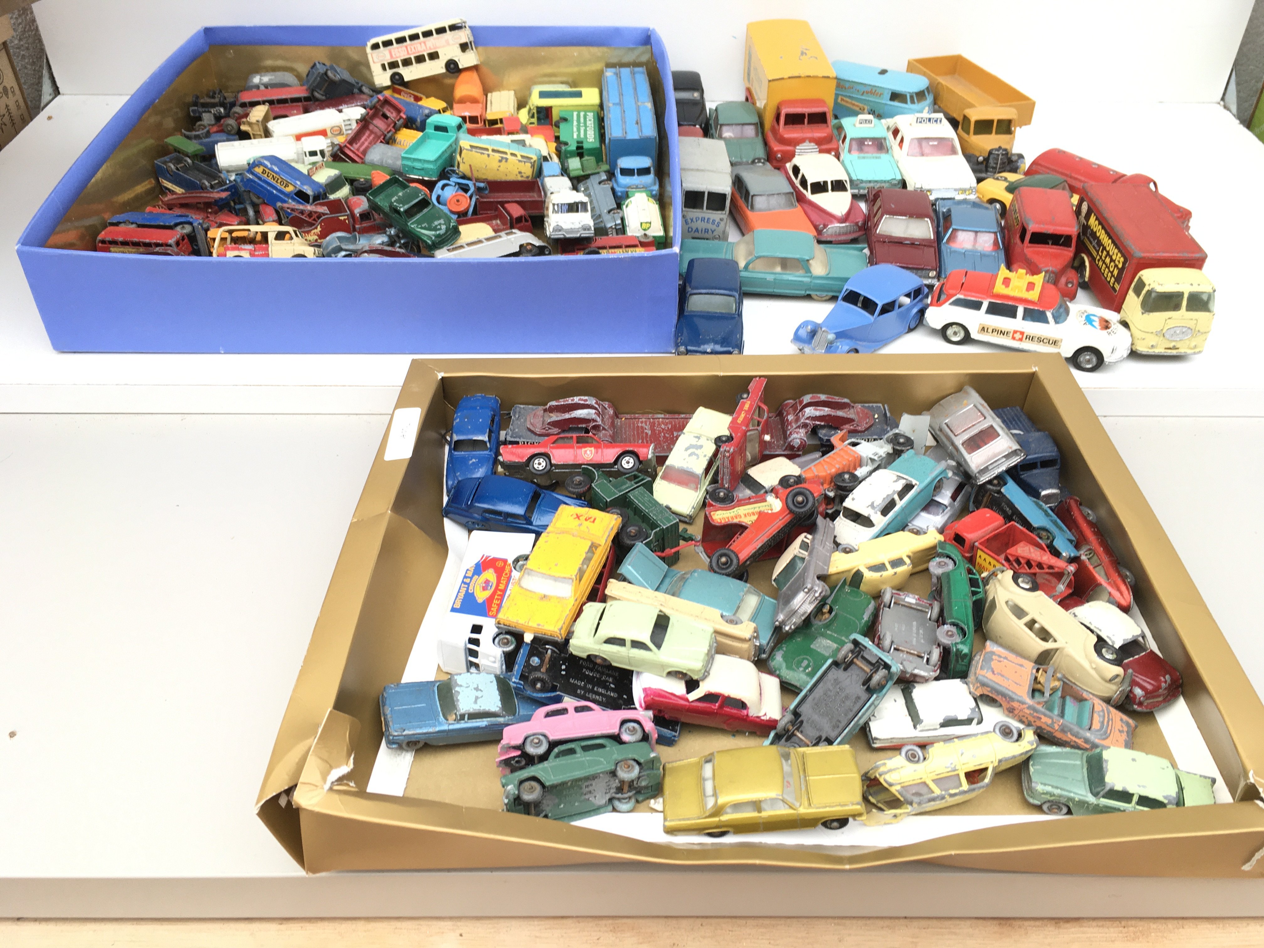 A Collection in excess of 100 Playworn diecast model vehicles.. manufactured by Corgi, Dinky, Lesney etc. no reserve
