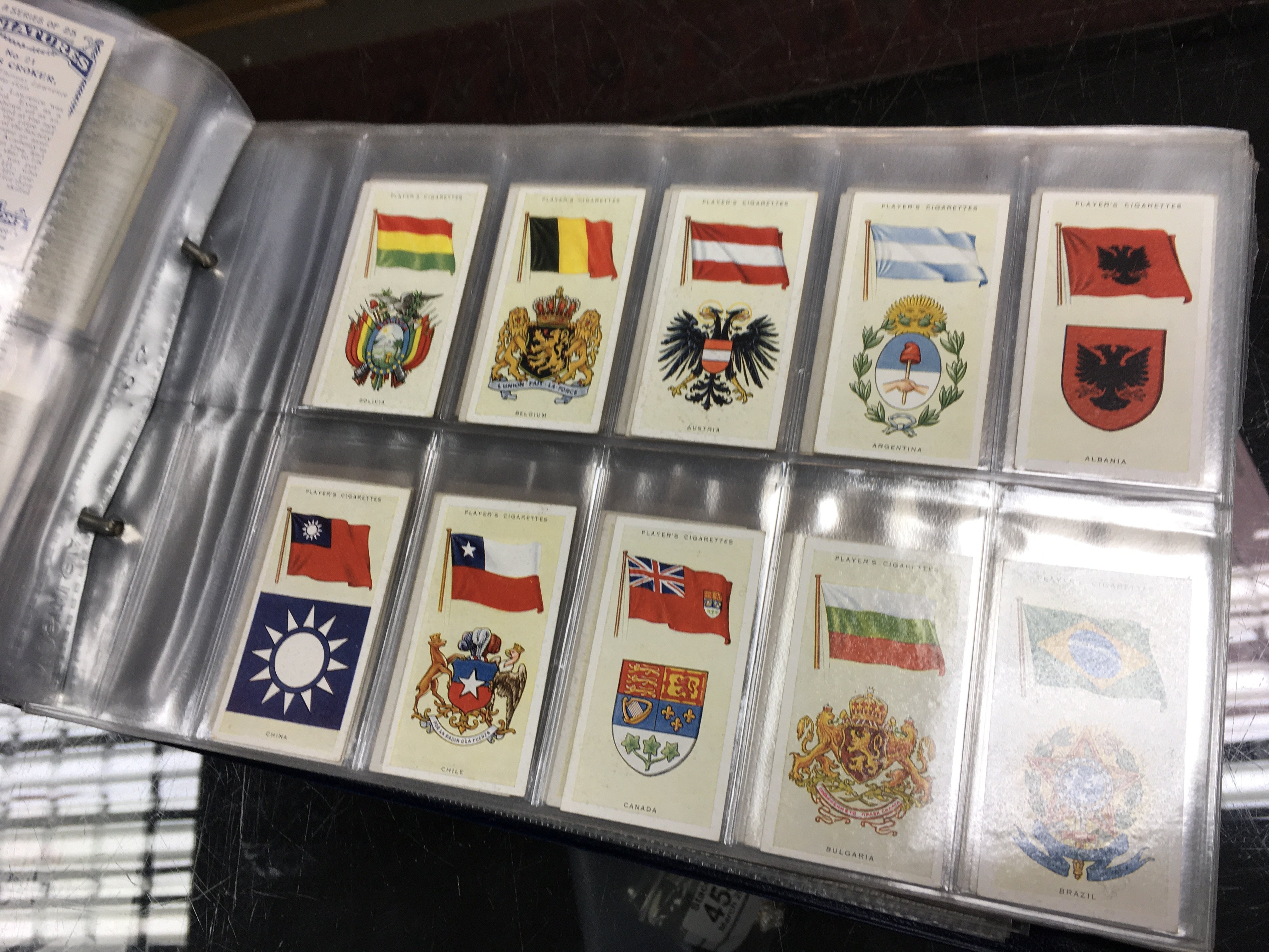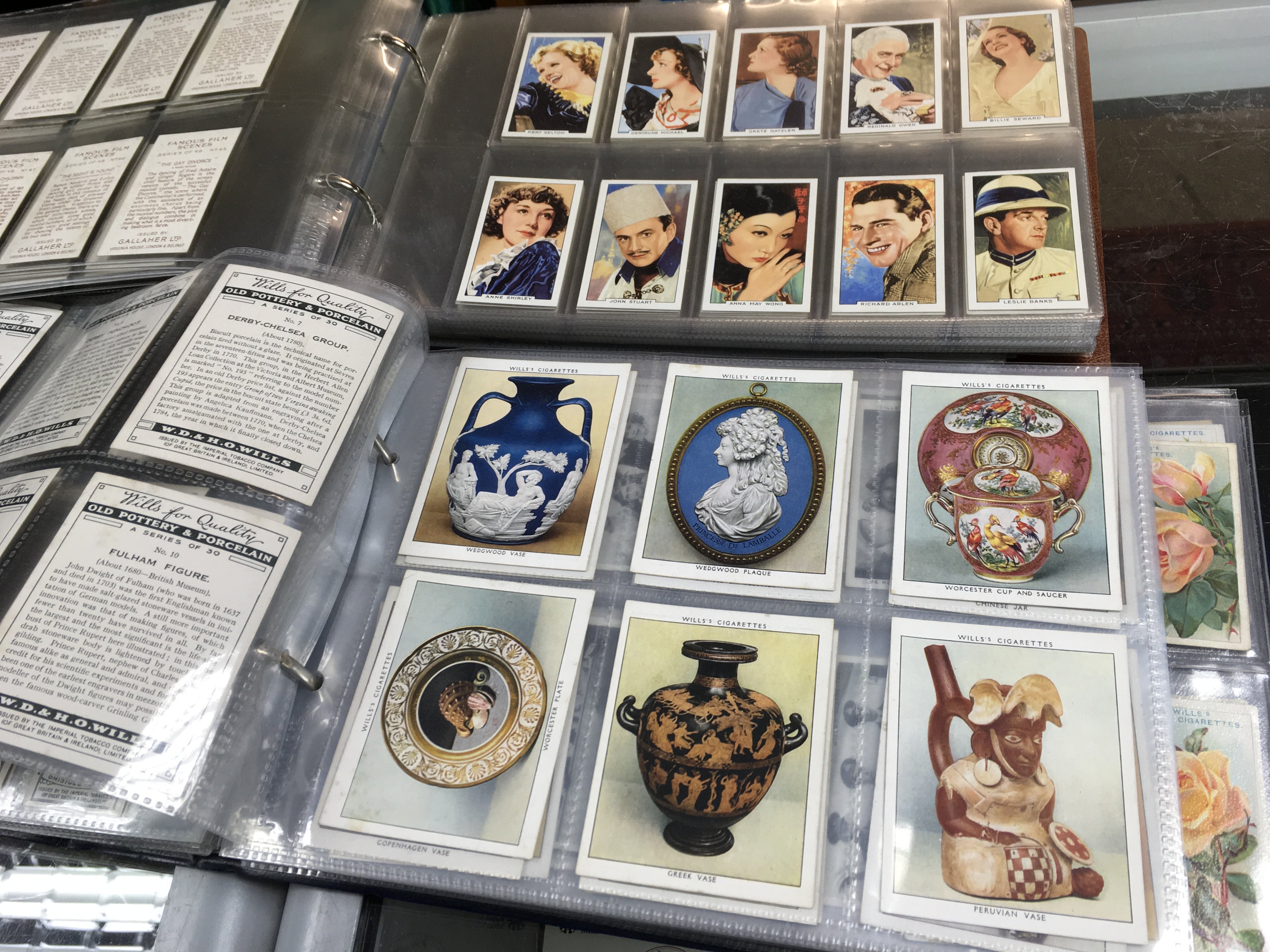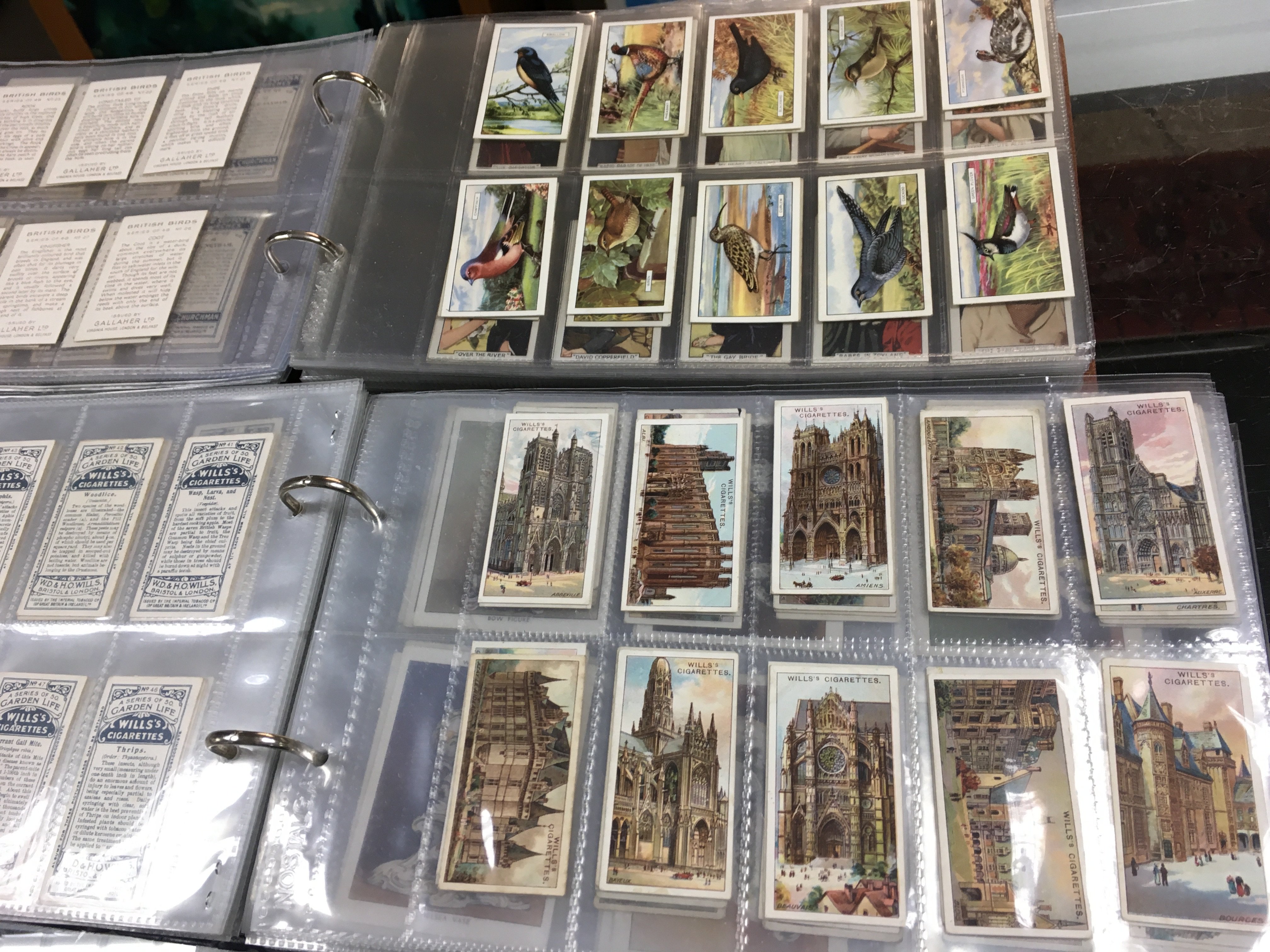 Five cigarette card albums , mostly complete sets of Wills, Players etc . Also containing cigar bands and phone cards