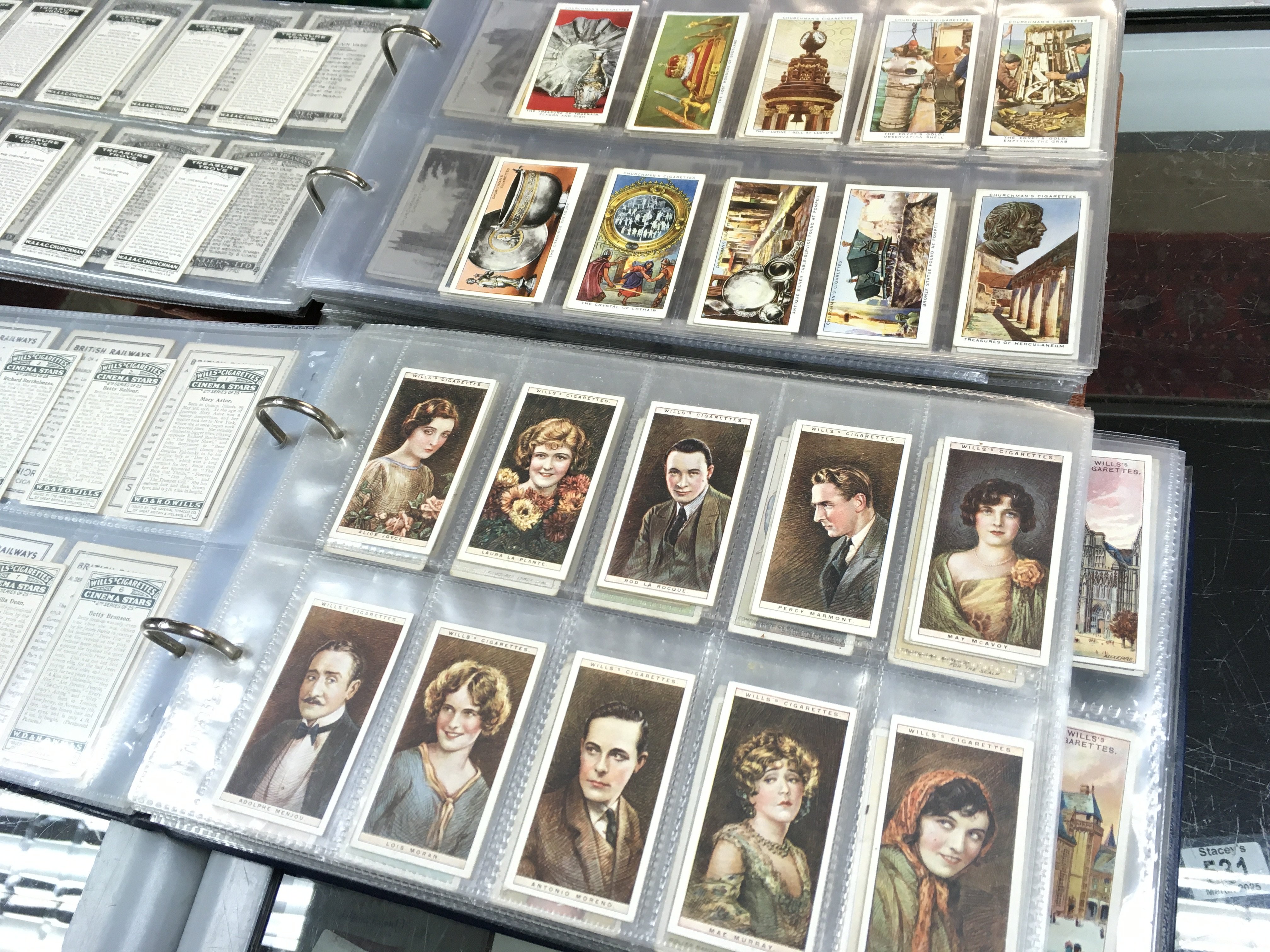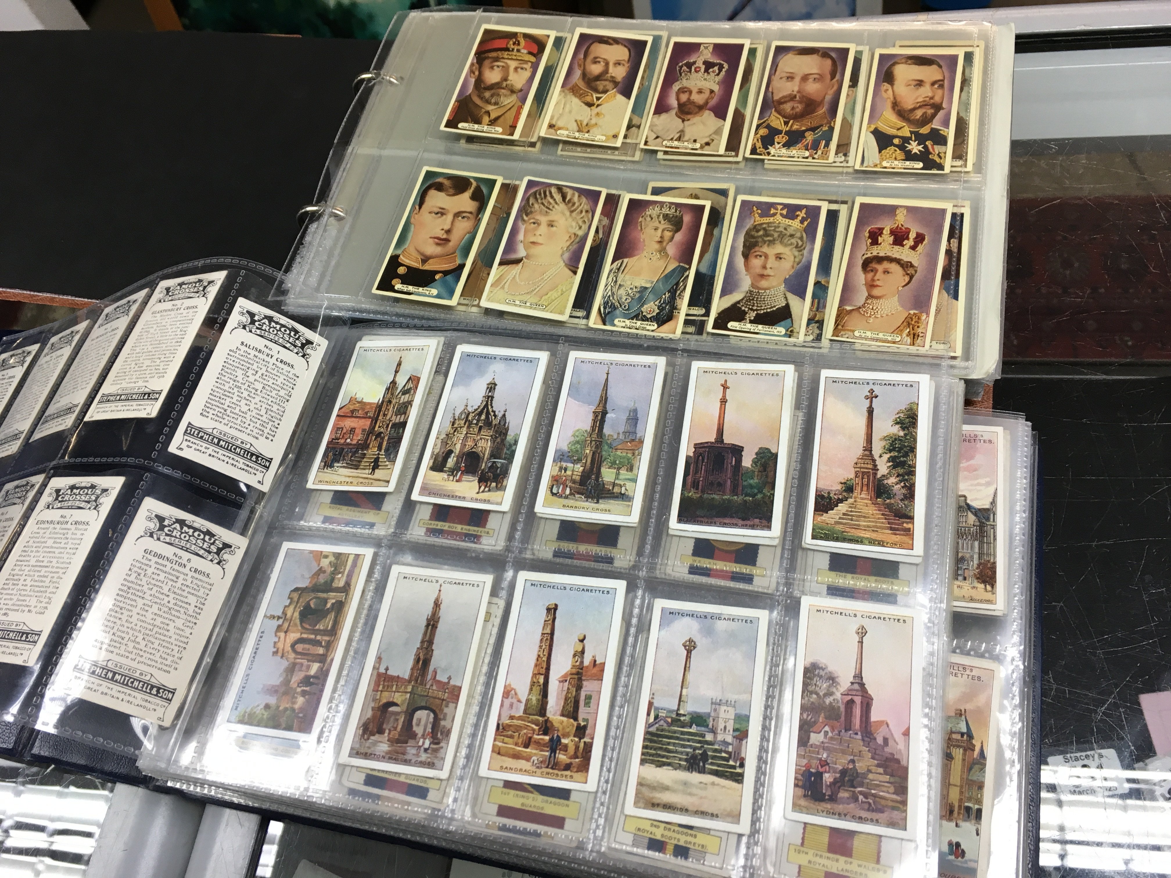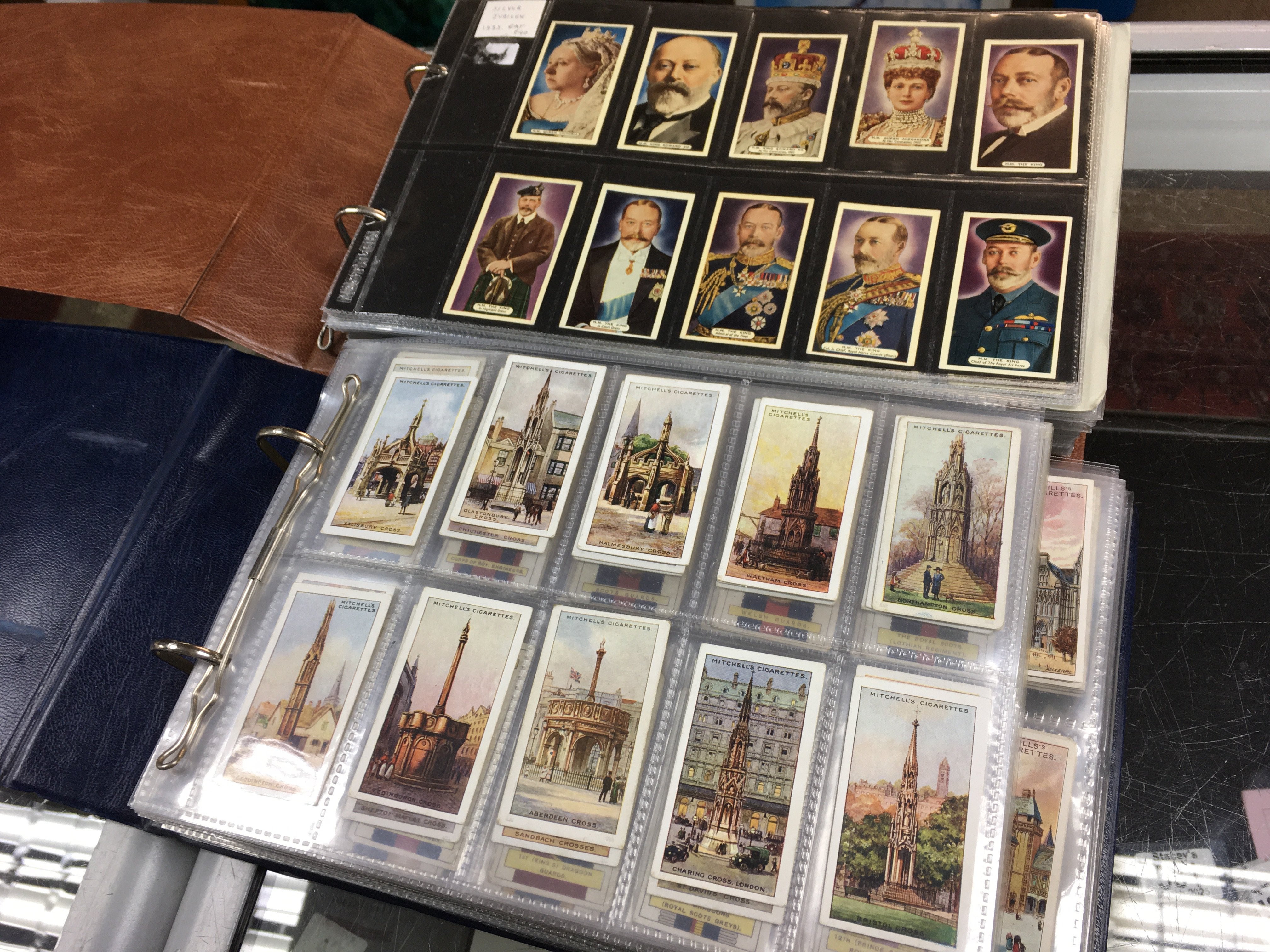 Five cigarette card albums , mostly complete sets of Wills, Players etc . Also containing cigar bands and phone cards