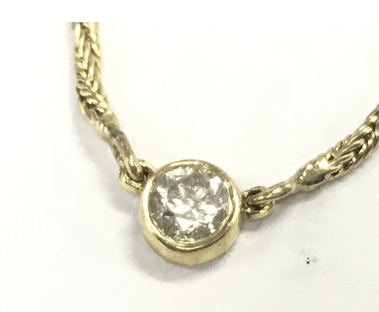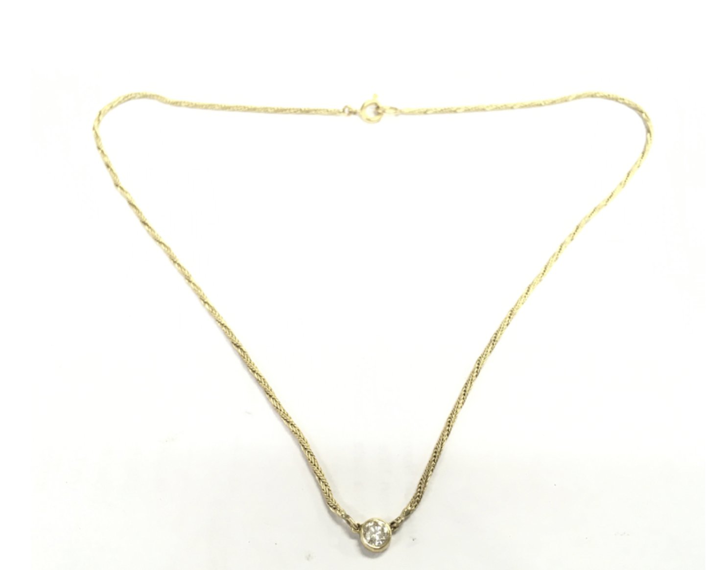 An unmarked yellow metal choker snake chain with stone set pendant, total weight 5.4g postage category A