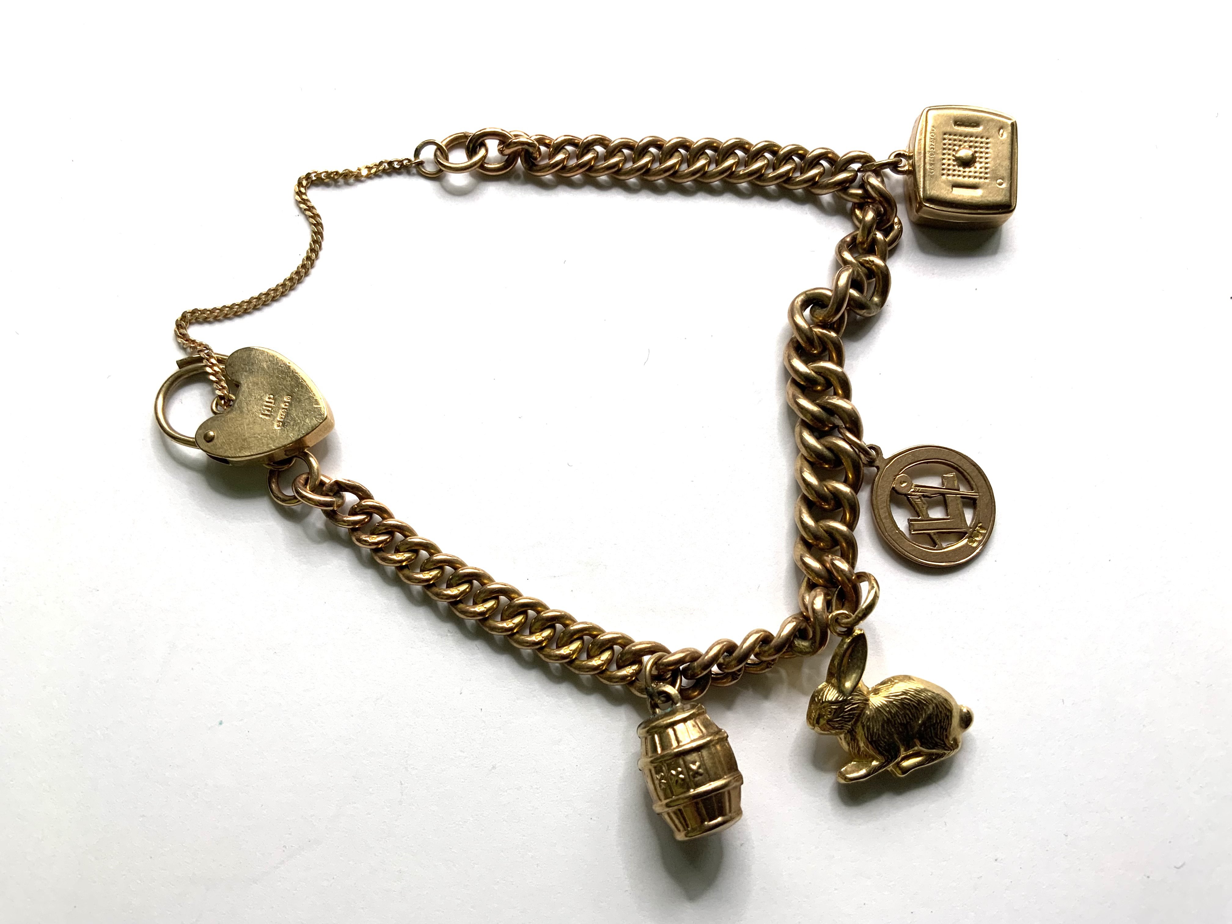 A 9ct gold charm bracelet. 10.9g (A)Condition Report