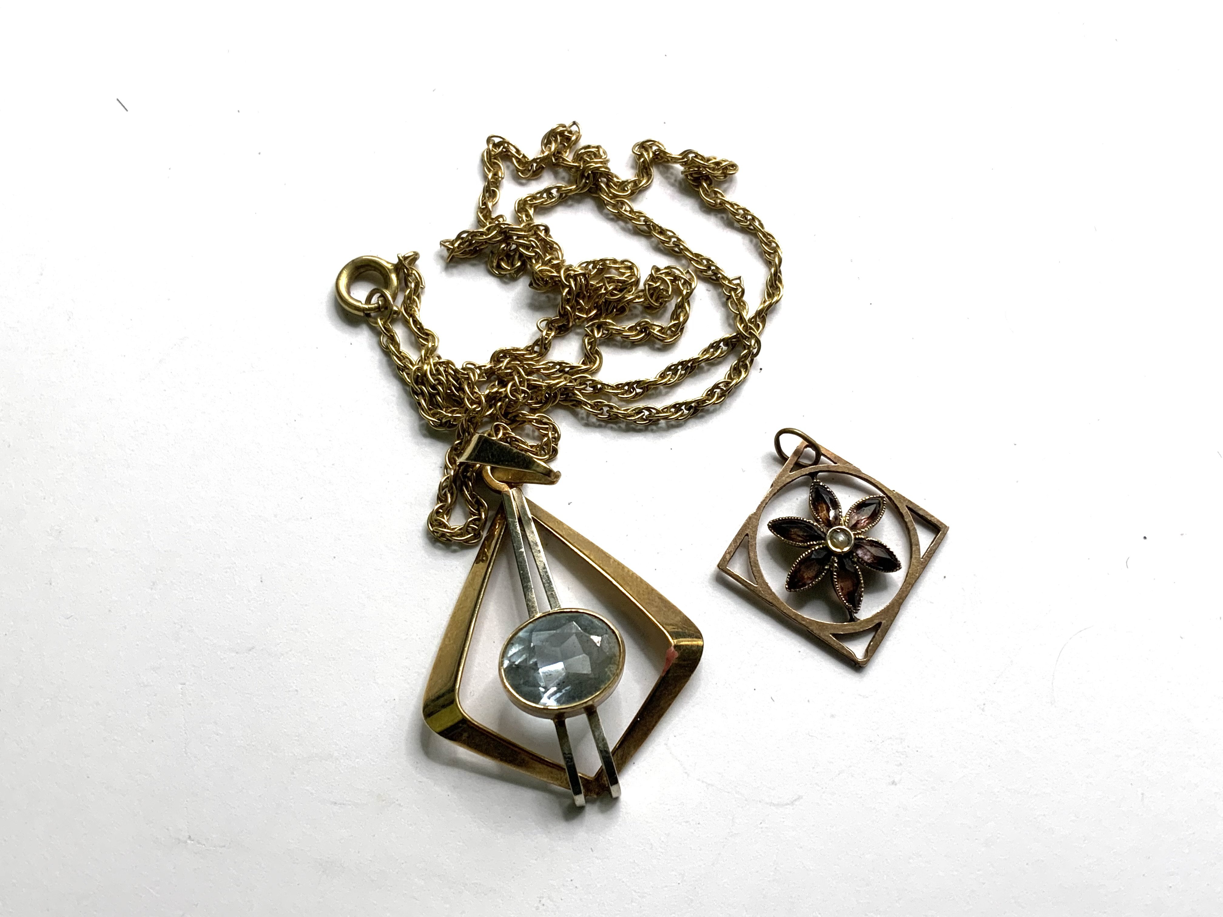 2 9ct gold stone set pendants one with a 9ct gold rope chain.