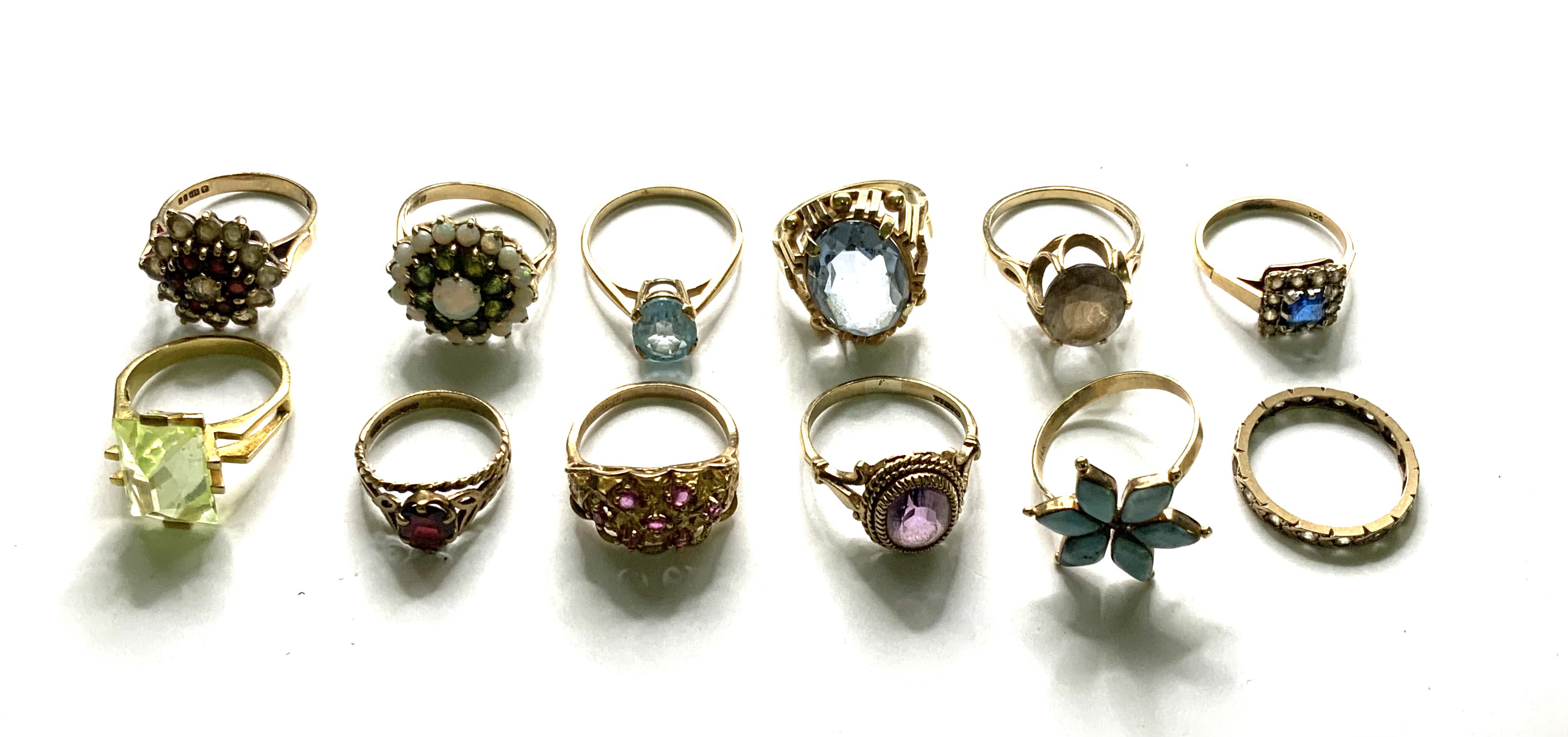 12 9ct gold and stone set rings (total weight 47.83g), (A)
