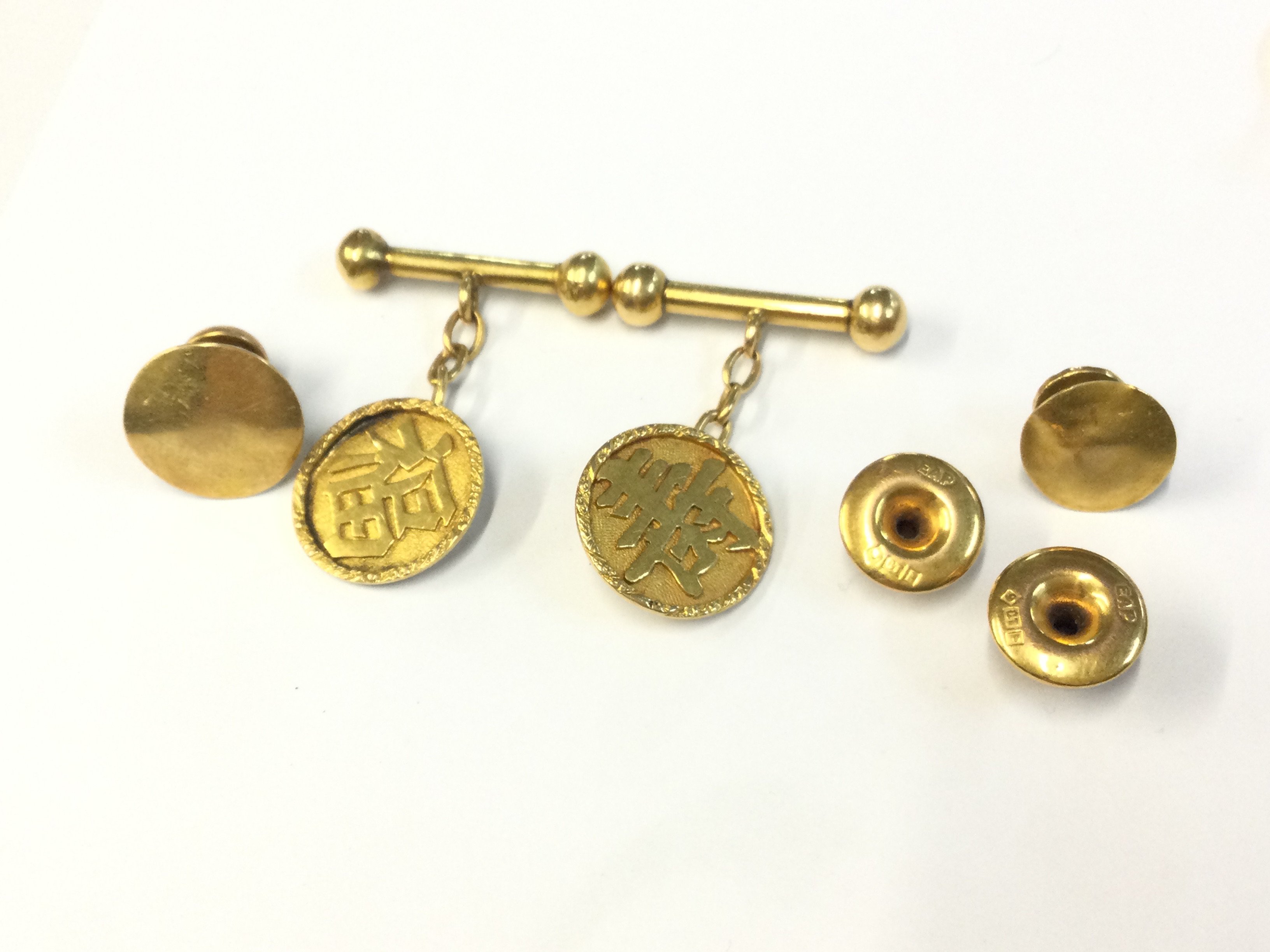 A collection of high carat Chinese Gold Cufflinks. 10.17g total weight. Postage category A