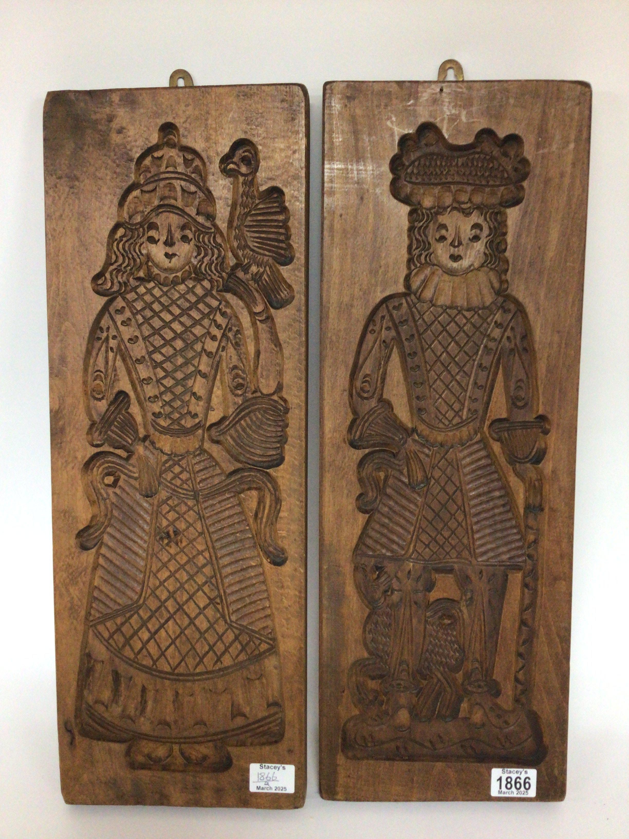 Two large carved wood ginger bread moulds in the form of figures hight 60cm (2)