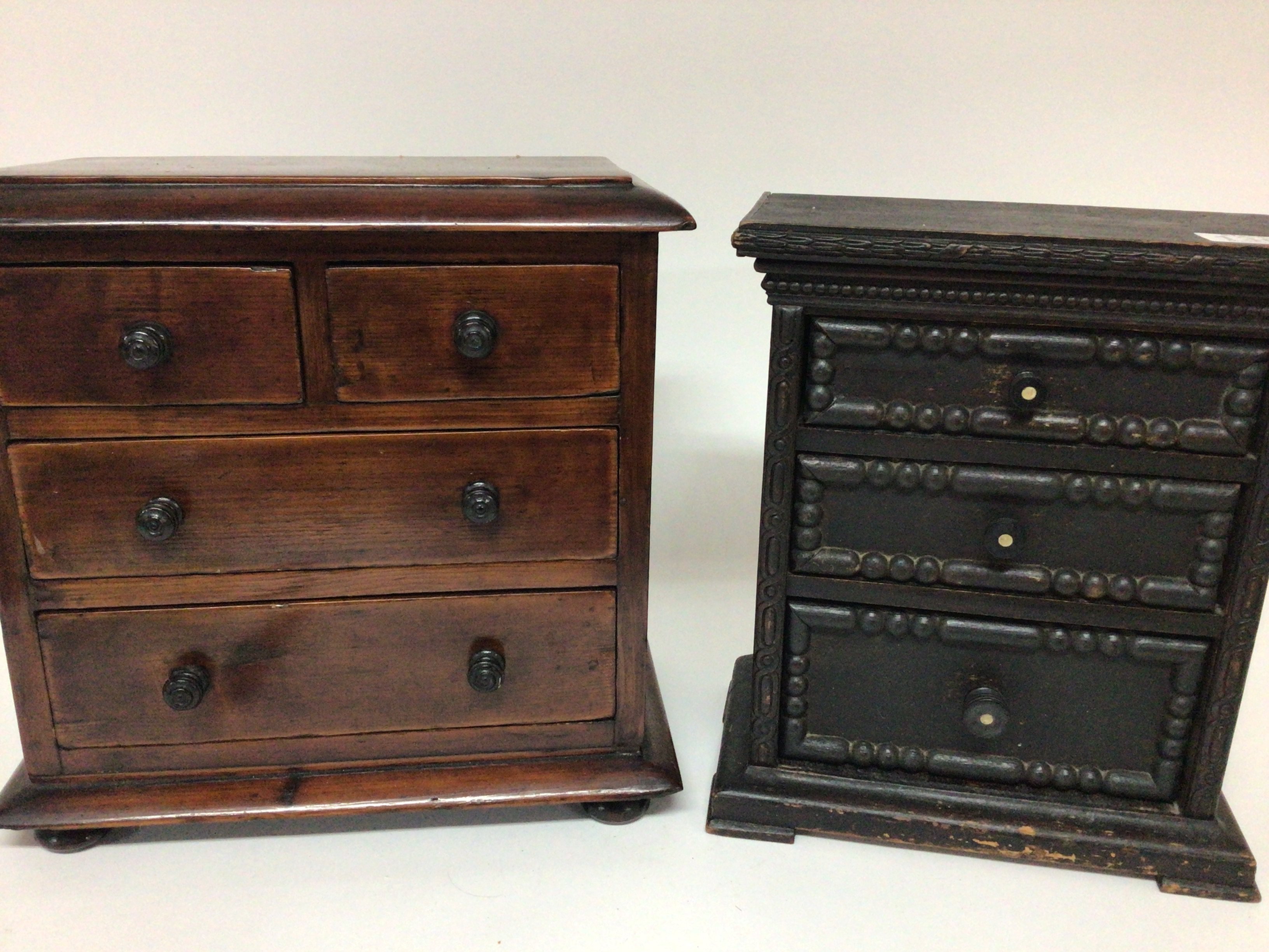 A late Victorian stained pine apprentice type chest fitted with two short and two long drawers and an ebonised chest (2) Hight 27cm