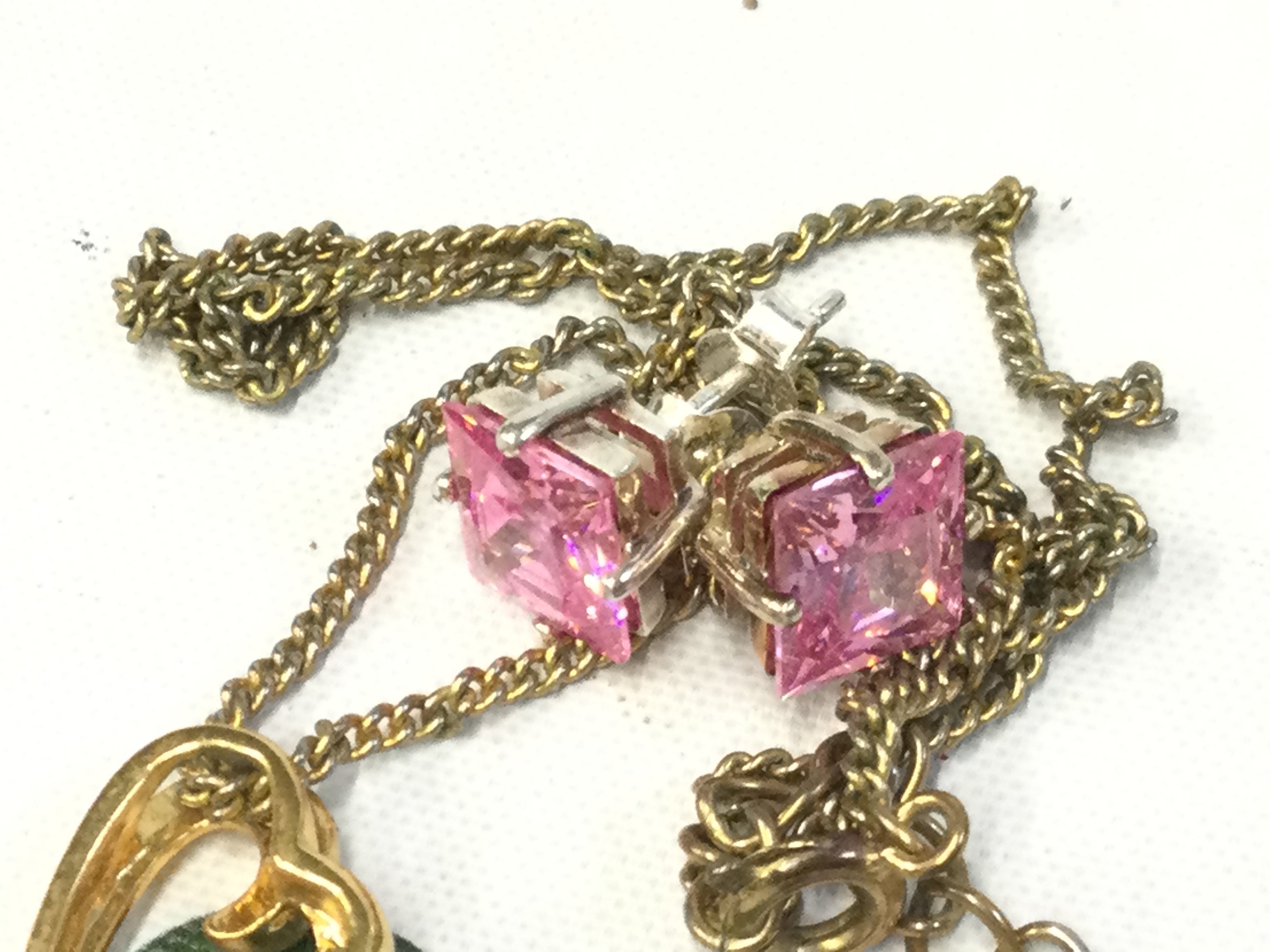 A collection of mixed jewellery including silver pendants , pair of silver earrings with pink stones, various necklaces , bangle etc. postage category B