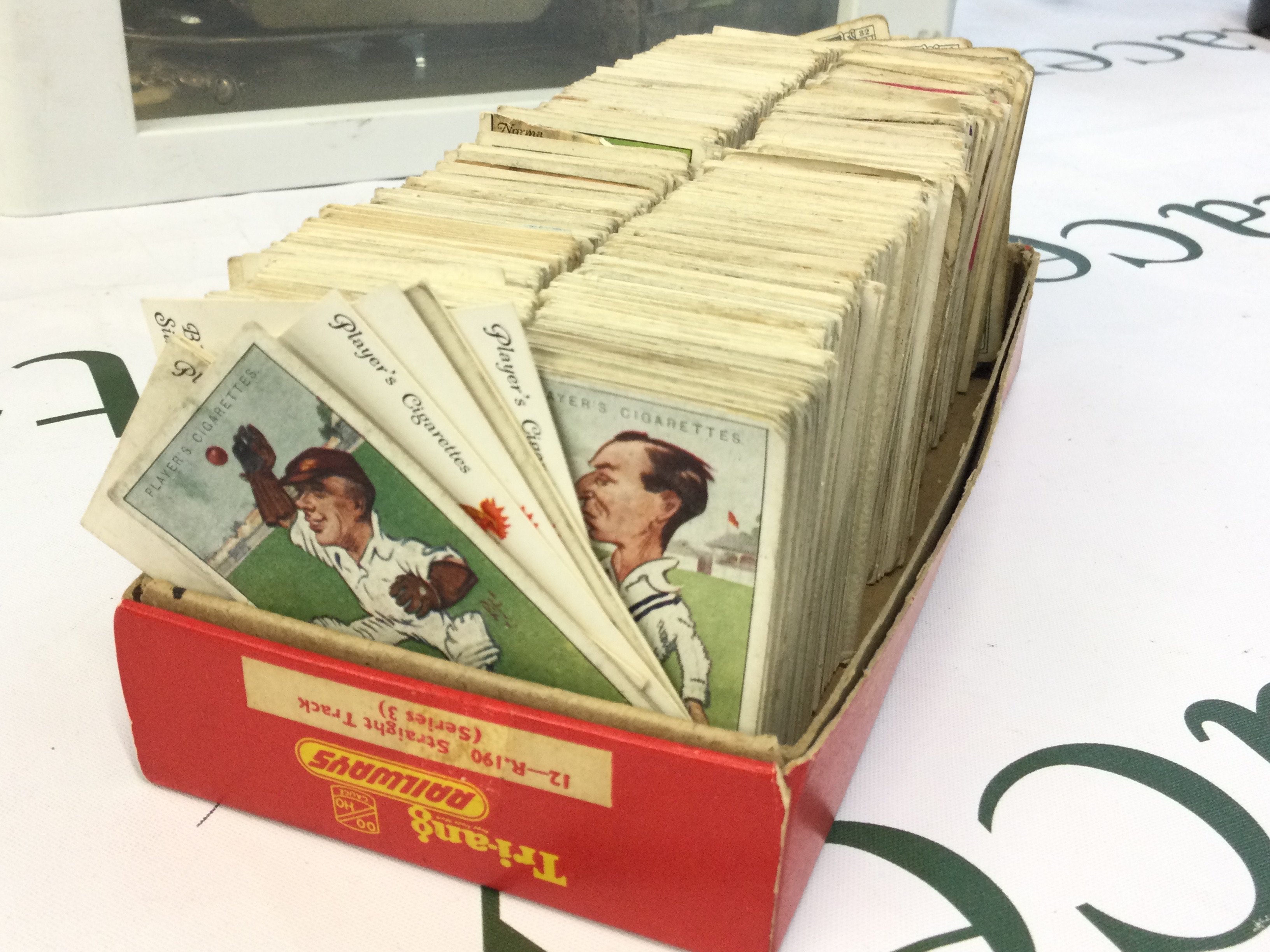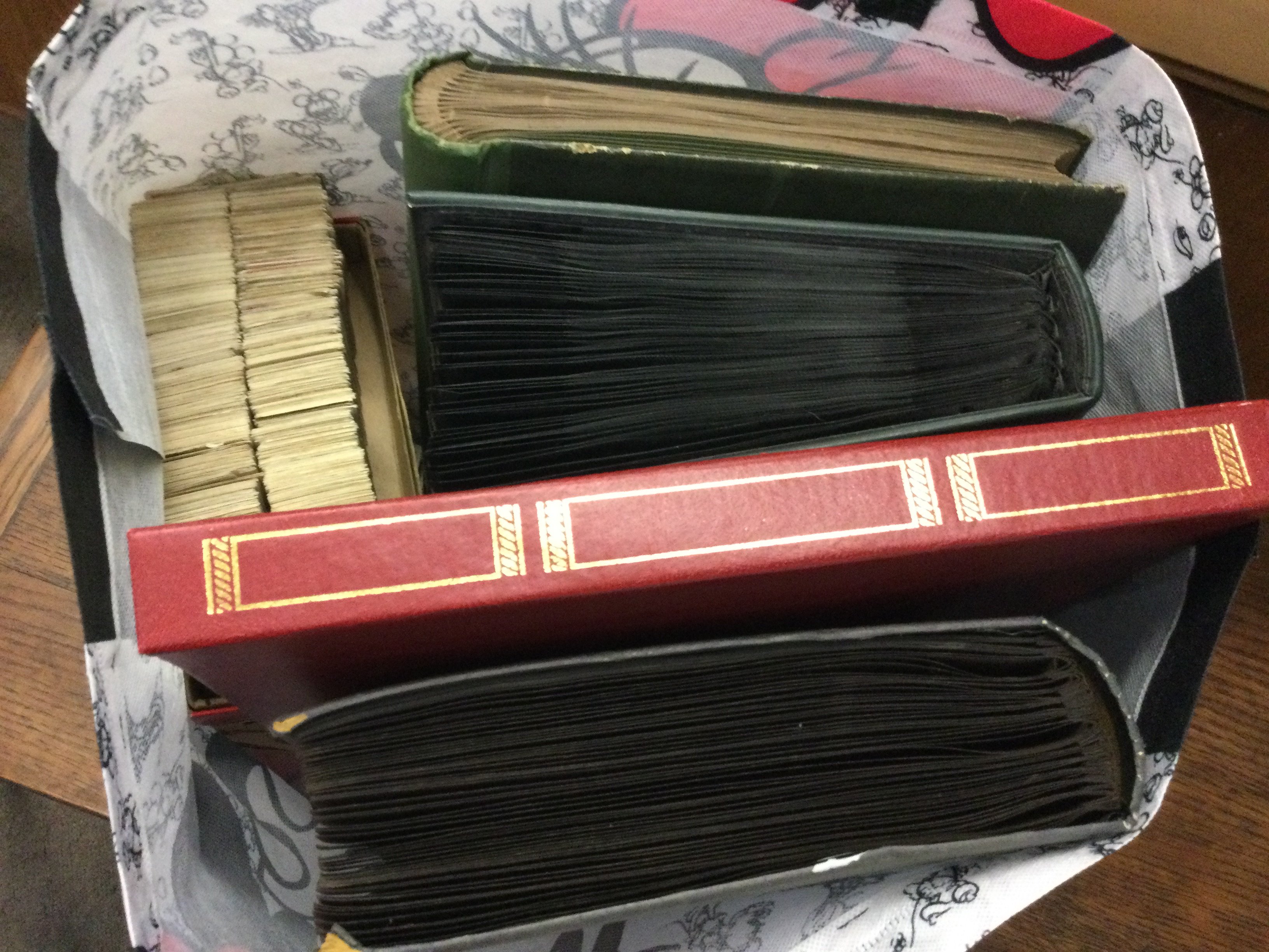 A bag containing postcard albums and a large quantity of cigarette cards including Players, Wills . Postage category c