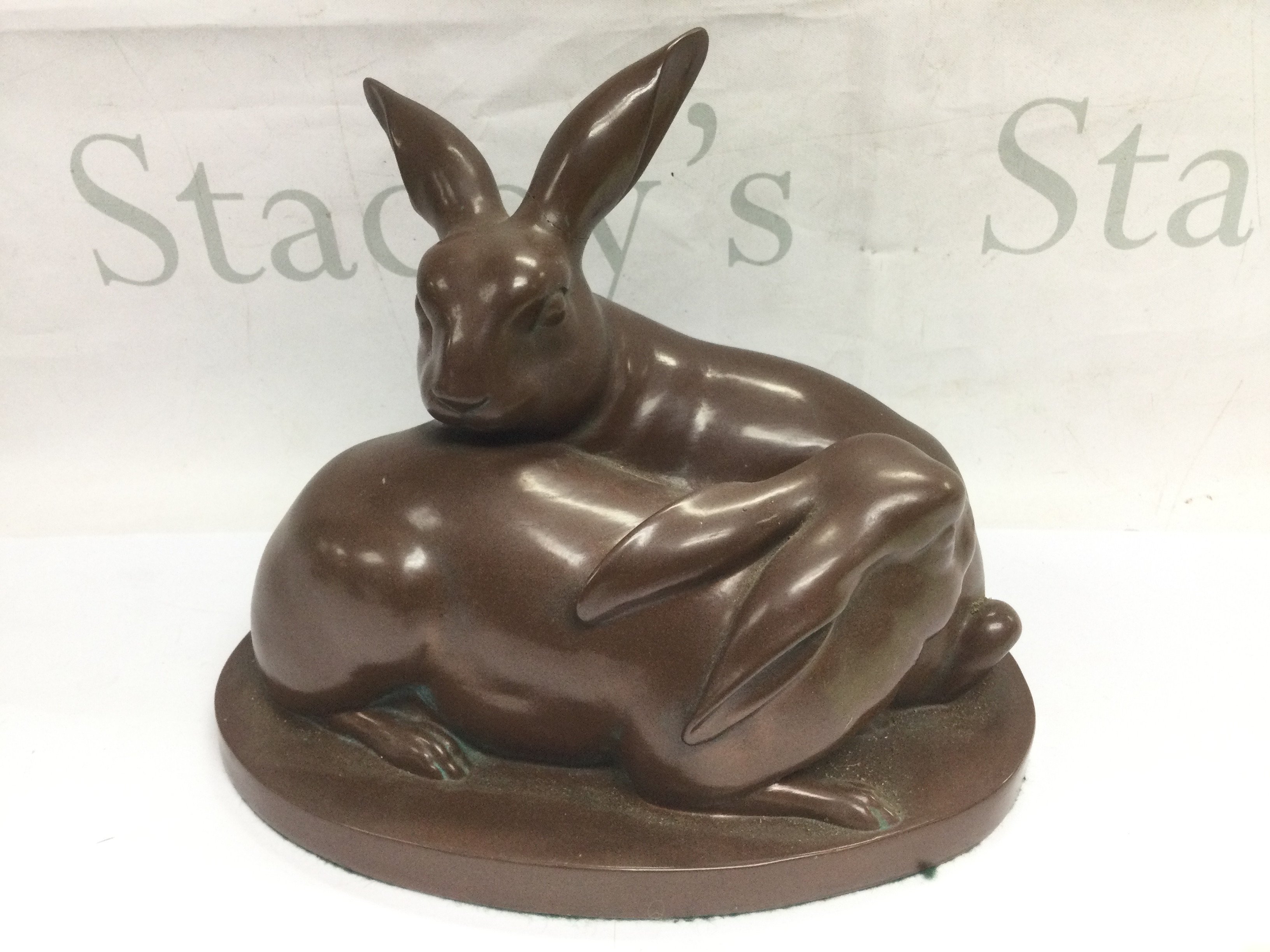 After Carl August Brasch 1866-1938, a bronzed sculpture 'Rabbits', approx height 20.5cm. Shipping category D.