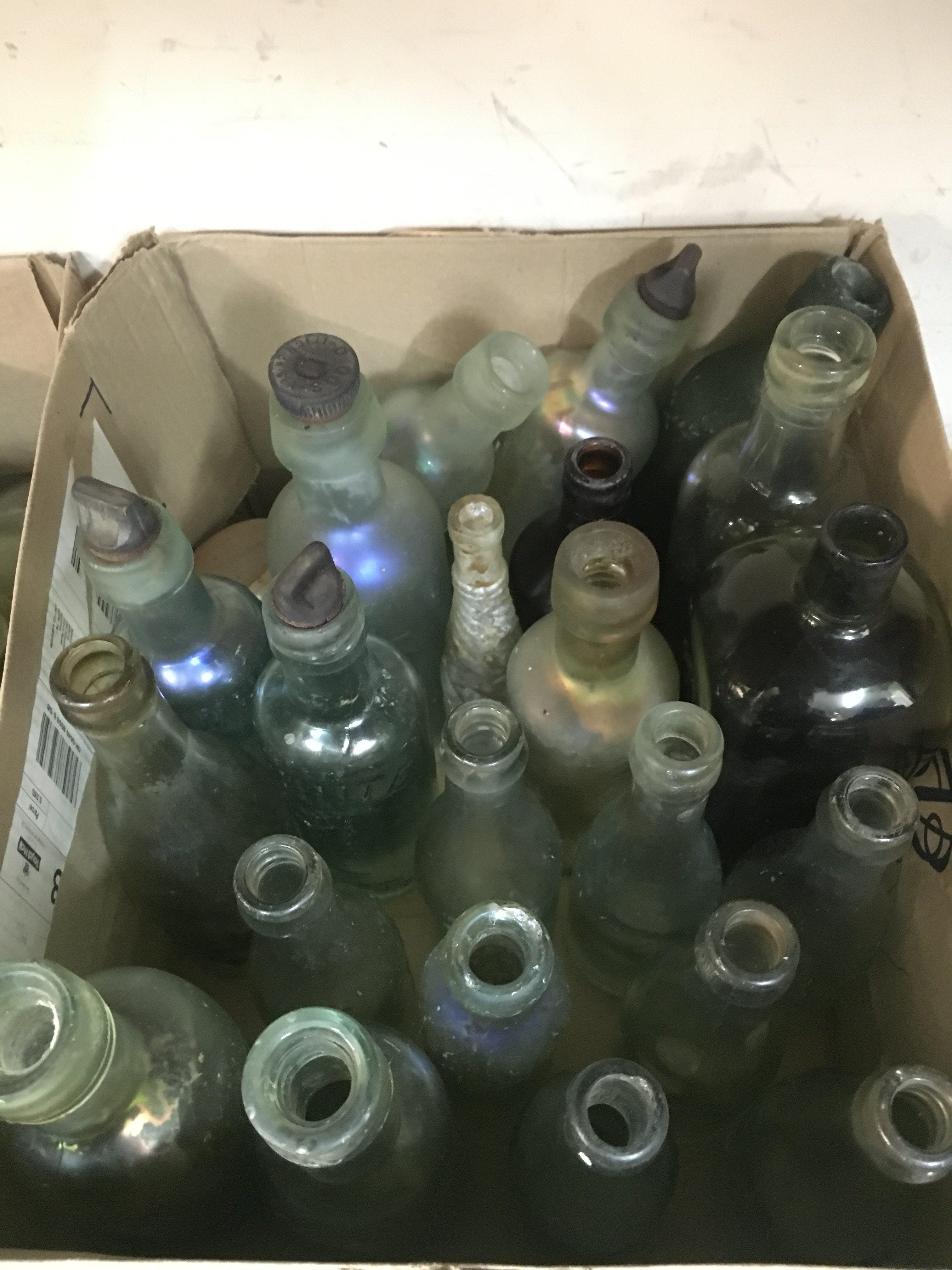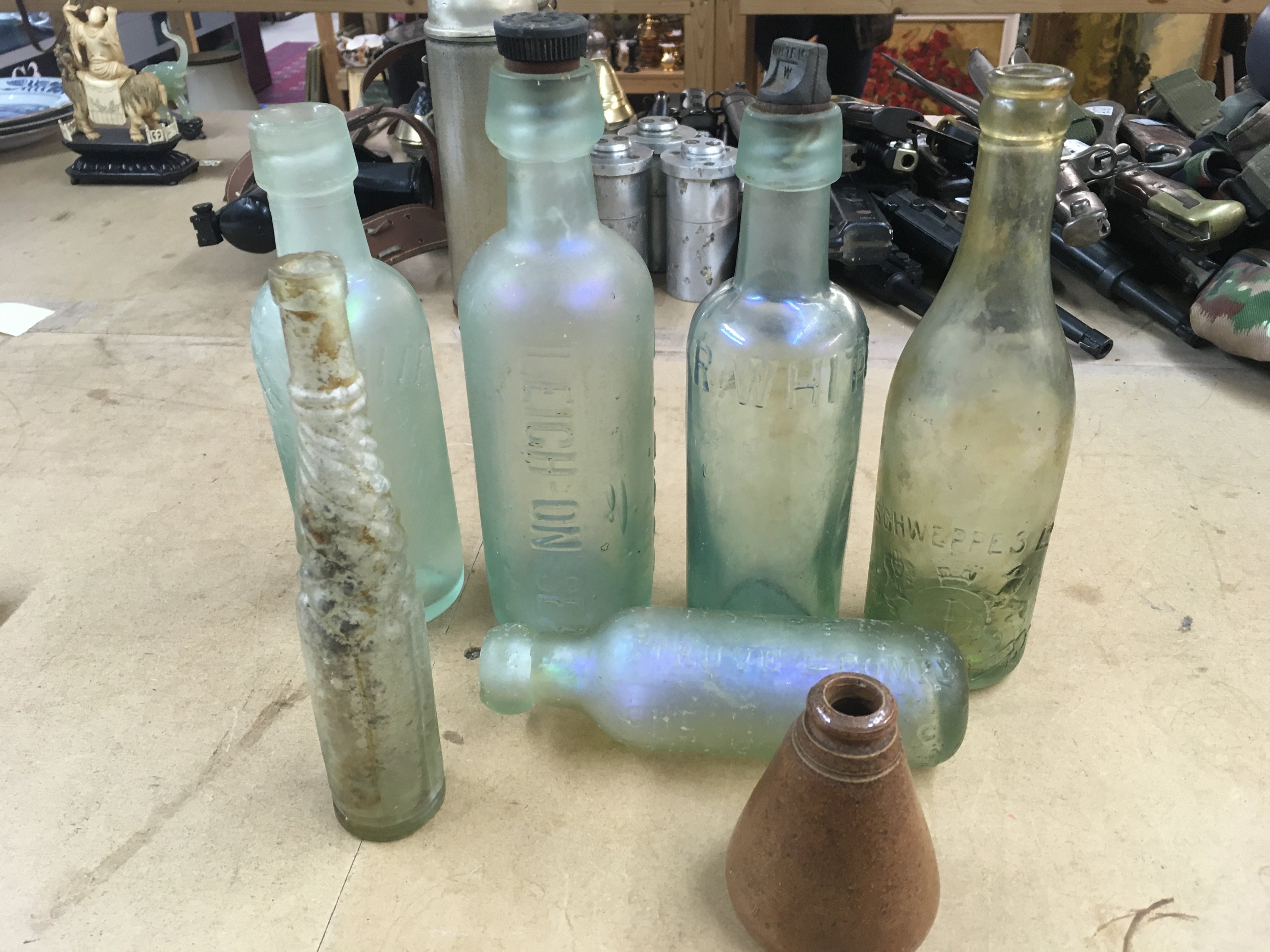 A collection of various 19th/ early 20th Century glass bottles including a Leigh On Sea bottle, R White, Schweppes etc . This lot cannot be posted