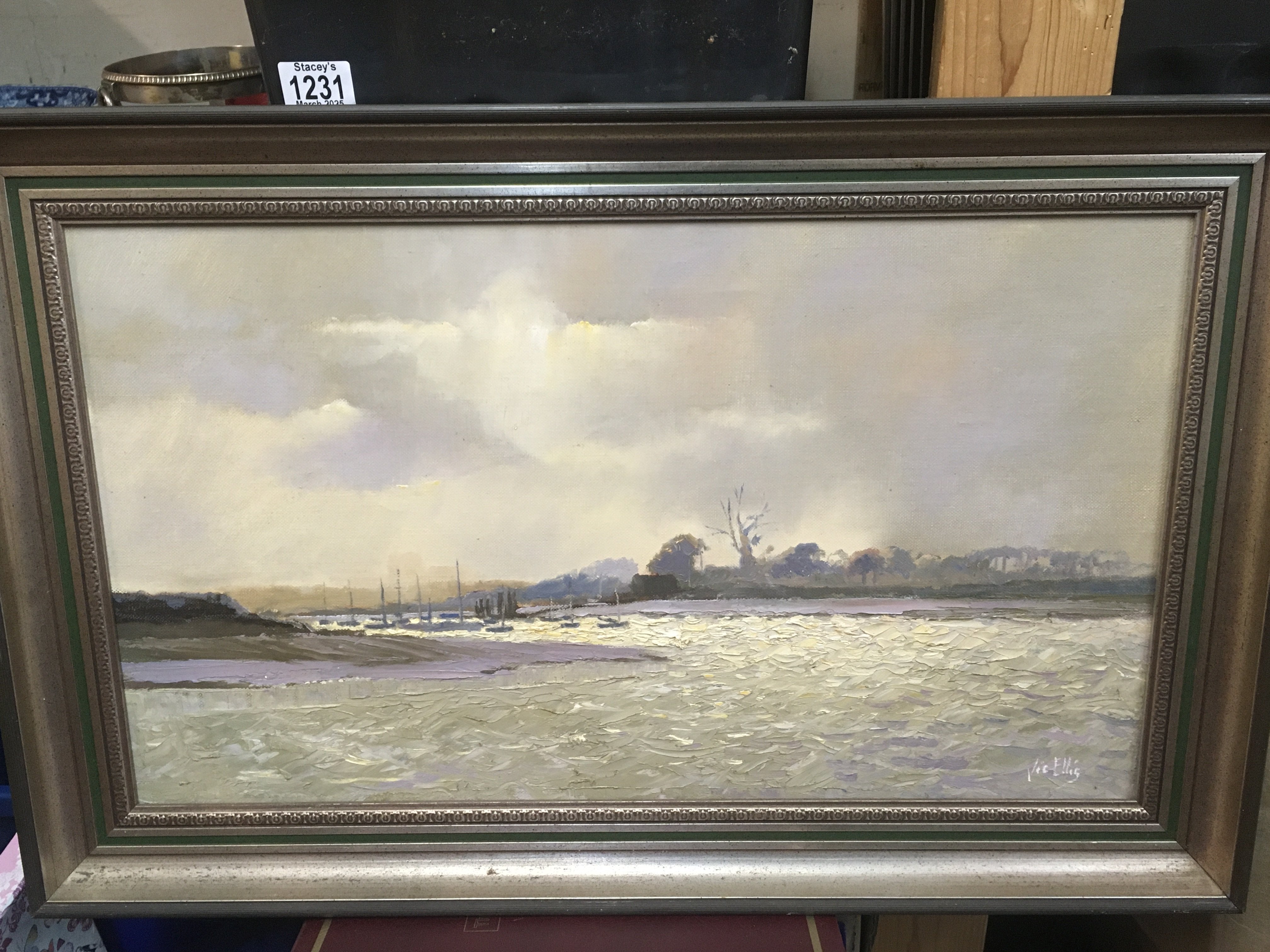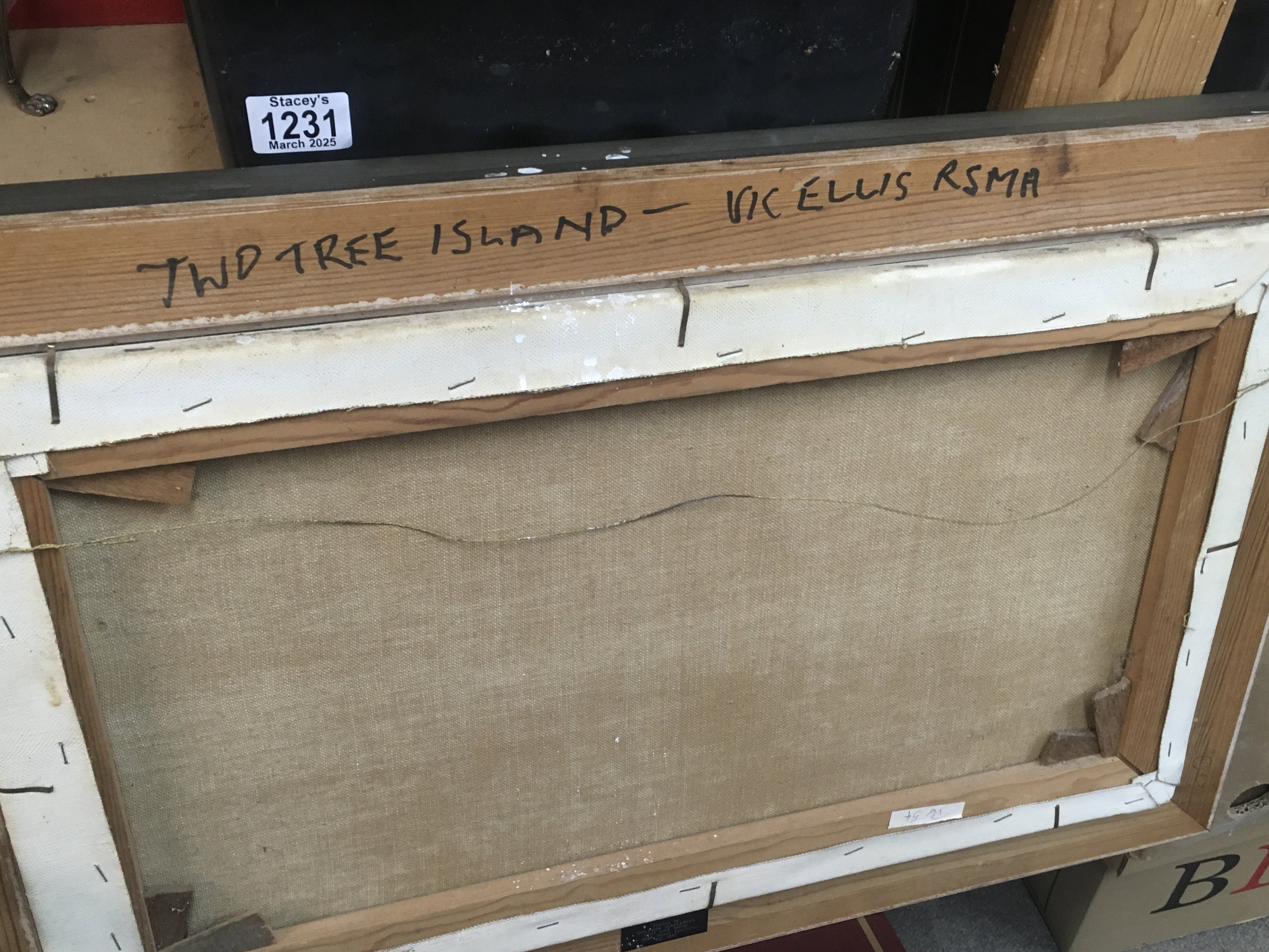A Vic Ellis oil on canvas painting of Two Tree Island, dimensions 71x46cm