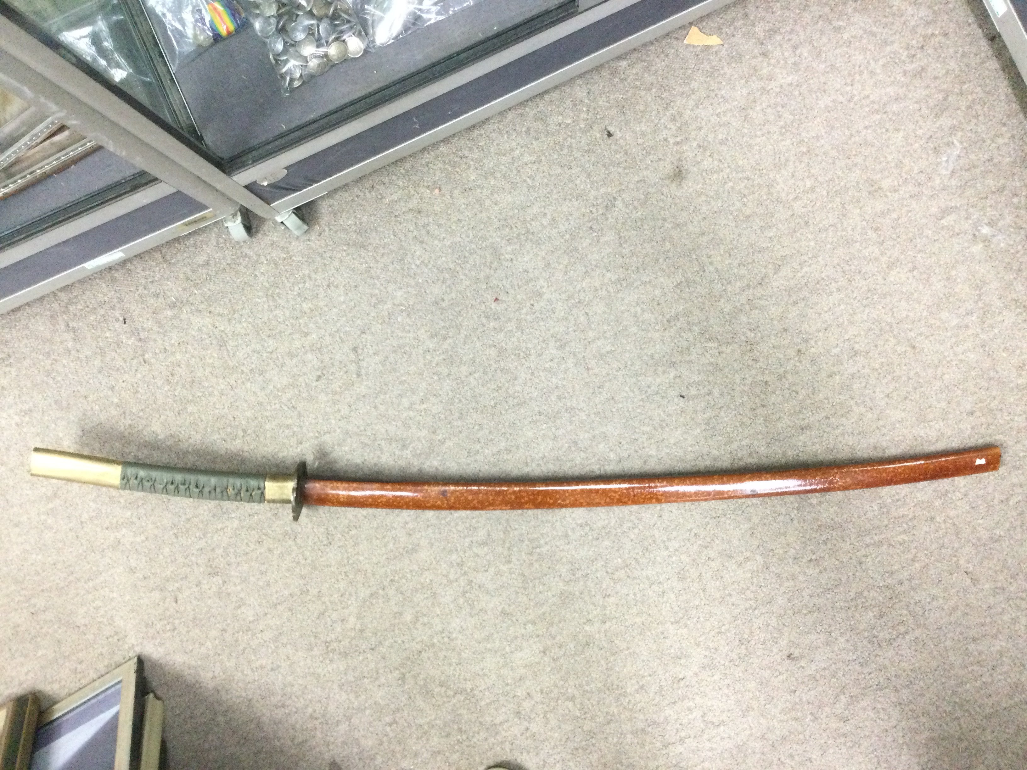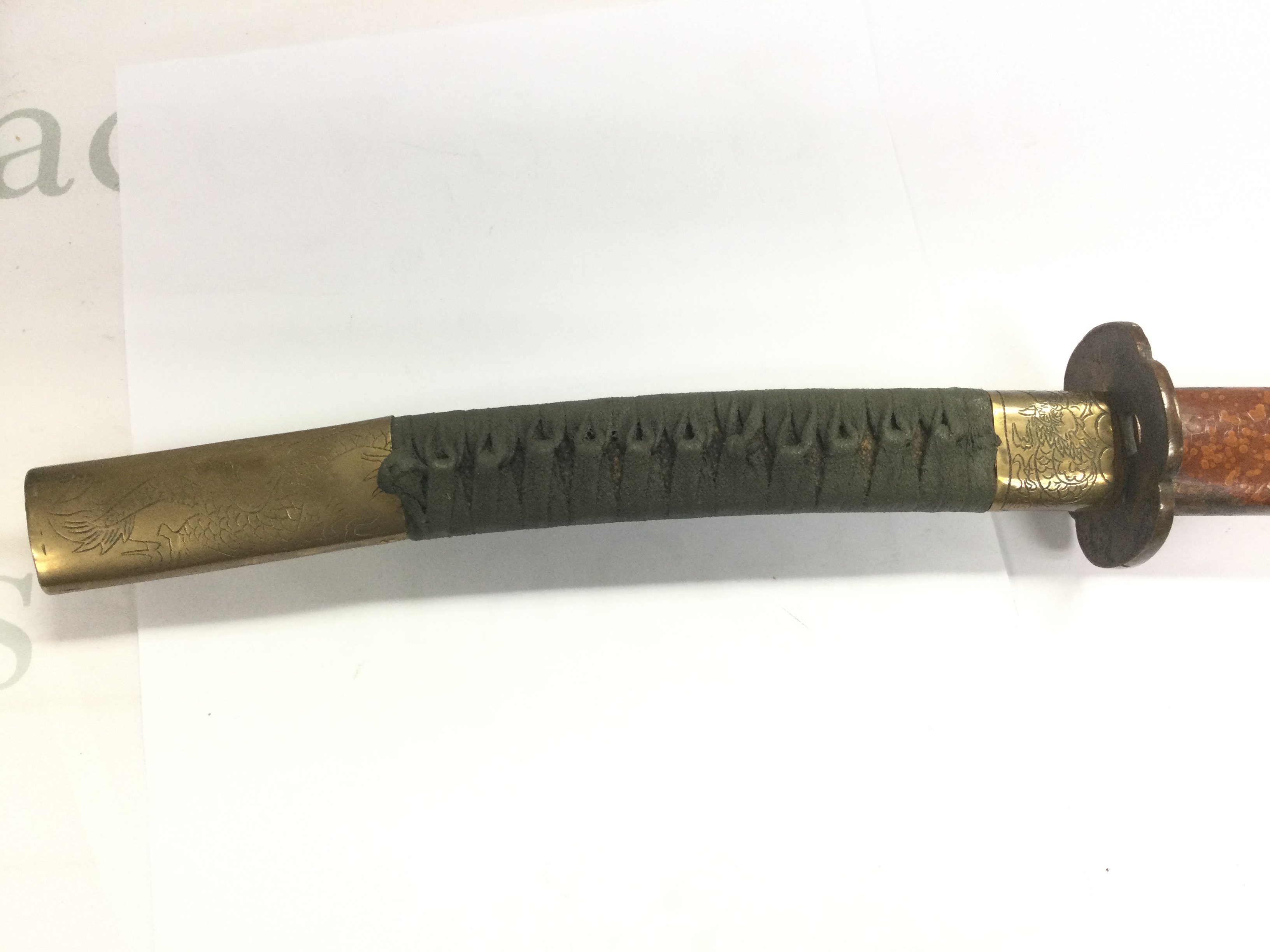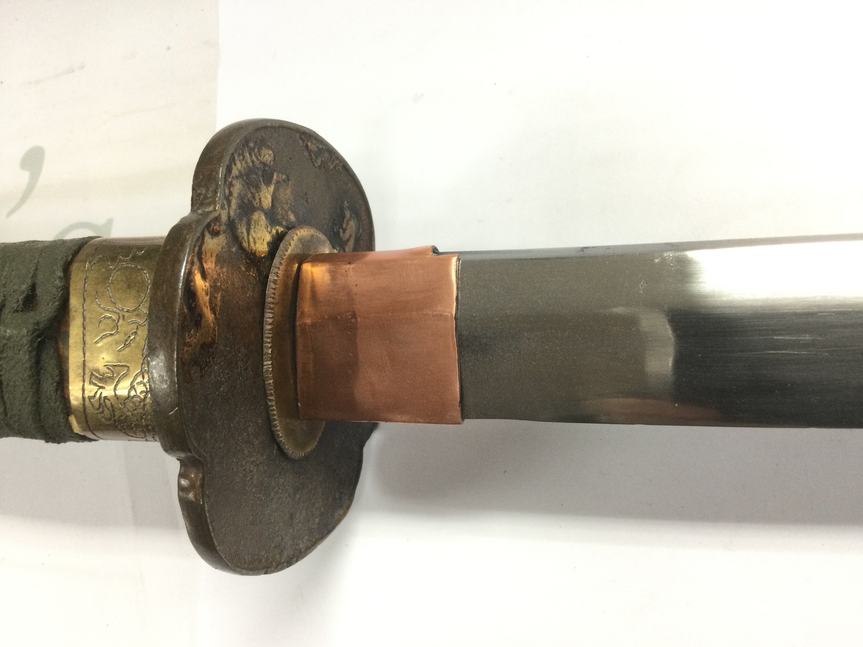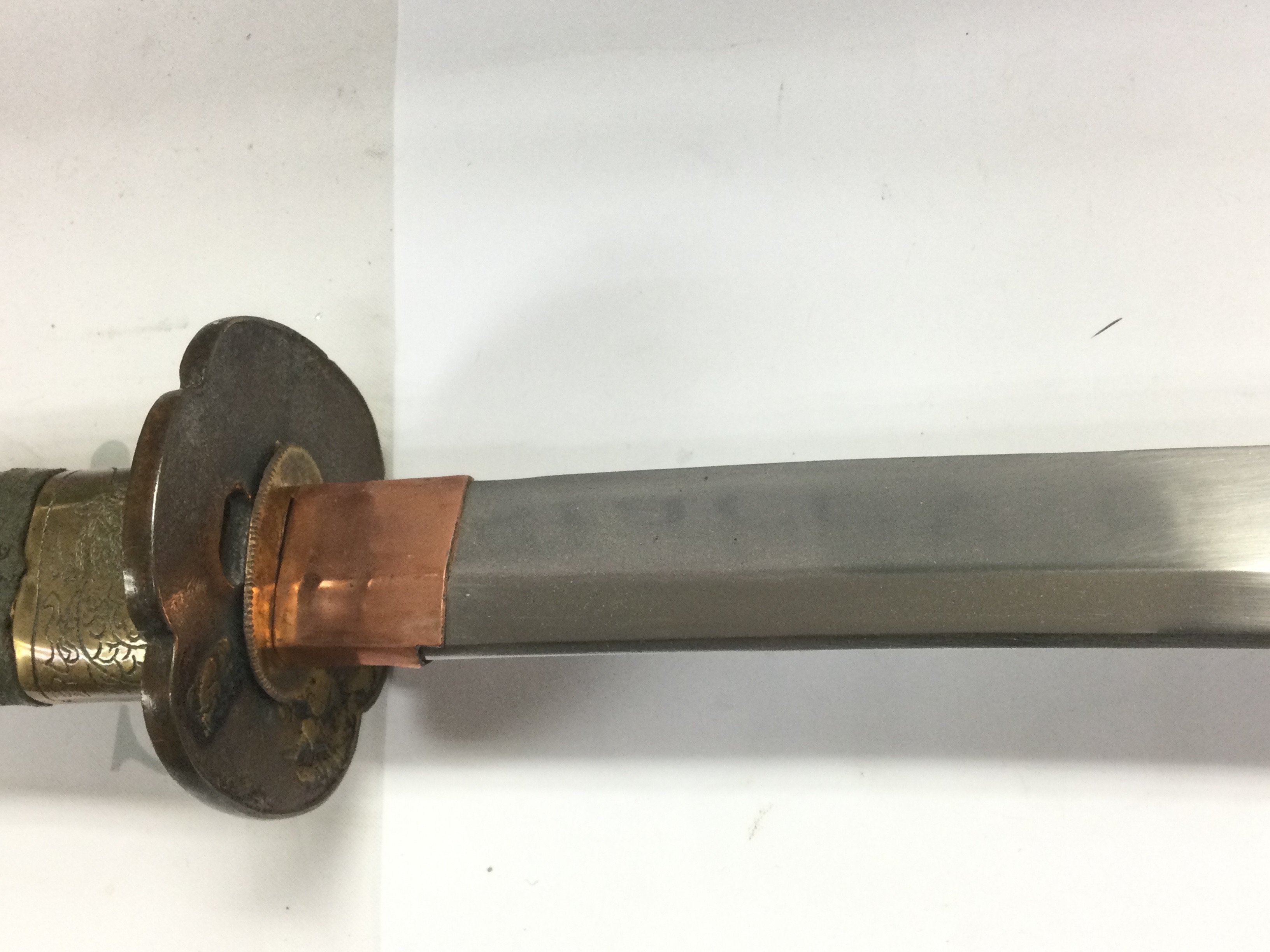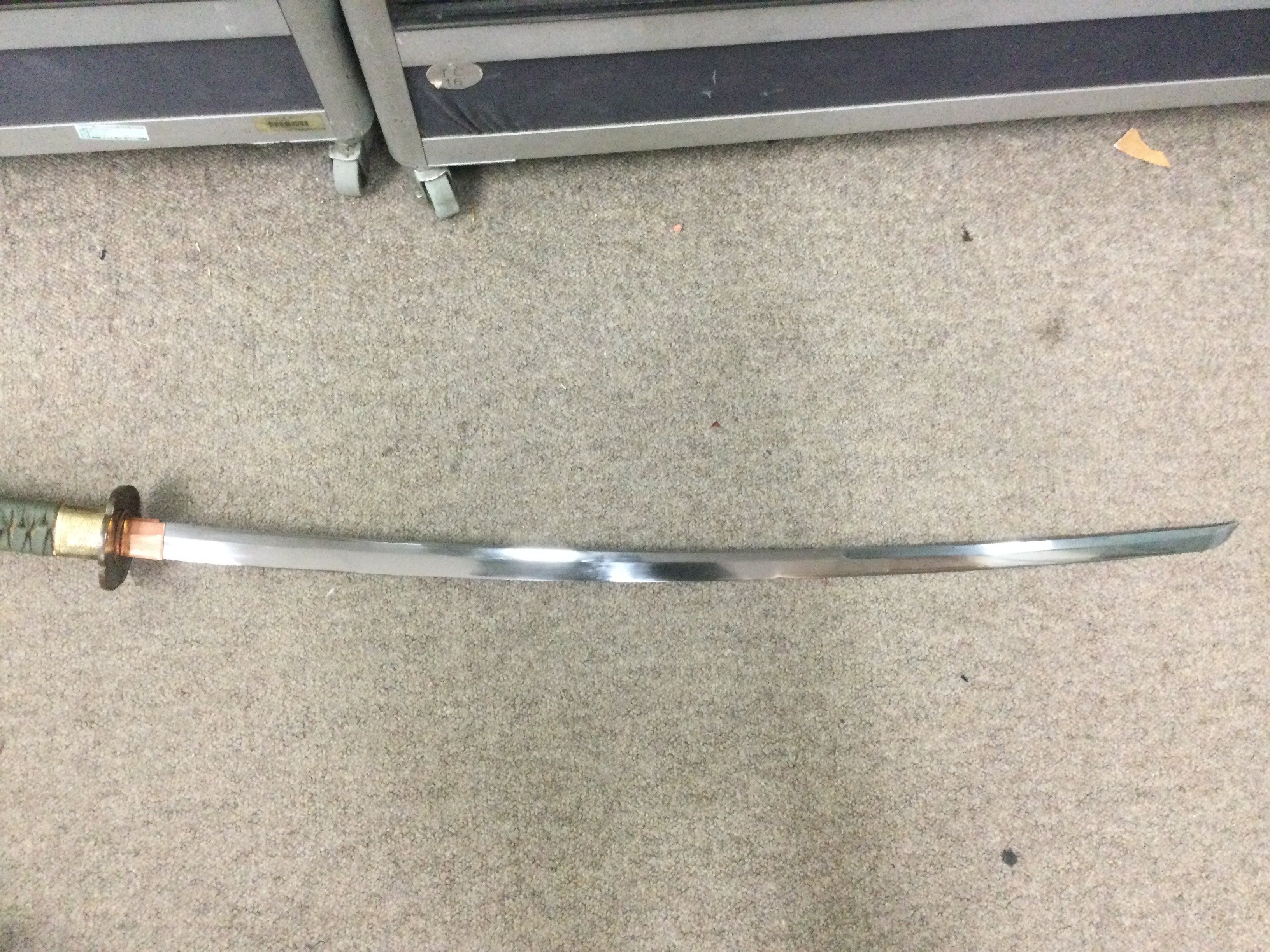 A Korean katana with later alterations. Blade length 91cm. Comes with outer fabric cover. Shipping category D.