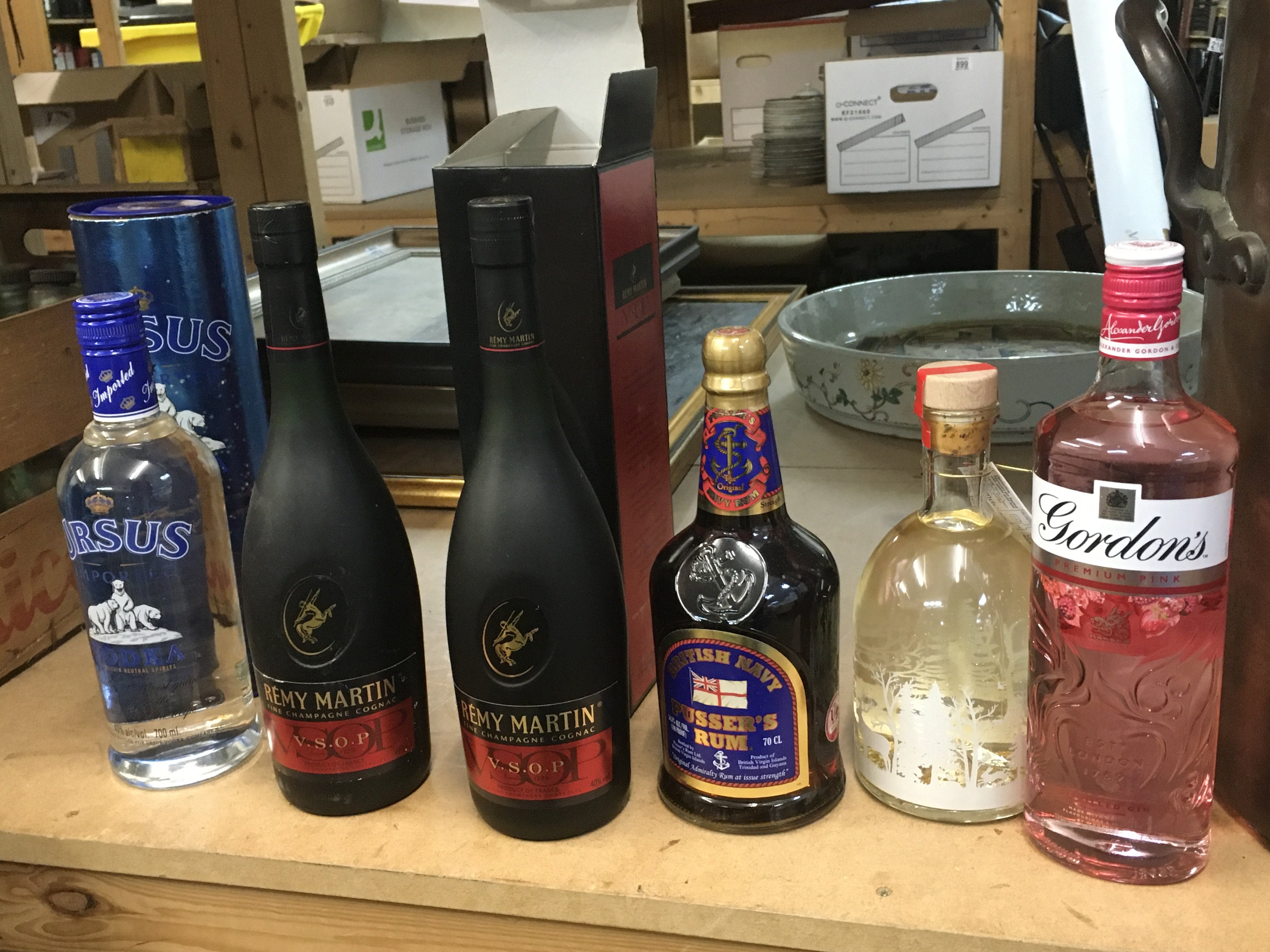 A collection of spirits including Remy Martin fine champagne cognac, Gordons premium pink gin, Ursus imported vodka etc . This lot cannot be posted
