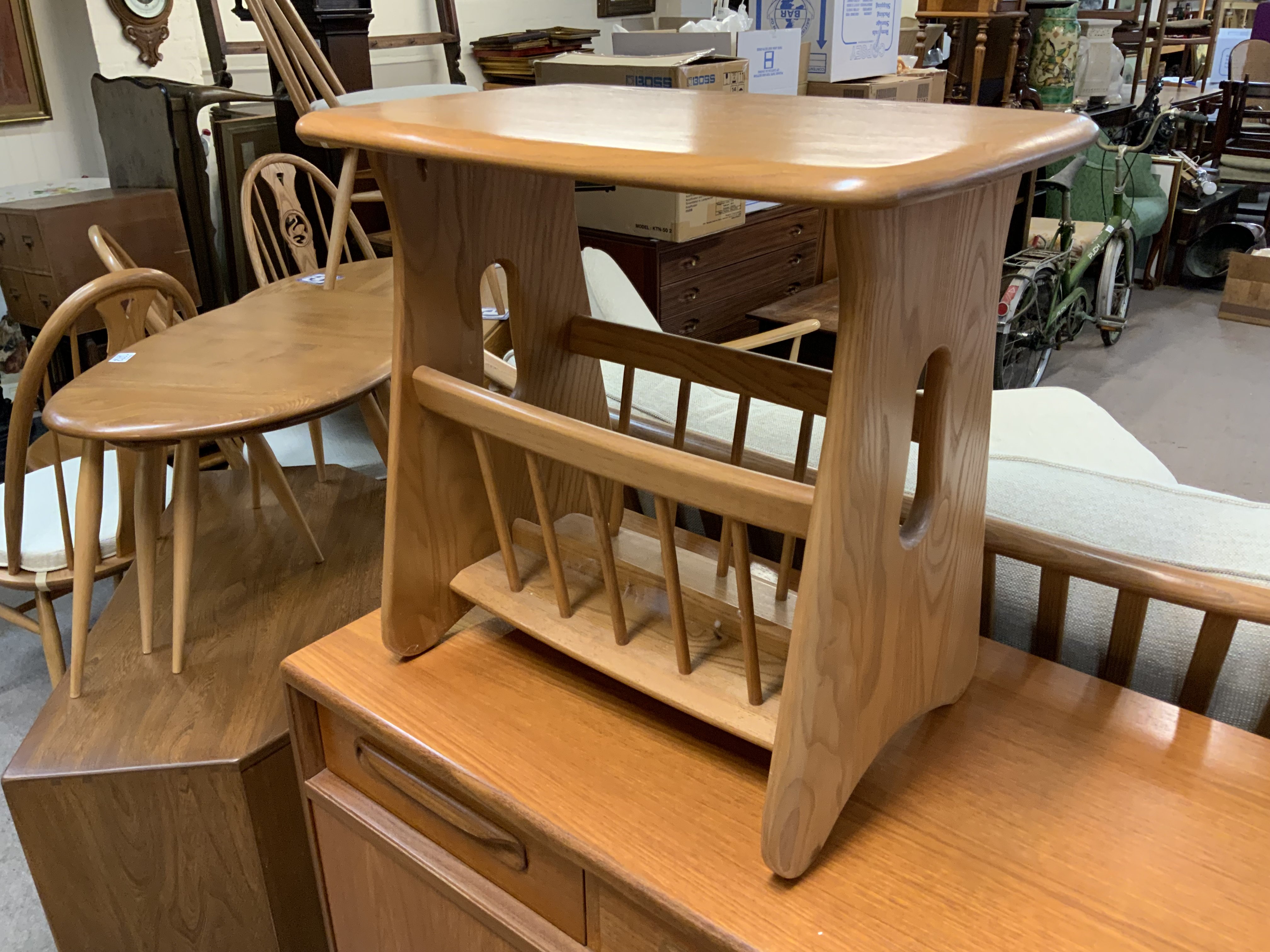 An Ercol Windsor light elm magazine rack, 55cm x 50cm
