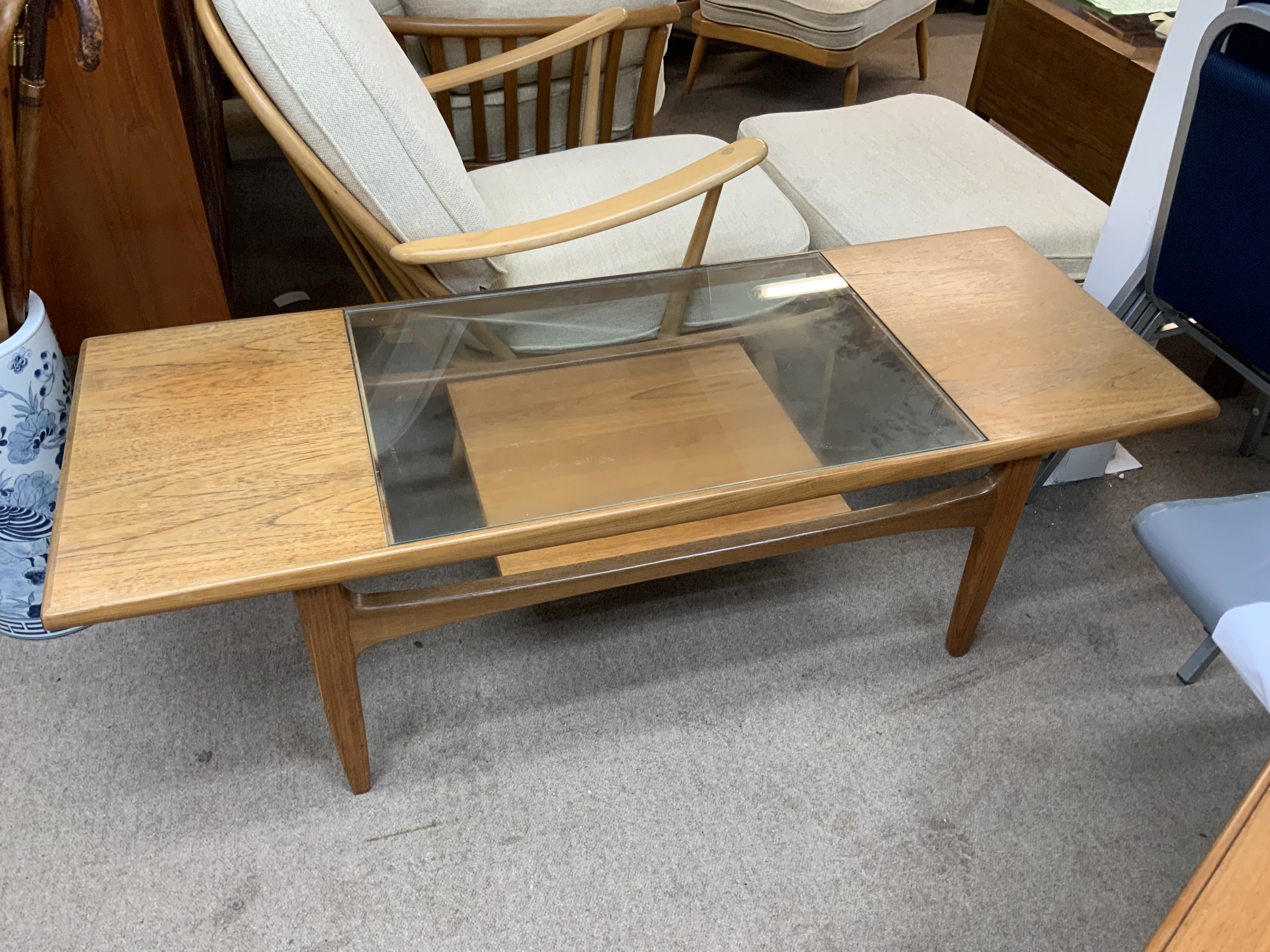 A G-Plan Fresco teak and glass topped rectangular coffee table.