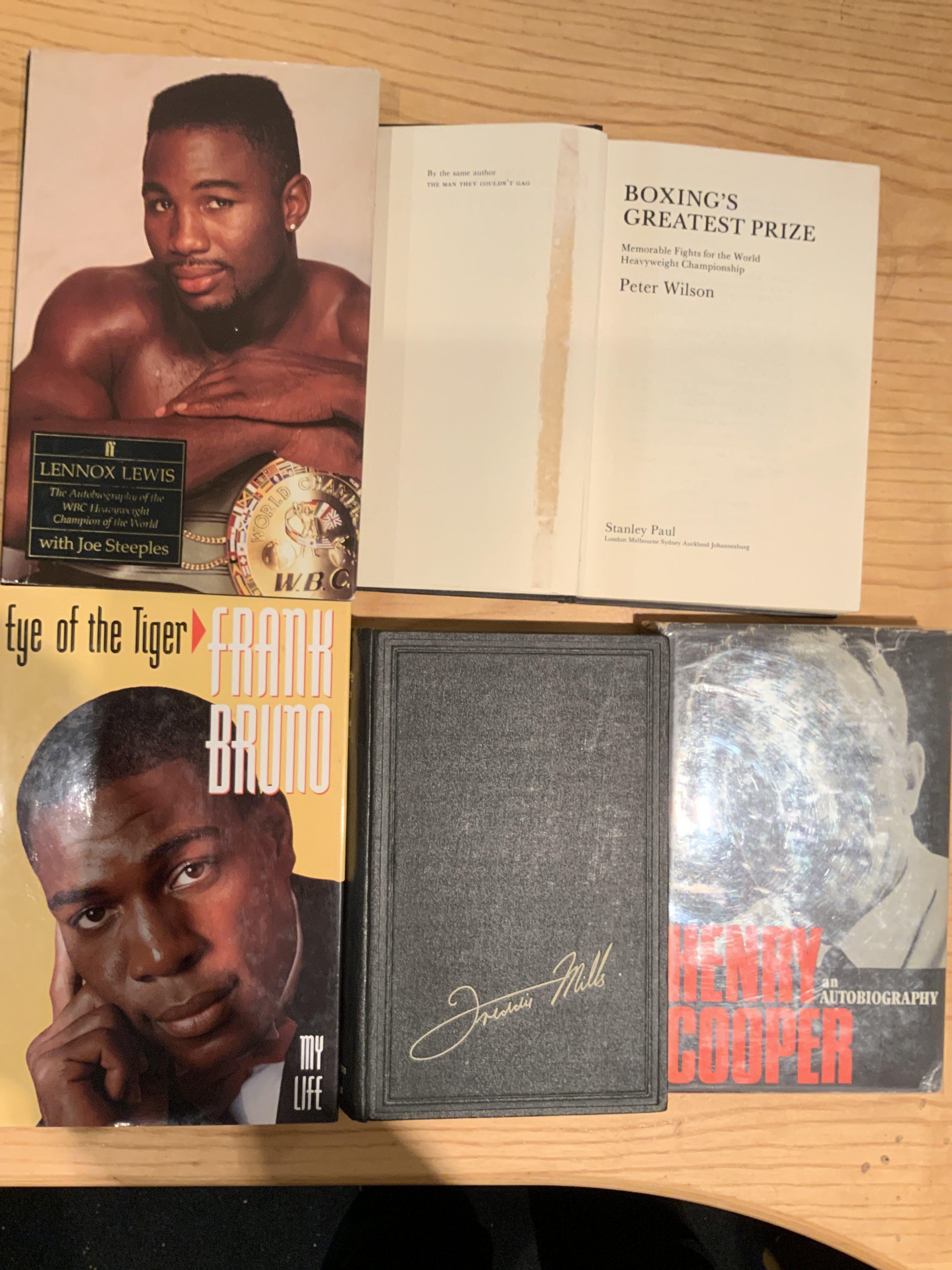 Boxing Book Collection: Includes autobiographies of Freddie Mills, Bruno, Cooper, Ali, Foreman, Frazier and others. Good. (13)
