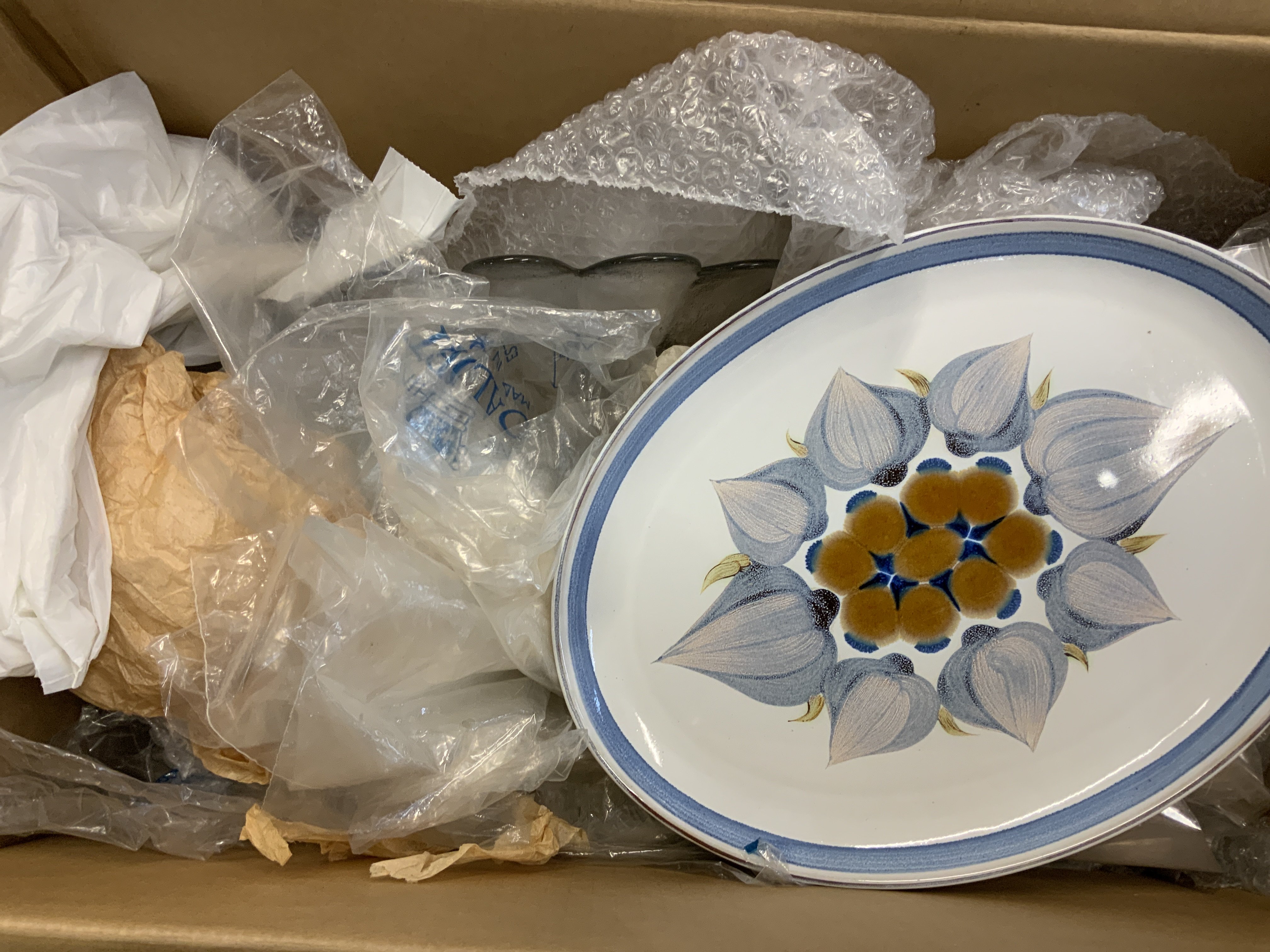 2 boxes of various ceramics to include Langley pottery dinnerware, Wade, Glassware etc..