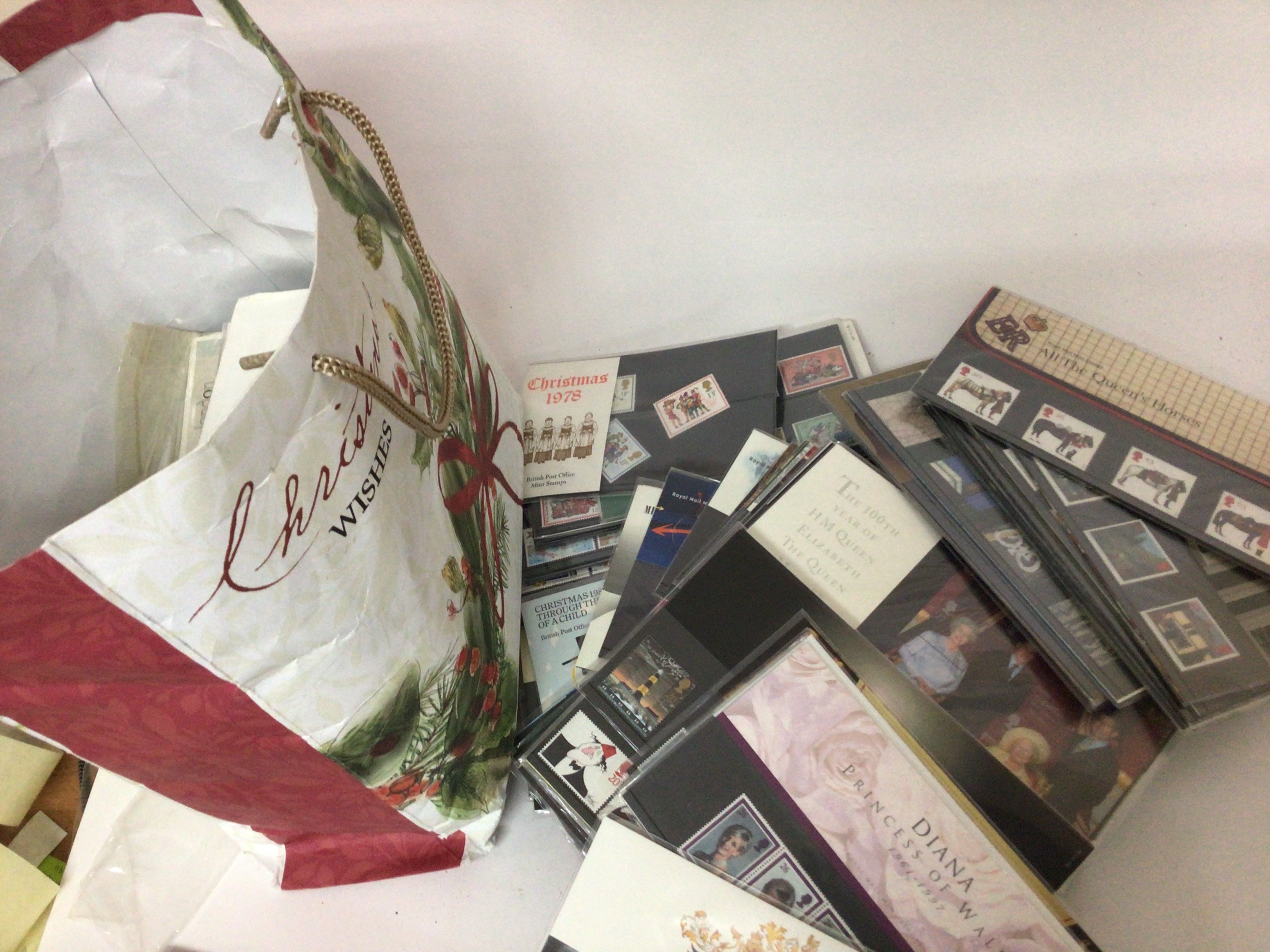 A bag containing a large quantity of British Pictorial Presentation pack stamps.