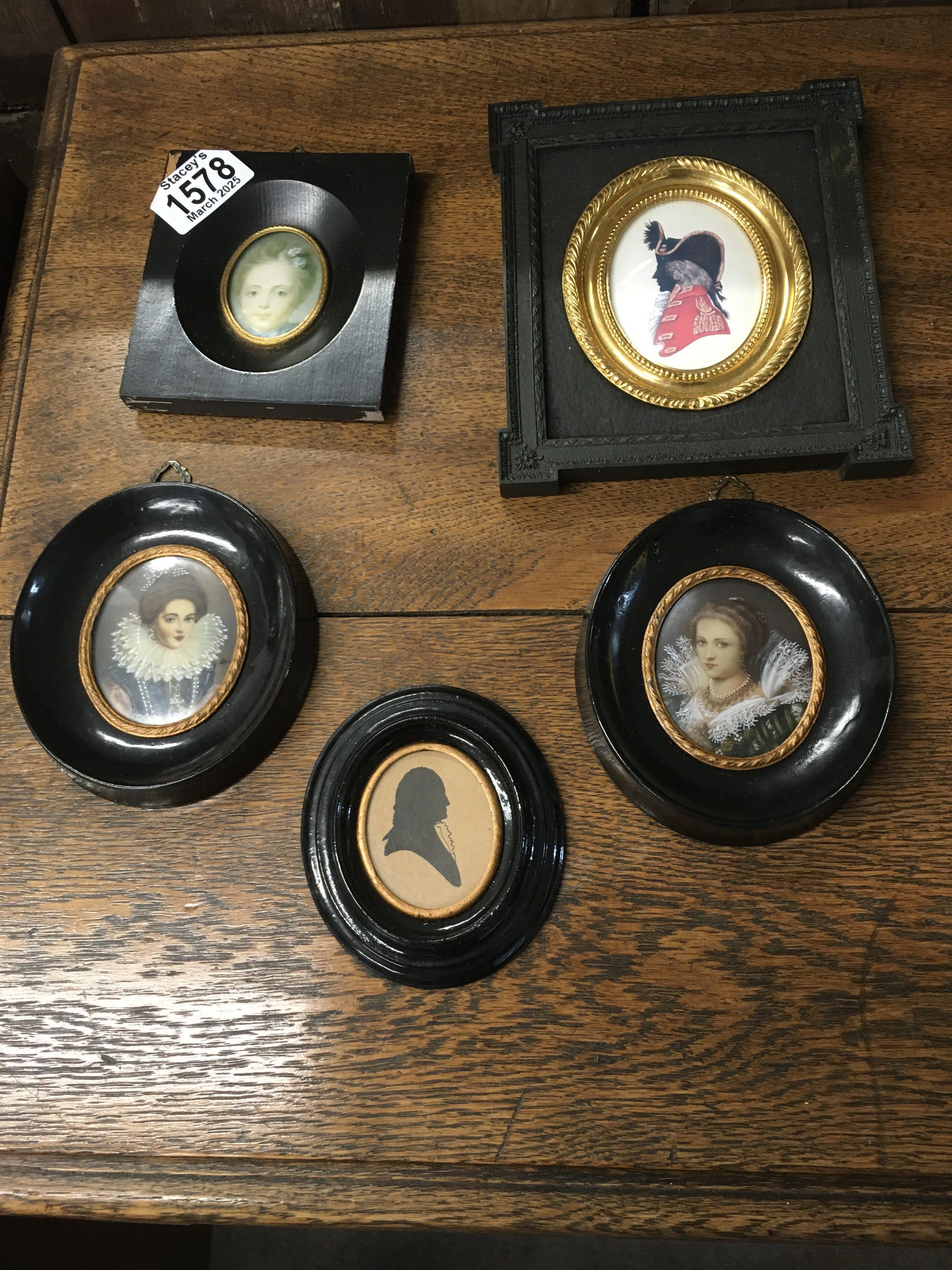 Five retrospective copy miniature portrait paintings.