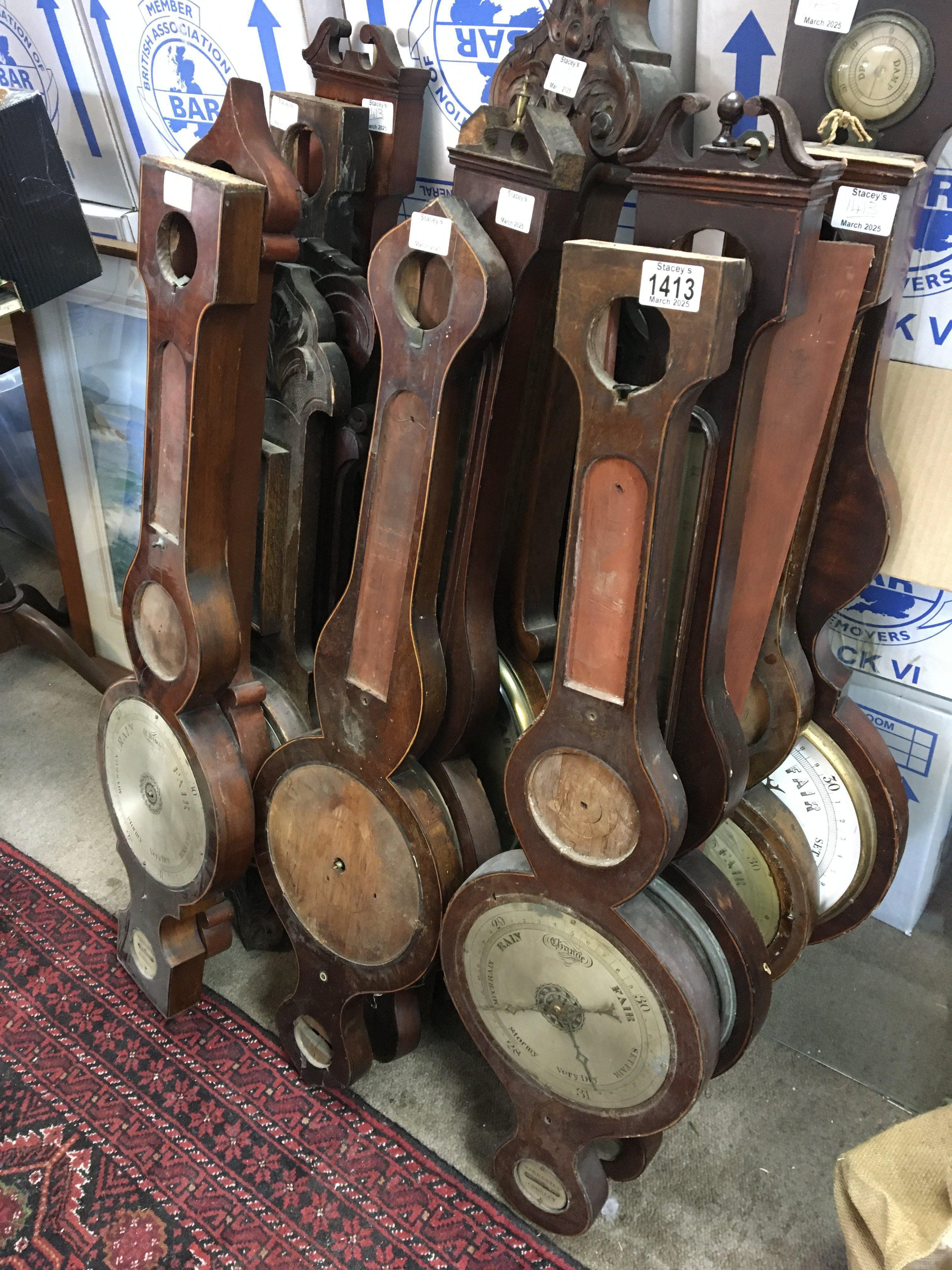 A collection of fourteen late George III and Victorian barometer cases for restoration sold without reserve.