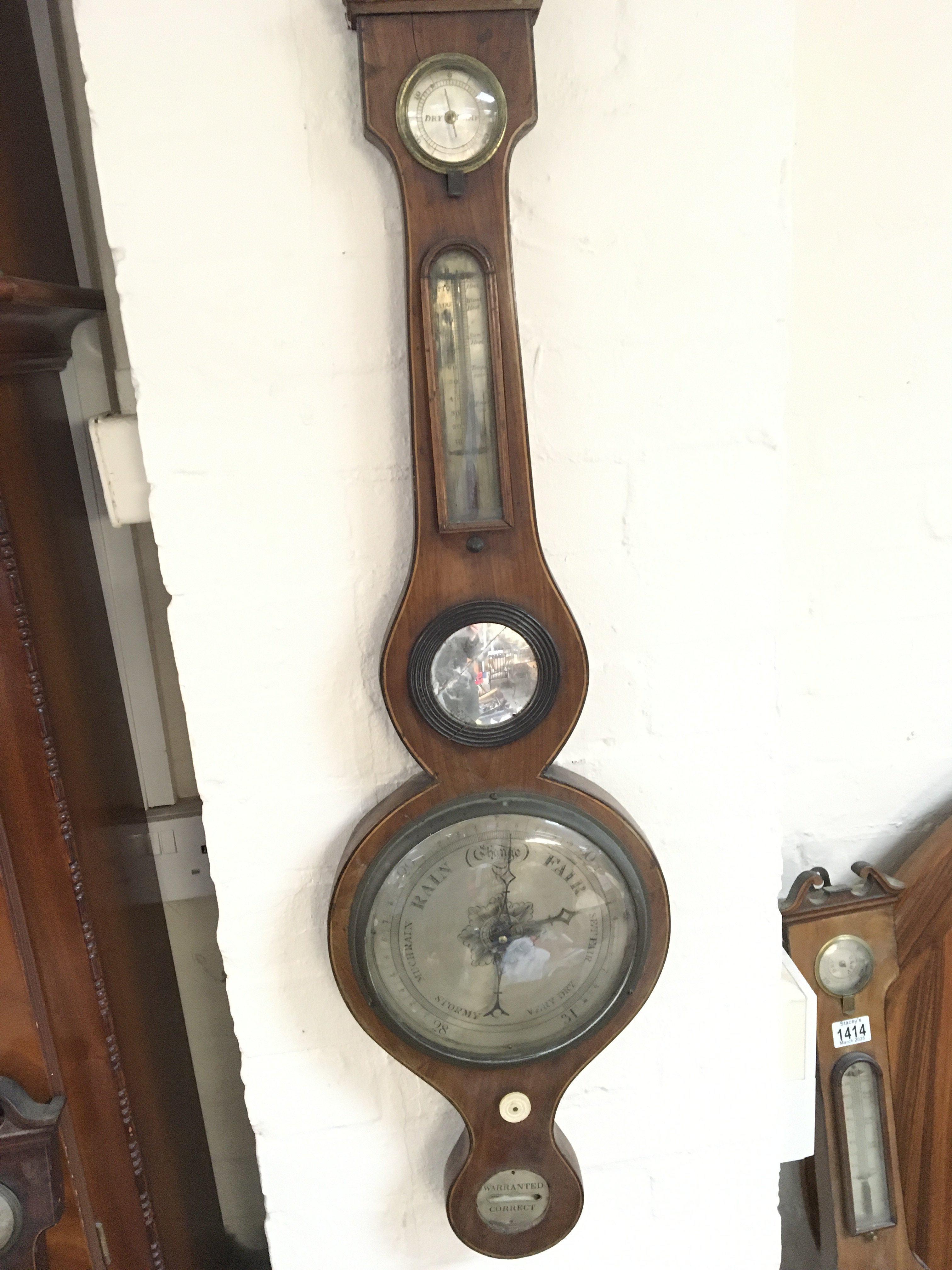 A Late George III mahogany barometer with a boxwood and ebony inlaid edge some restoration required sold without reserve.