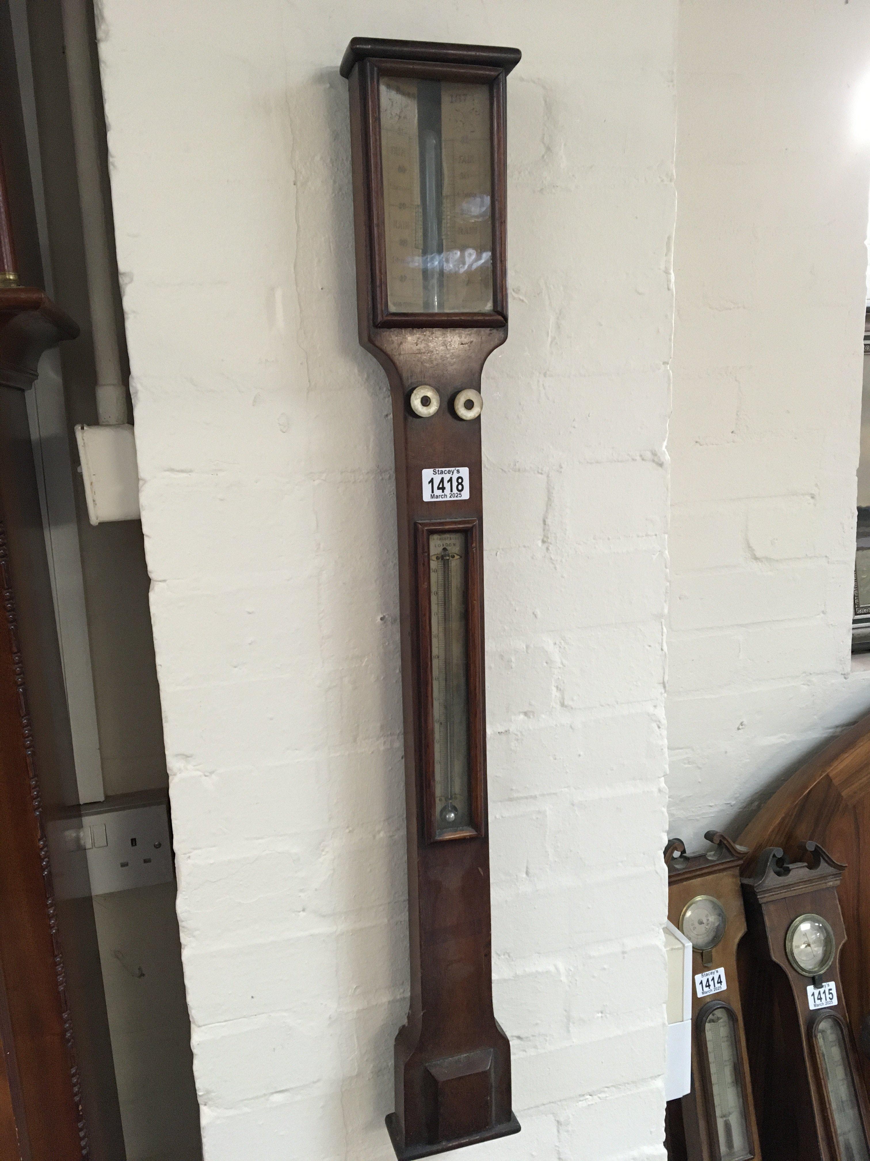 An early Victorian stick barometer with internal thermometer box maker E C Wood Cheepside London. In need of restoration sold without reserve