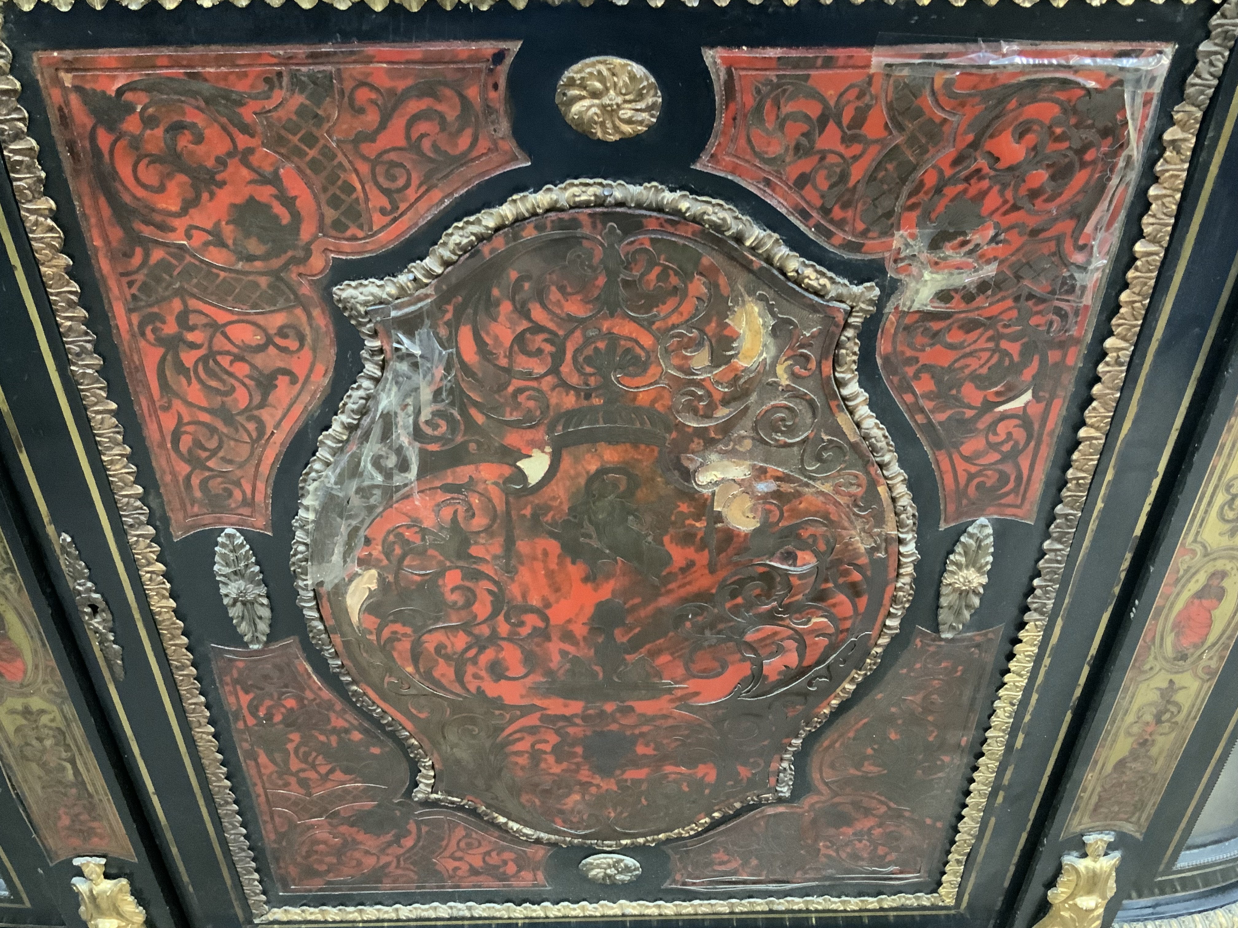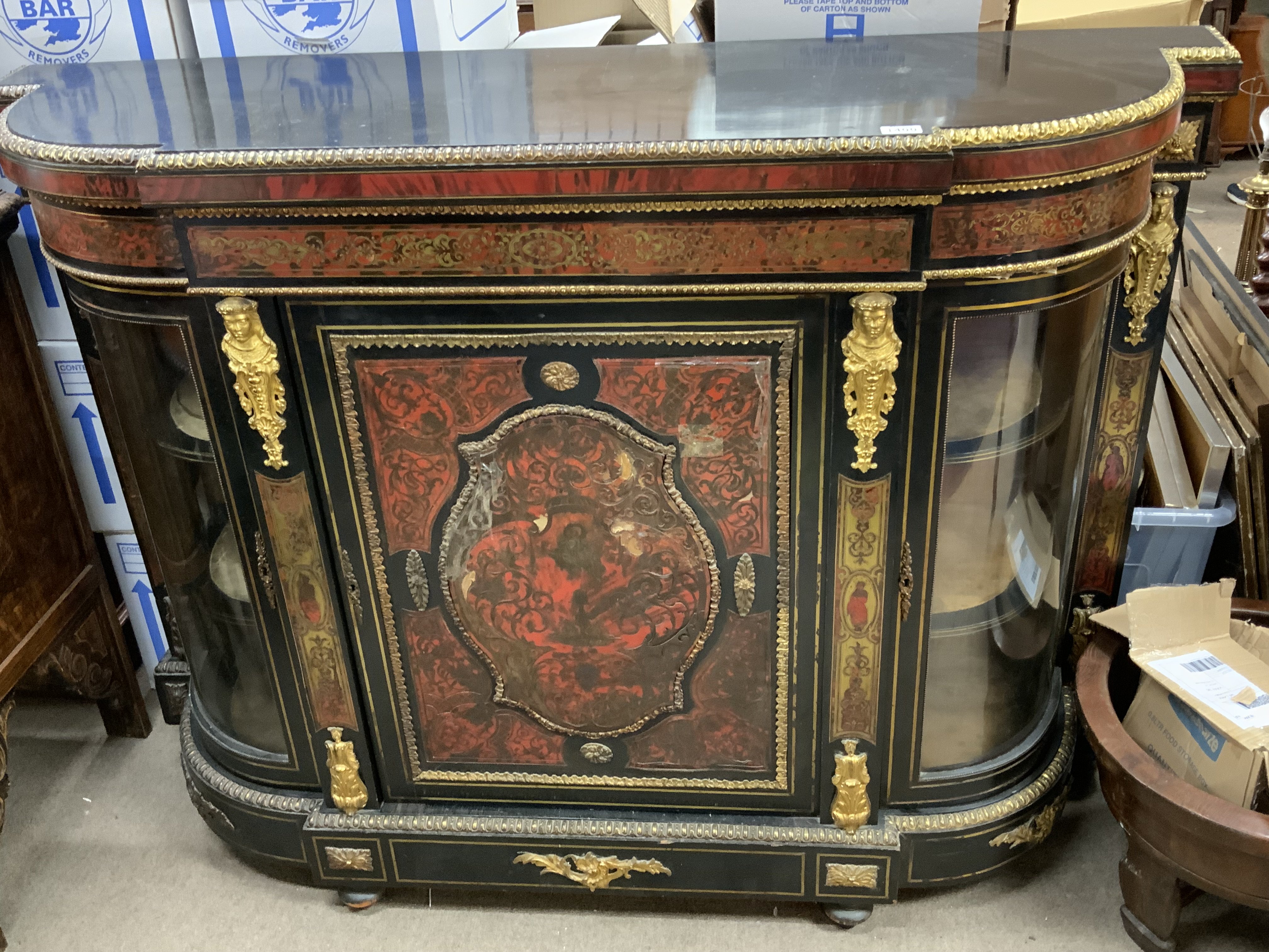 A single Victorian ebonized boulle credenza, having gilt mounts 154 x 113. Some restoration required.