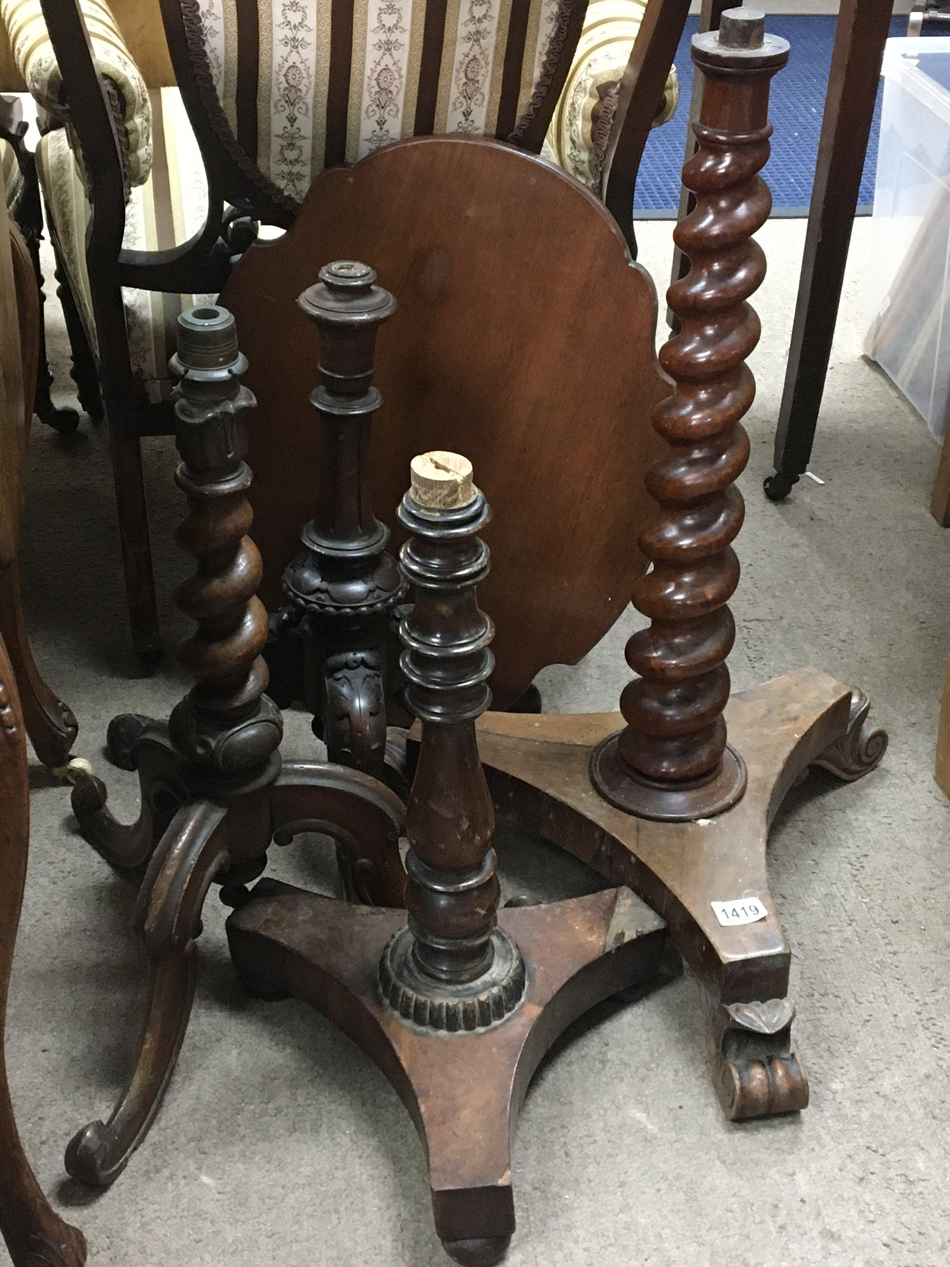A collection of Victorian walnut and rosewood occasional table bases and odd tops for spare or restoration no reserve.