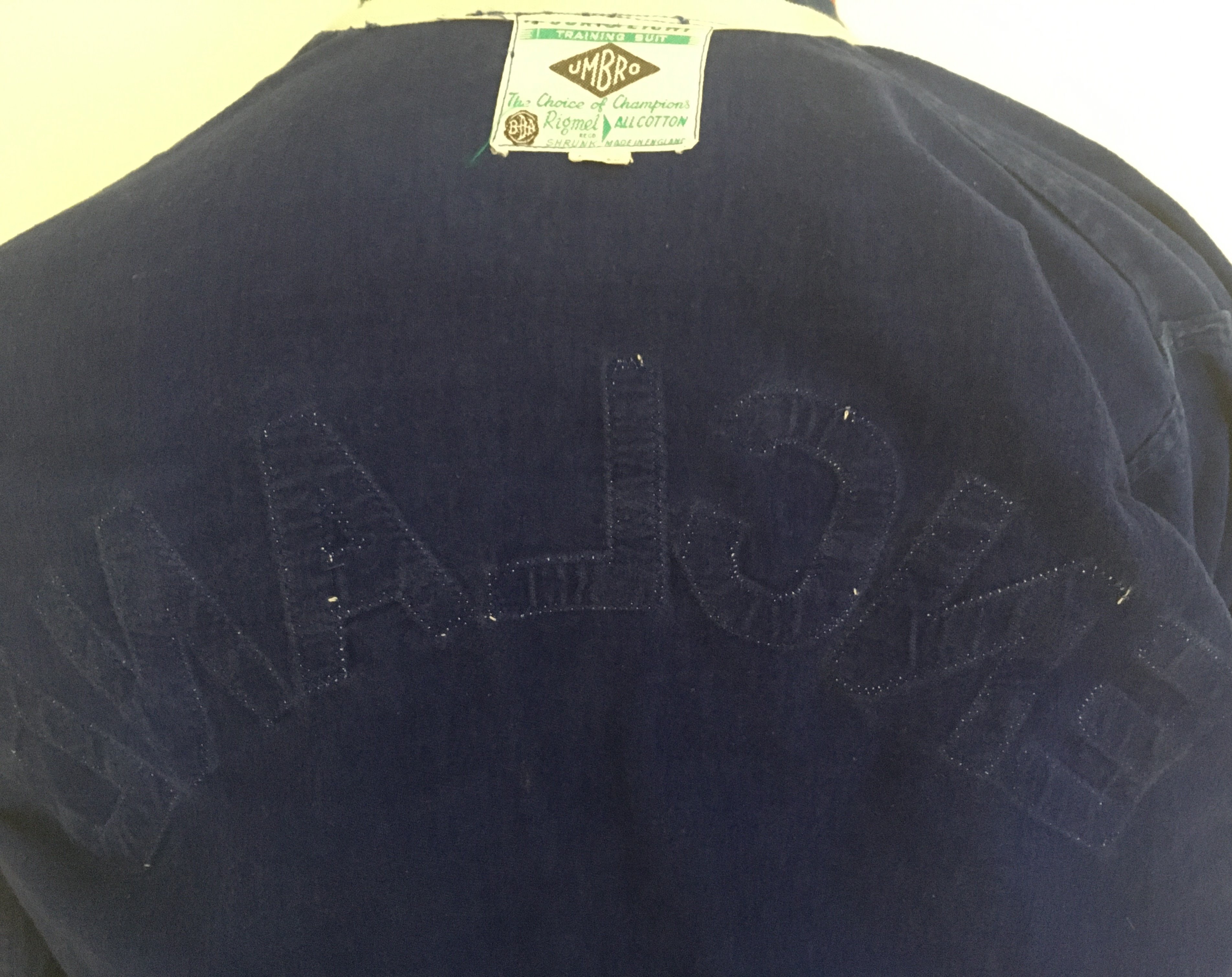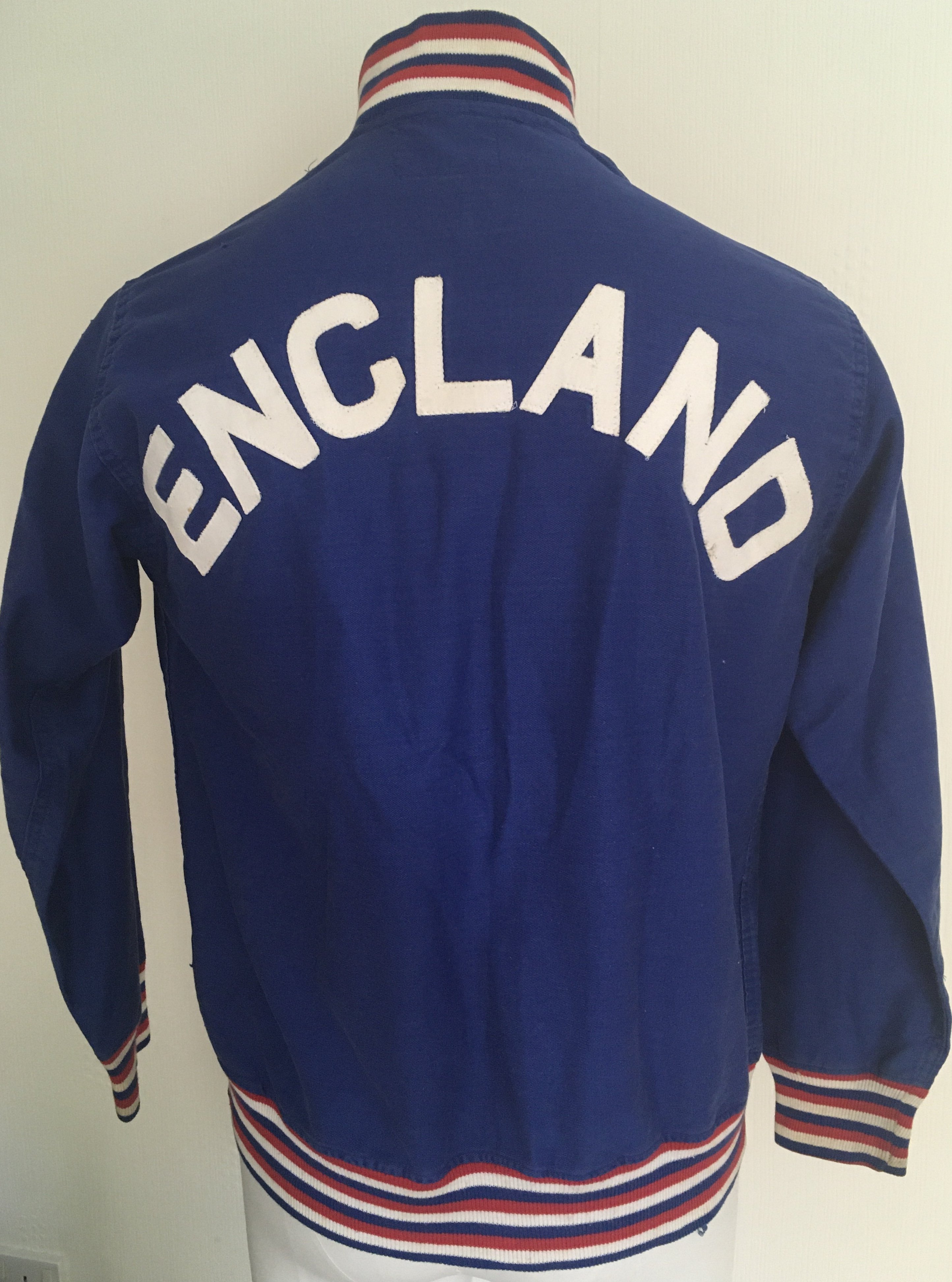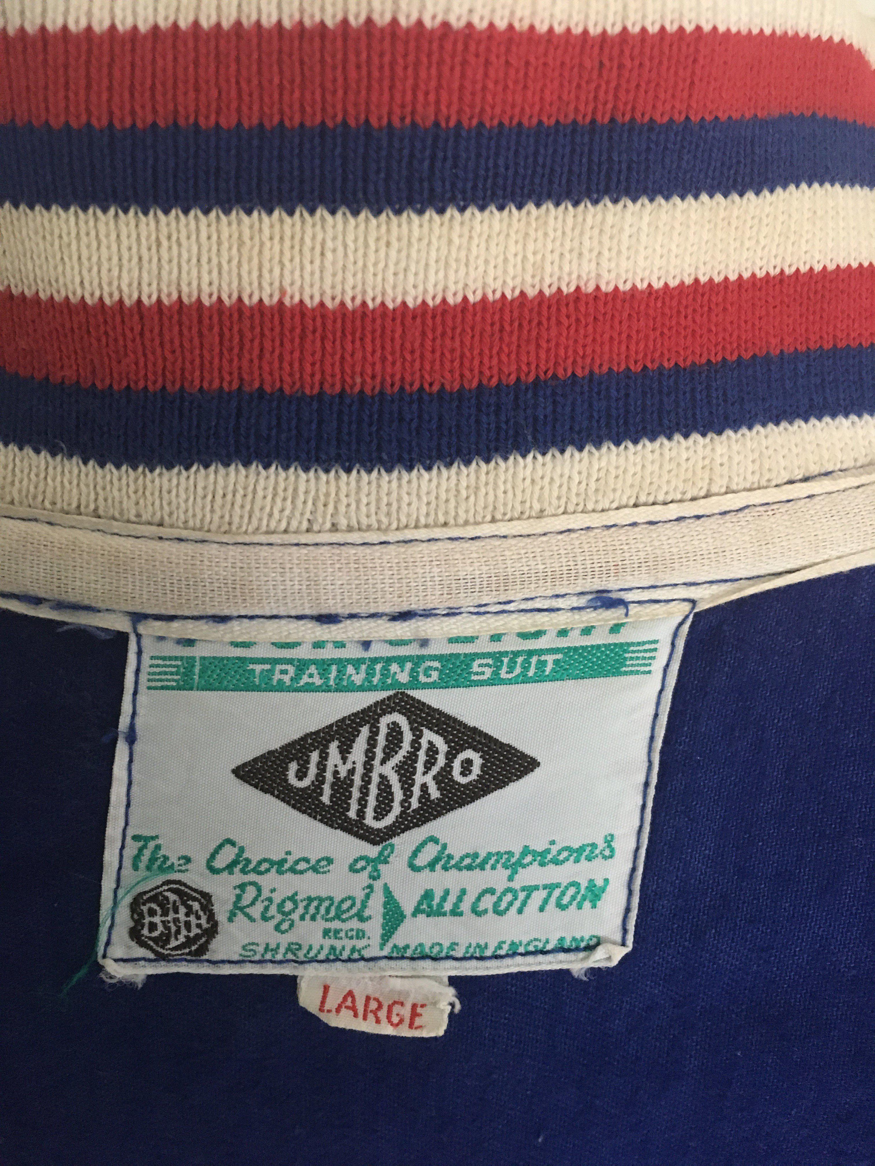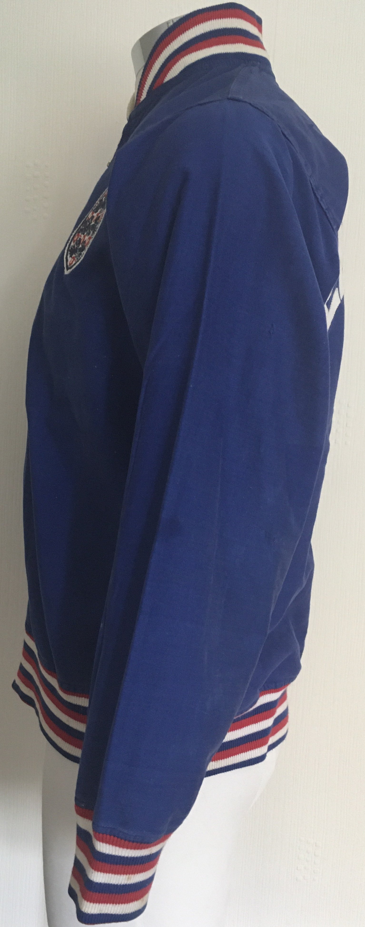 Bobby Moore England Football Tracksuit Top: Umbro top in blue with red and white trim to neck and cuffs. England stitched to rear. Letter of provenance from original vendor is pictured online and states that it was given by Bobby to Mrs Corbett who was a cleaner at Wembley. It came to vendor in a house clearance framed with a magazine picture of Bobby wearing this style top. Now removed from frame with no damage. The make up of this top is correct for around 1970 with embroidery and labelling the same as previous similar items we have had direct from players over the years.