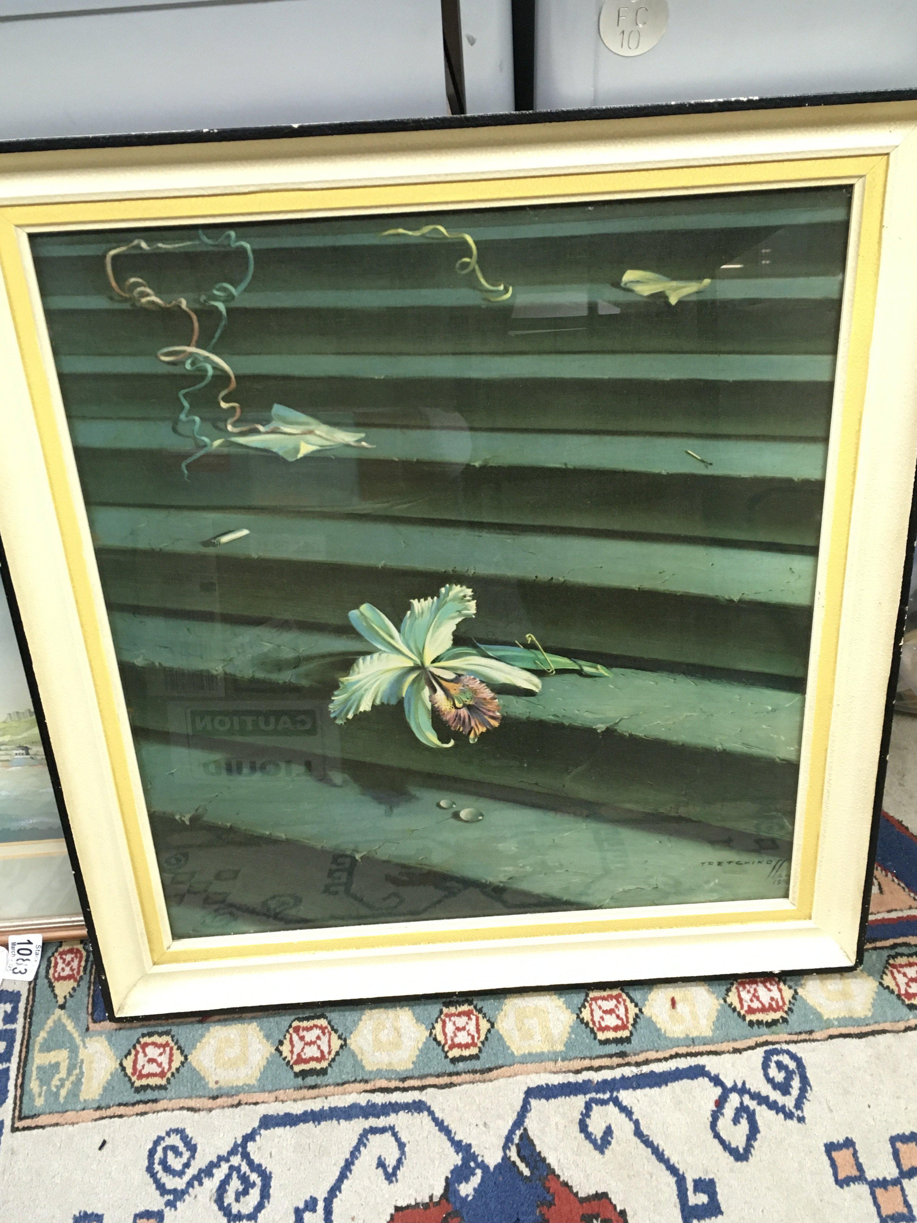 A circa 1970 lost orchid Tretchiko print . Frame dimensions 57x64cm
