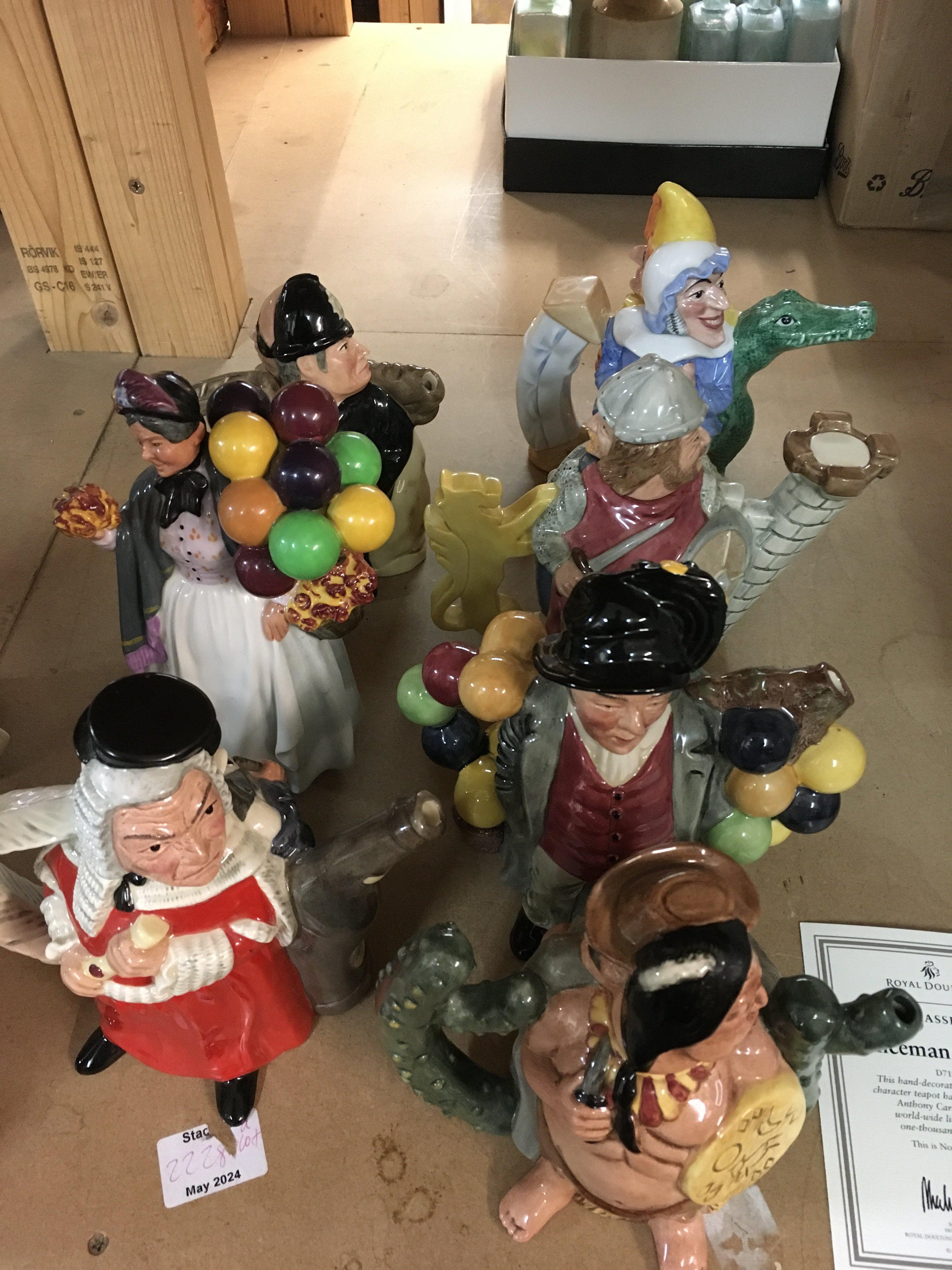 A collection of Eight Doulton Classics tea pots and a ballon seller .