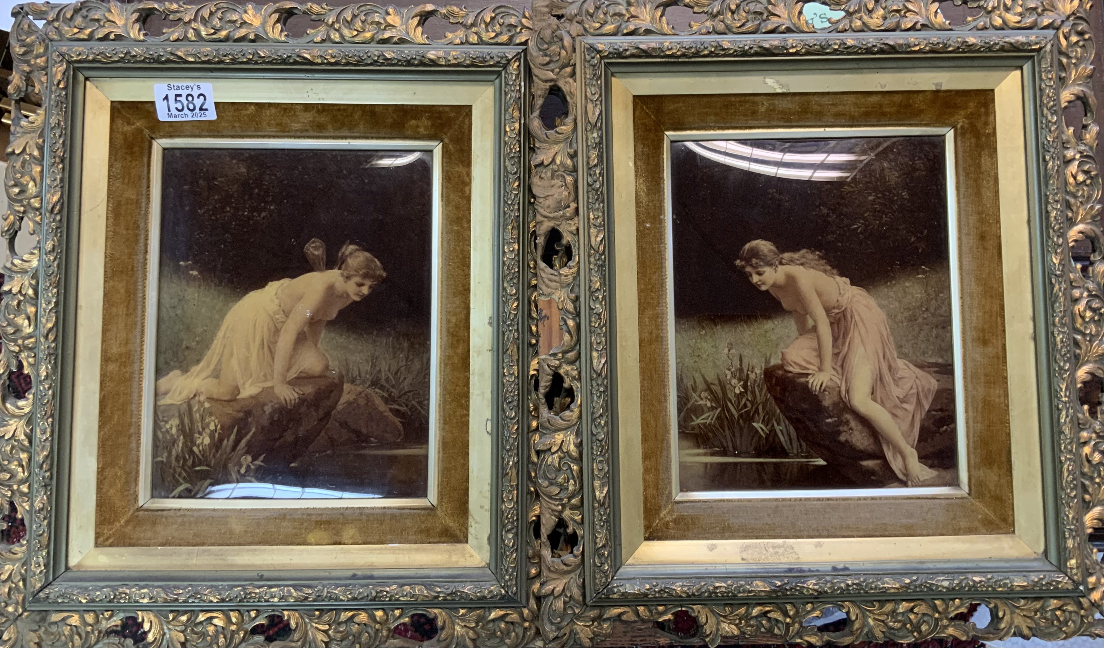 A pair of Victorian christolians with reflective views of a Nude Maiden and a Nymph