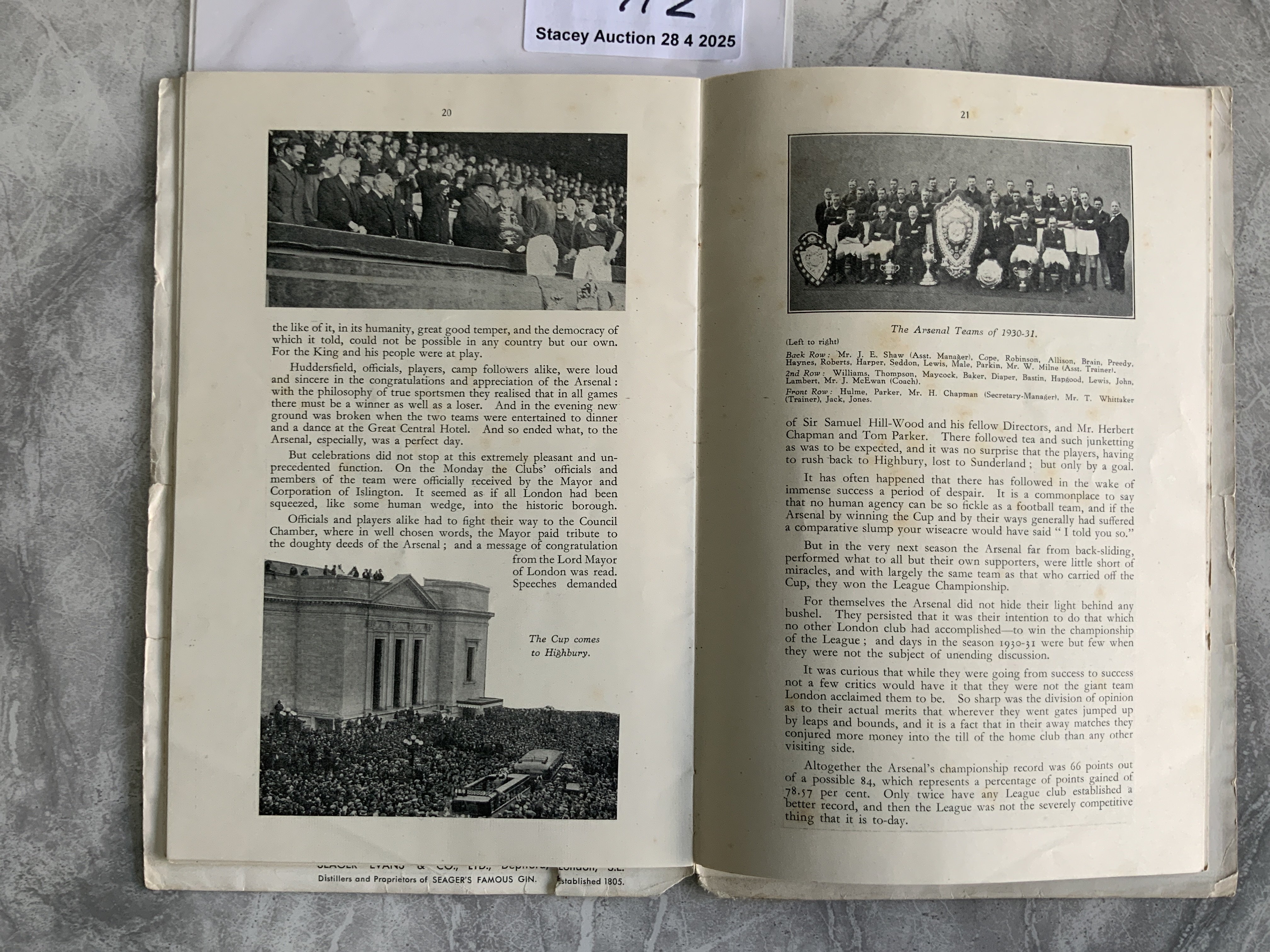 Romance Of The Arsenal Football Brochure: Hard to obtain 24 page booklet regarding the successful 1930s teams. Cover torn and detached from contents but complete. The cover was made bigger than the contents so this is usually the case.