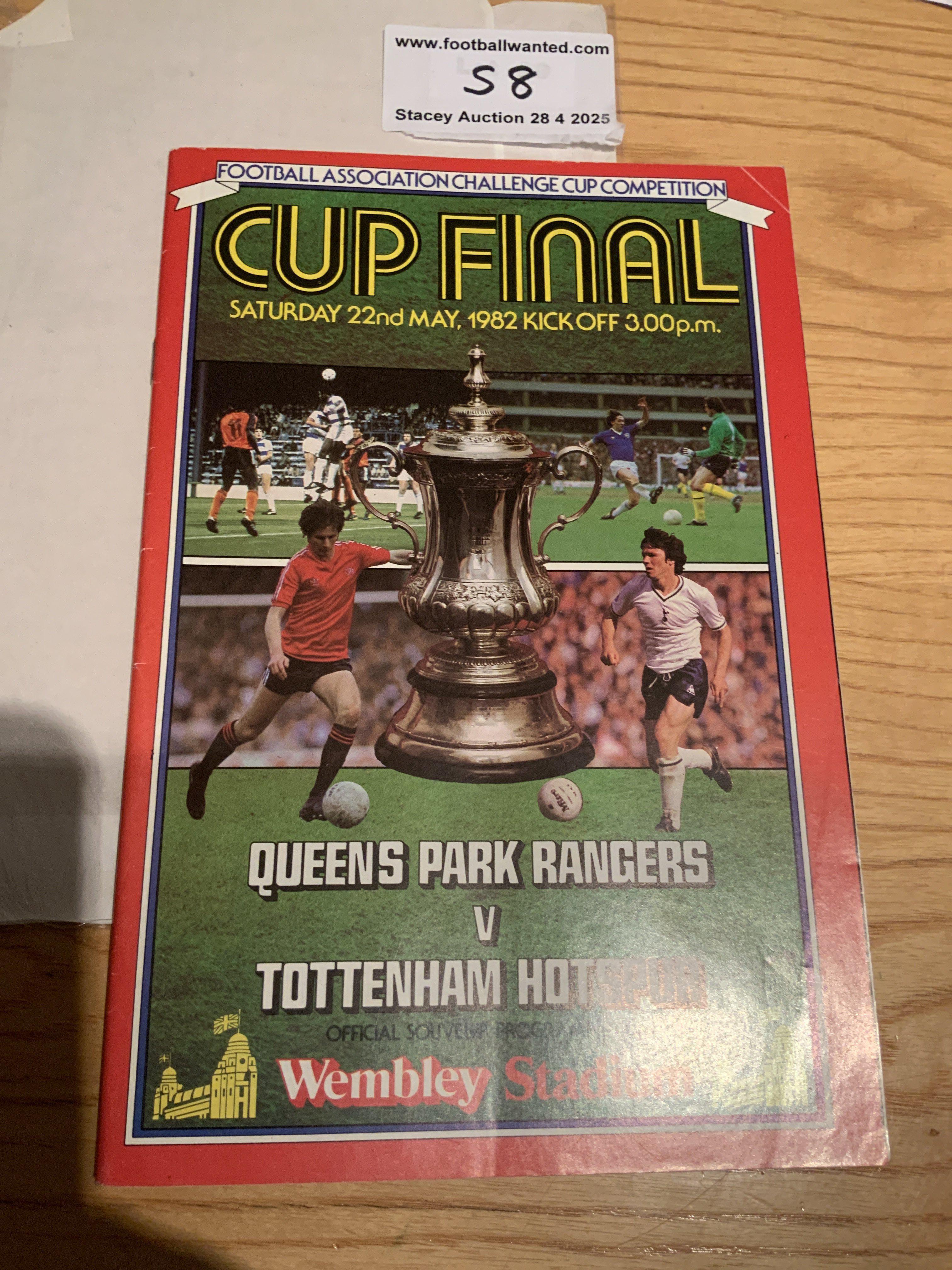 1982 Signed FA Cup Final Football Programme: First match at Wembley signed to team page by 9 QPR and 7 Tottenham. Includes both managers Burkinshaw and Venables.