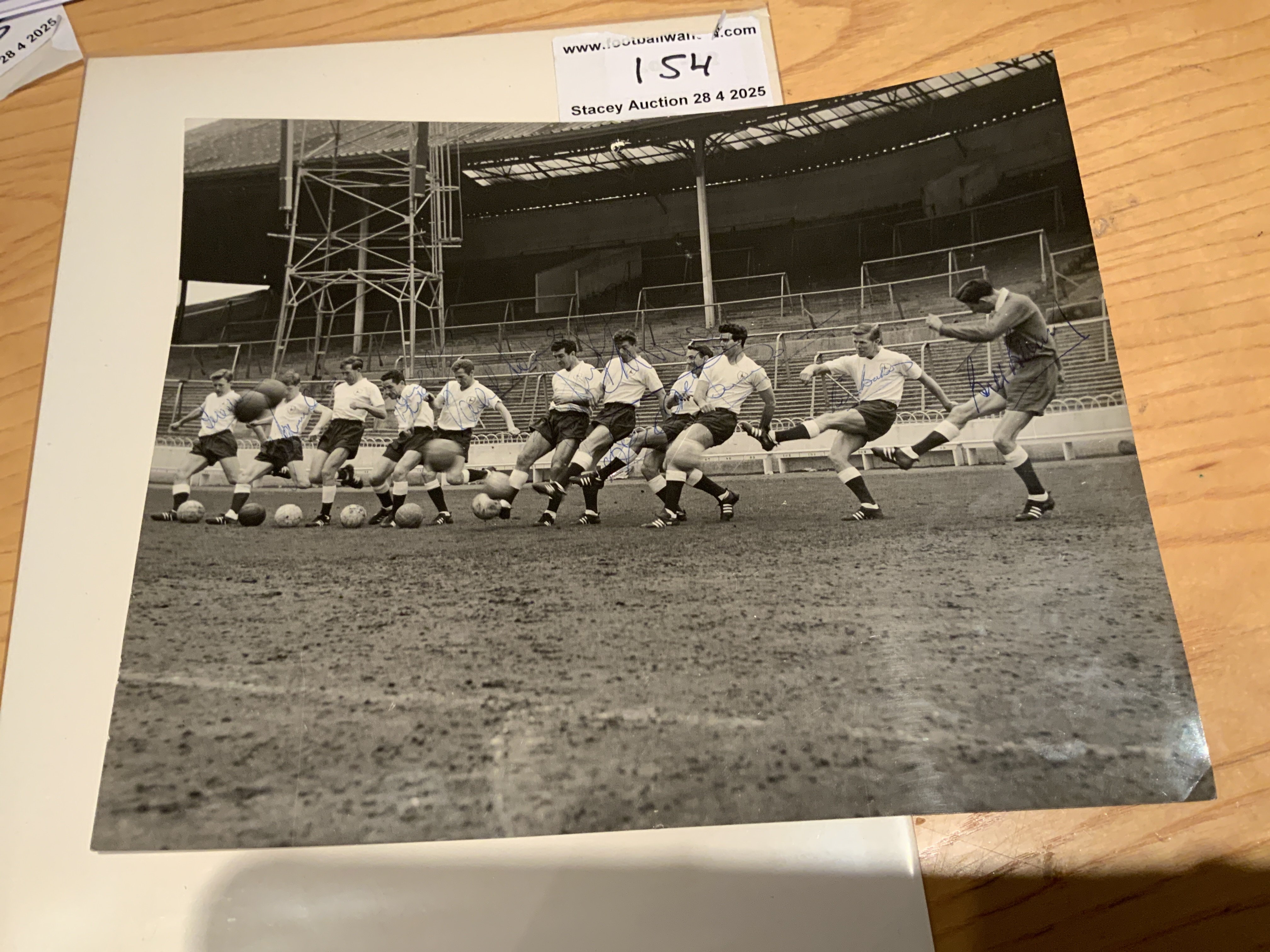 Tottenham Double Winners Signed Football Press Photos: Depicts 11 players all kicking a ball of which 10 have hand signed. Includes Mackay Baker Jones and Brown. 10 x 8 black and white photo with press stamp to rear.