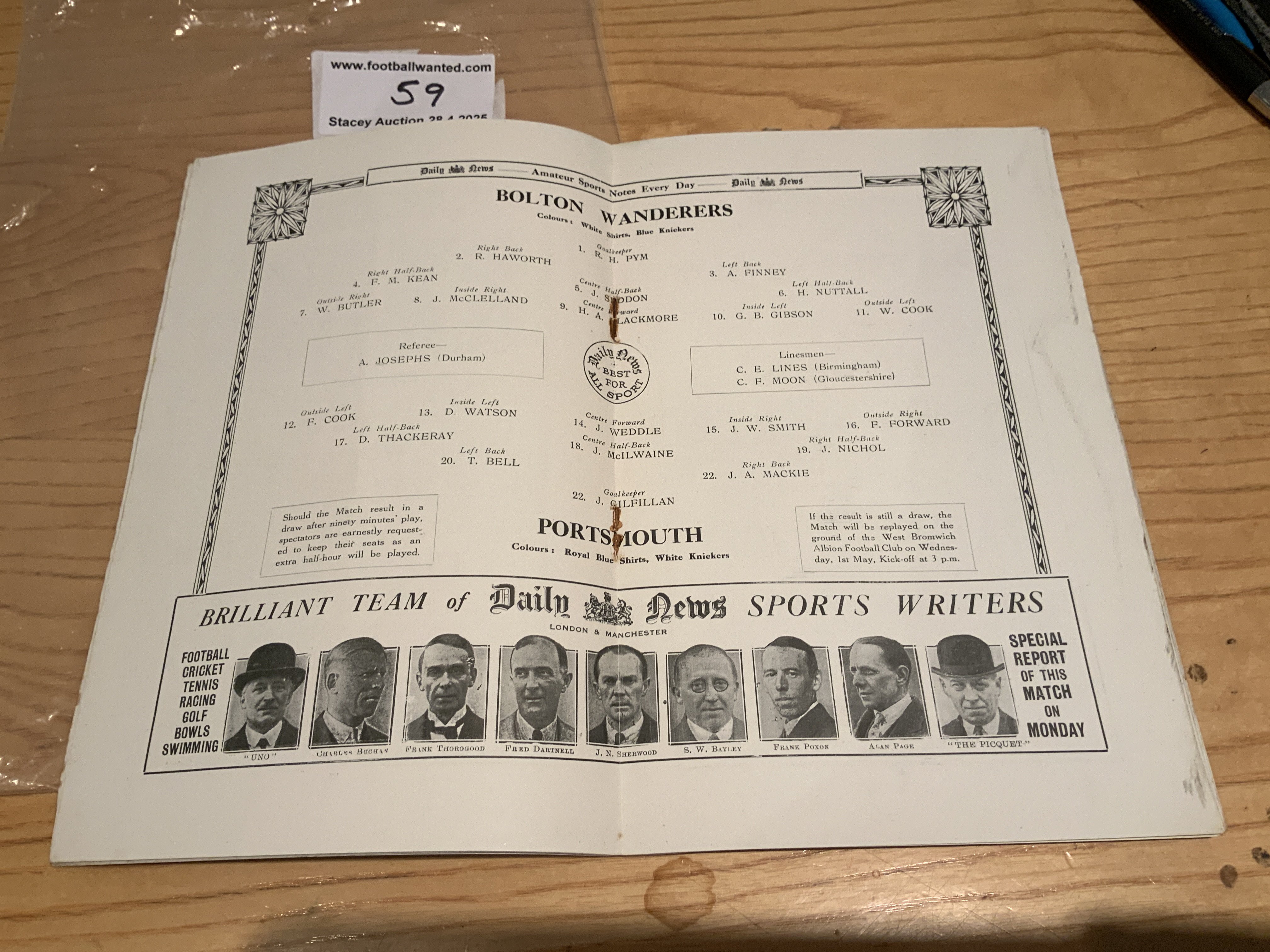 1929 FA Cup Final Football Programme: Bolton v Portsmouth in very good condition with no team changes. Rusty staples holding firm.