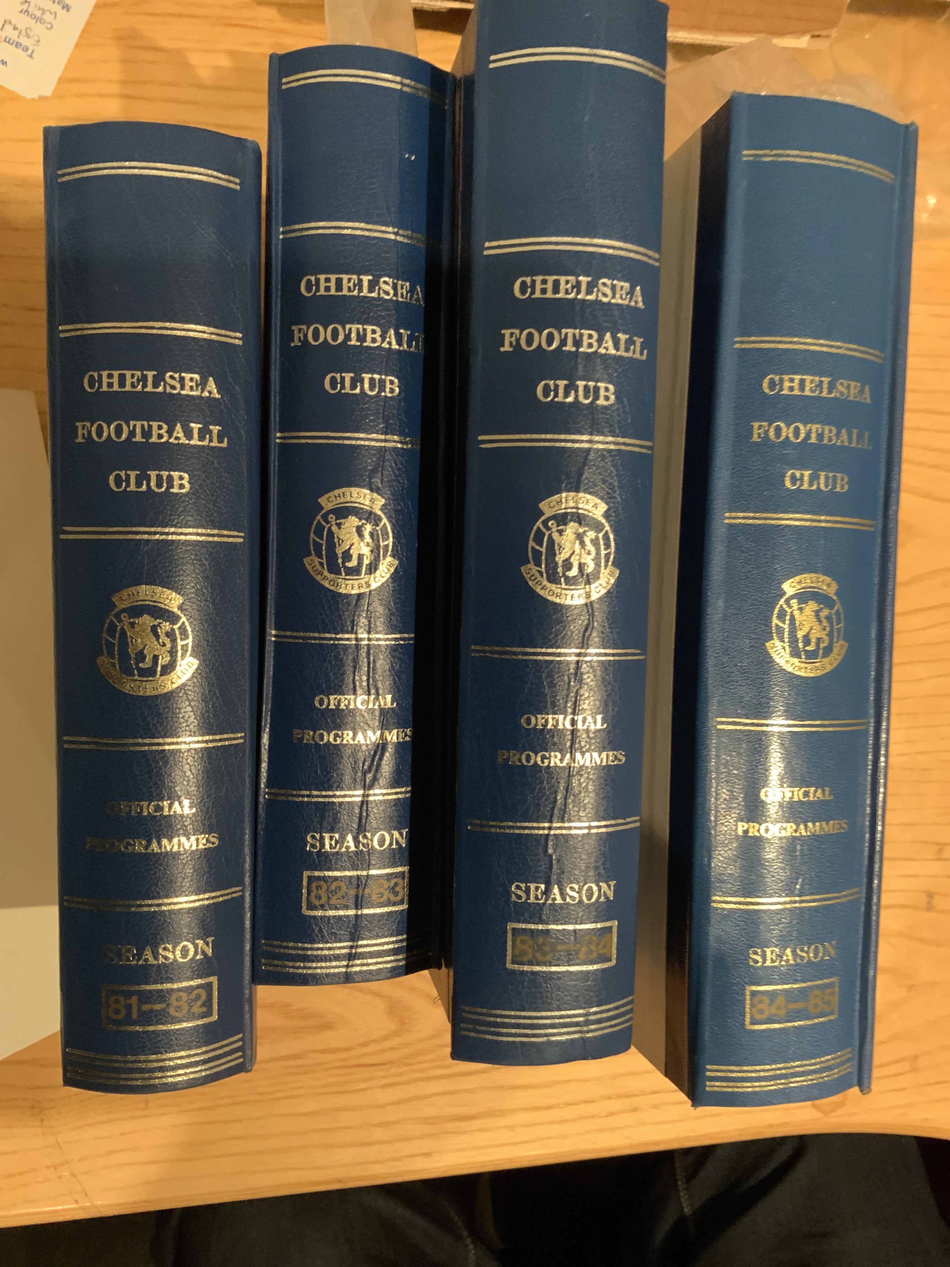 Chelsea Home Football Programmes: Look complete of first team all in official binders from 74/75 to 84/85 lacking 79/80. (10)