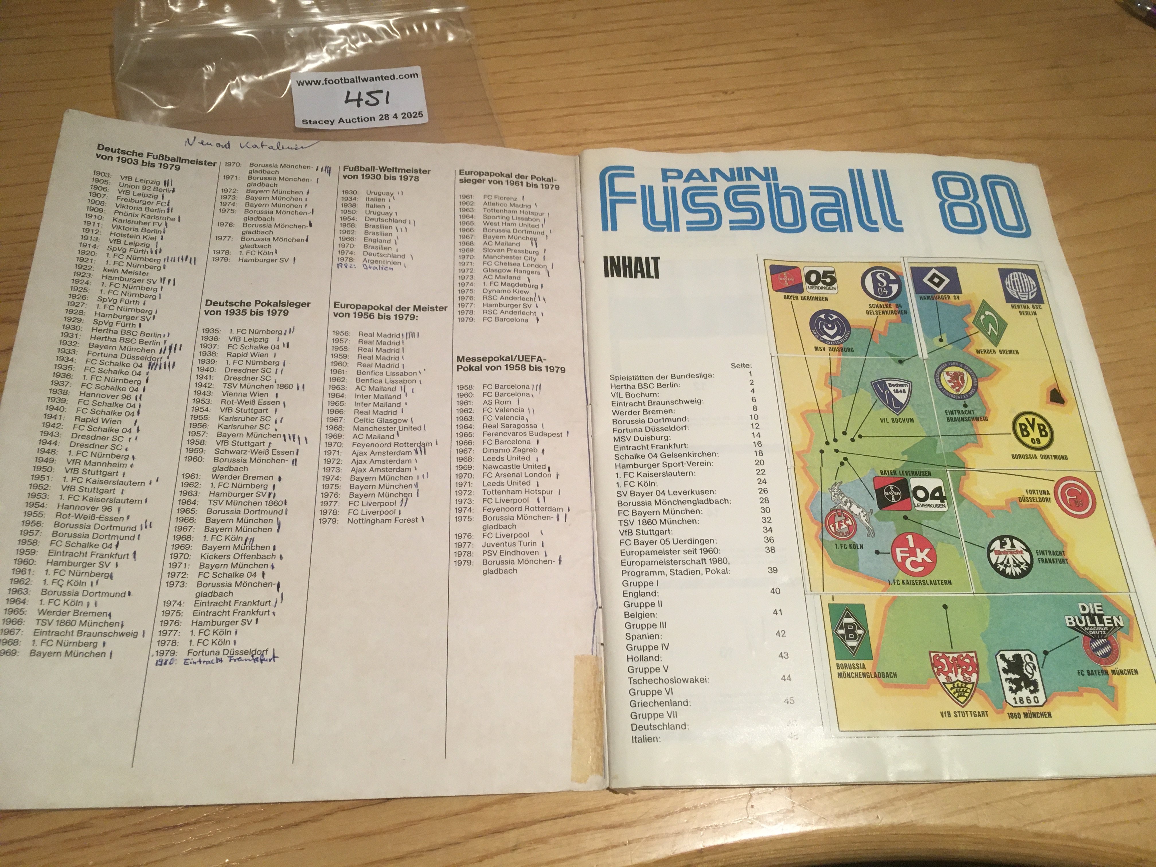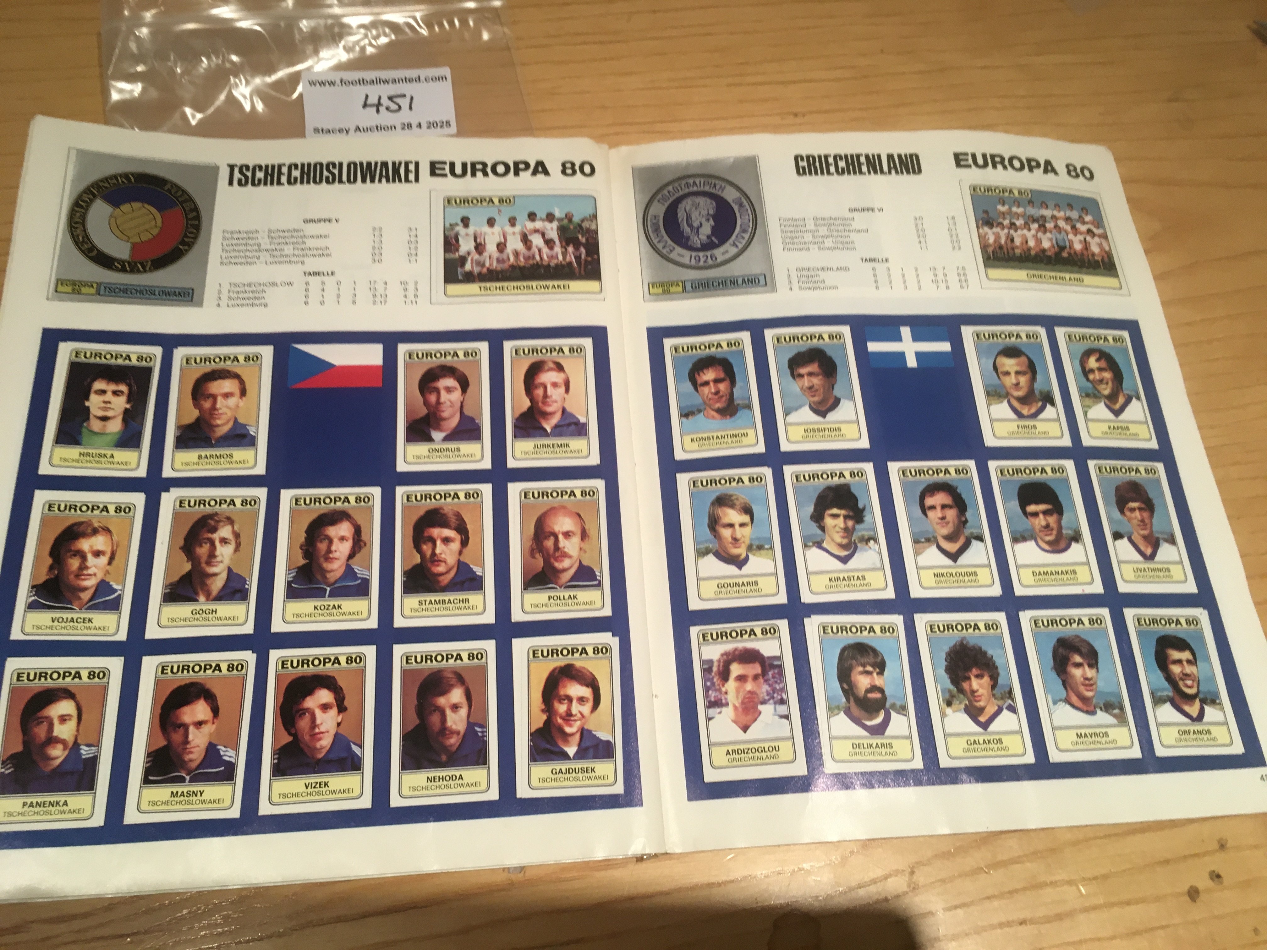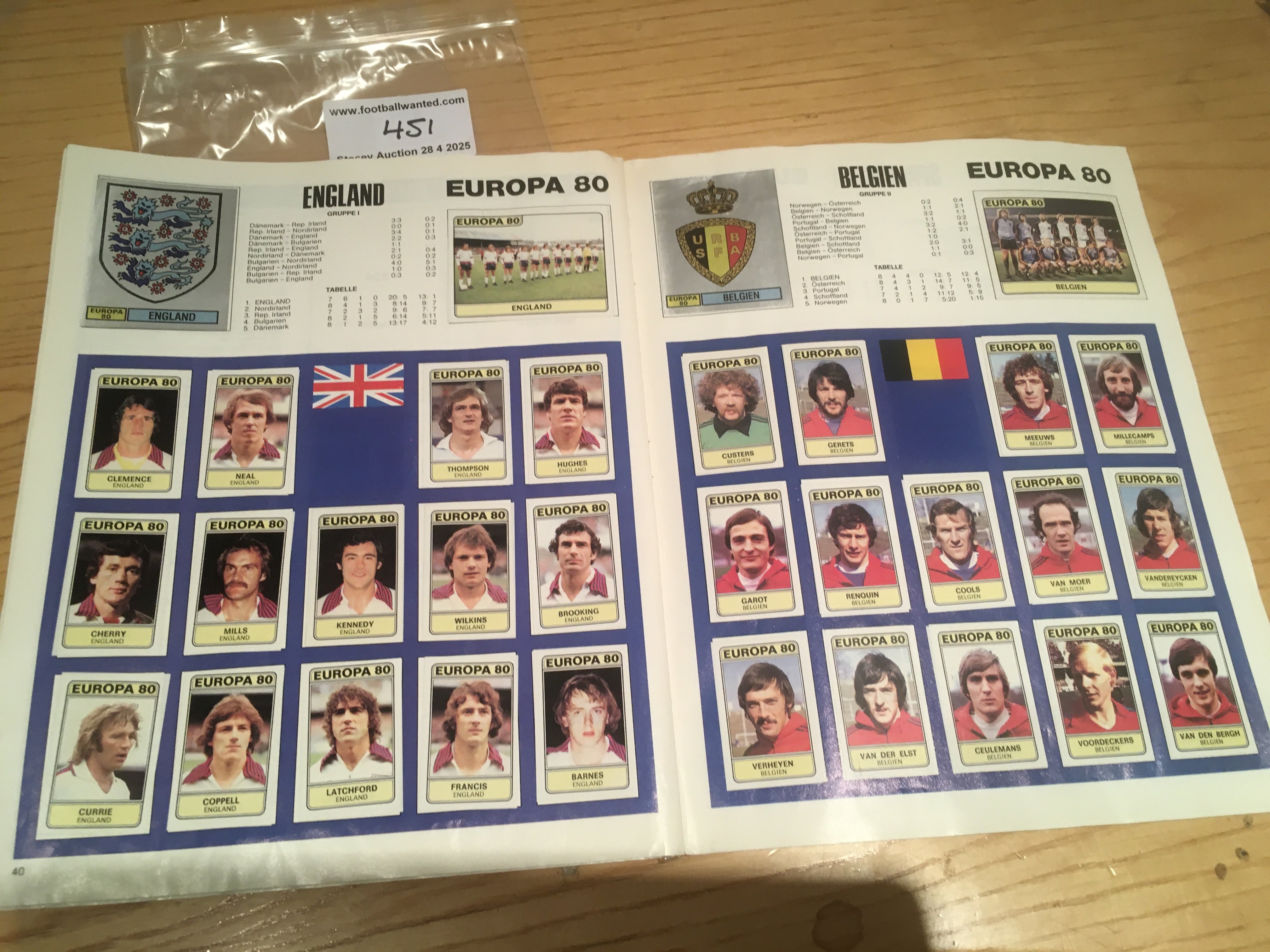 Panini Fussball 80 German Football Album: League teams from Germany plus all 8 Europa 80 National teams to include England Italy Germany Spain Holland Greece Belgium and Czechoslovakia. Complete in excellent condition with some pen marks on check list page.