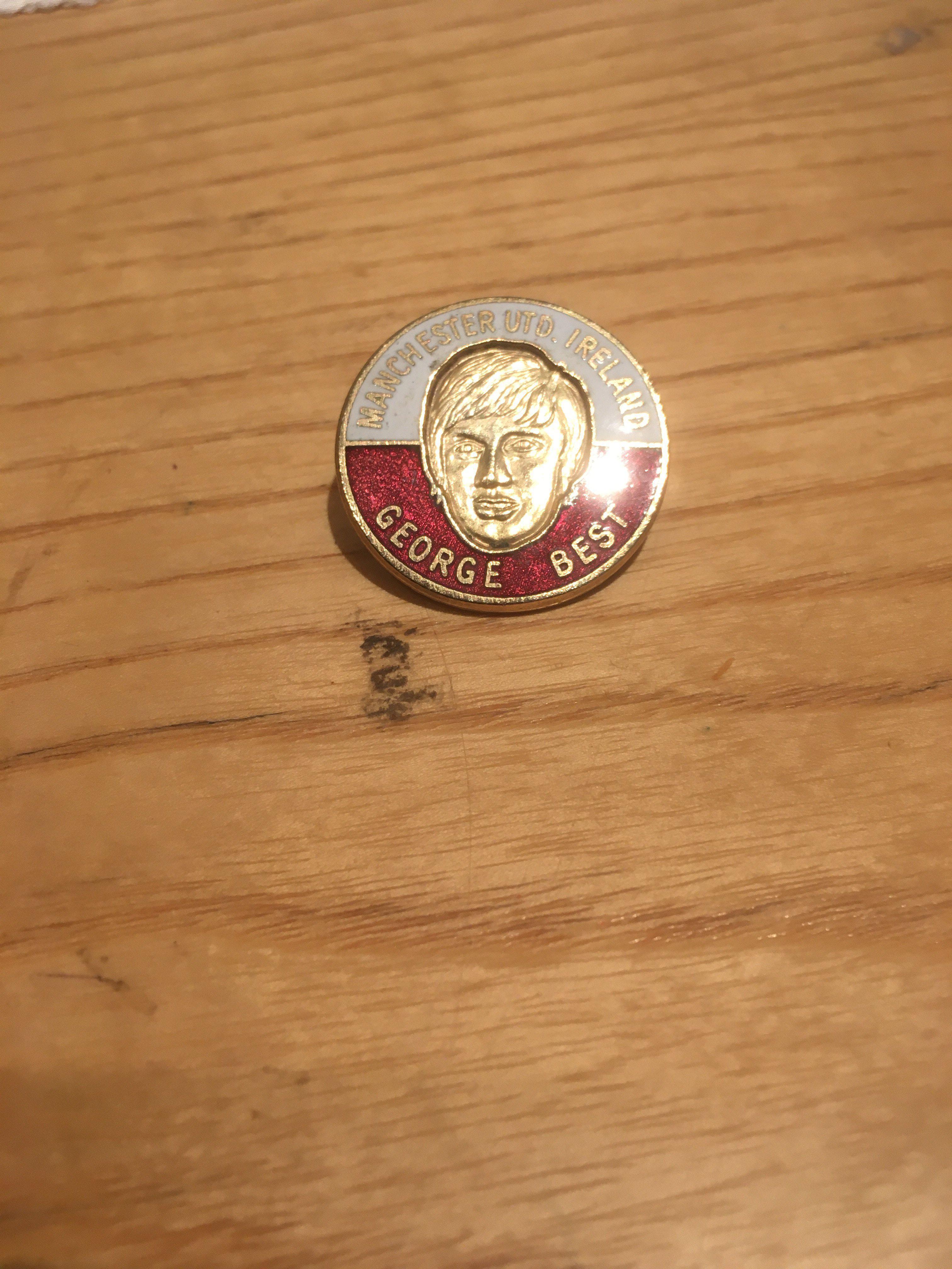 George Best Football Memorabilia: Pennant Rosette and badge all featuring George Best. Excellent. (3)