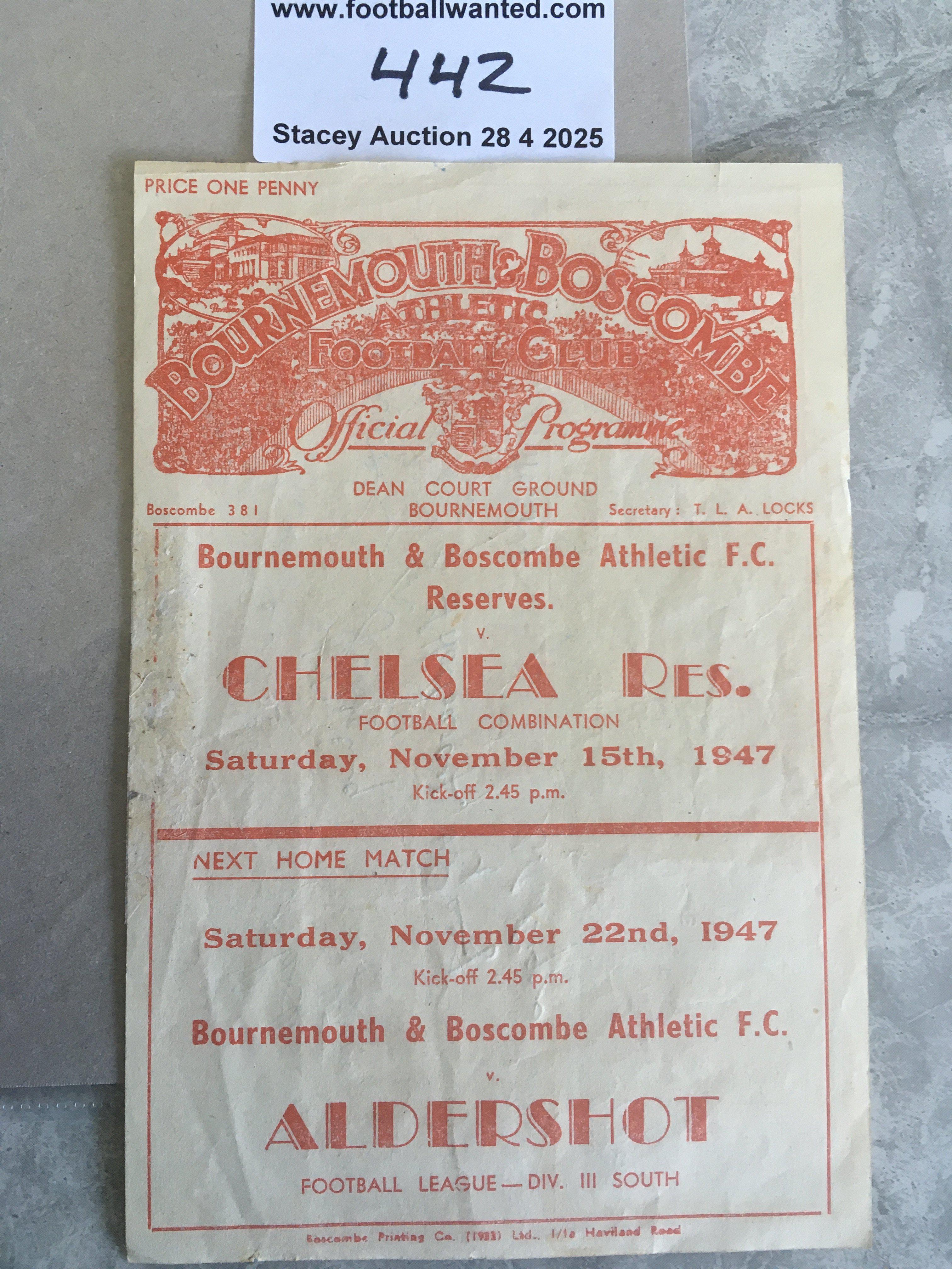 47/48 Bournemouth v Chelsea Signed Football Combination Programme: Rare single sheet dated 15 11 1947 fully signed by the Bournemouth team. Very good.