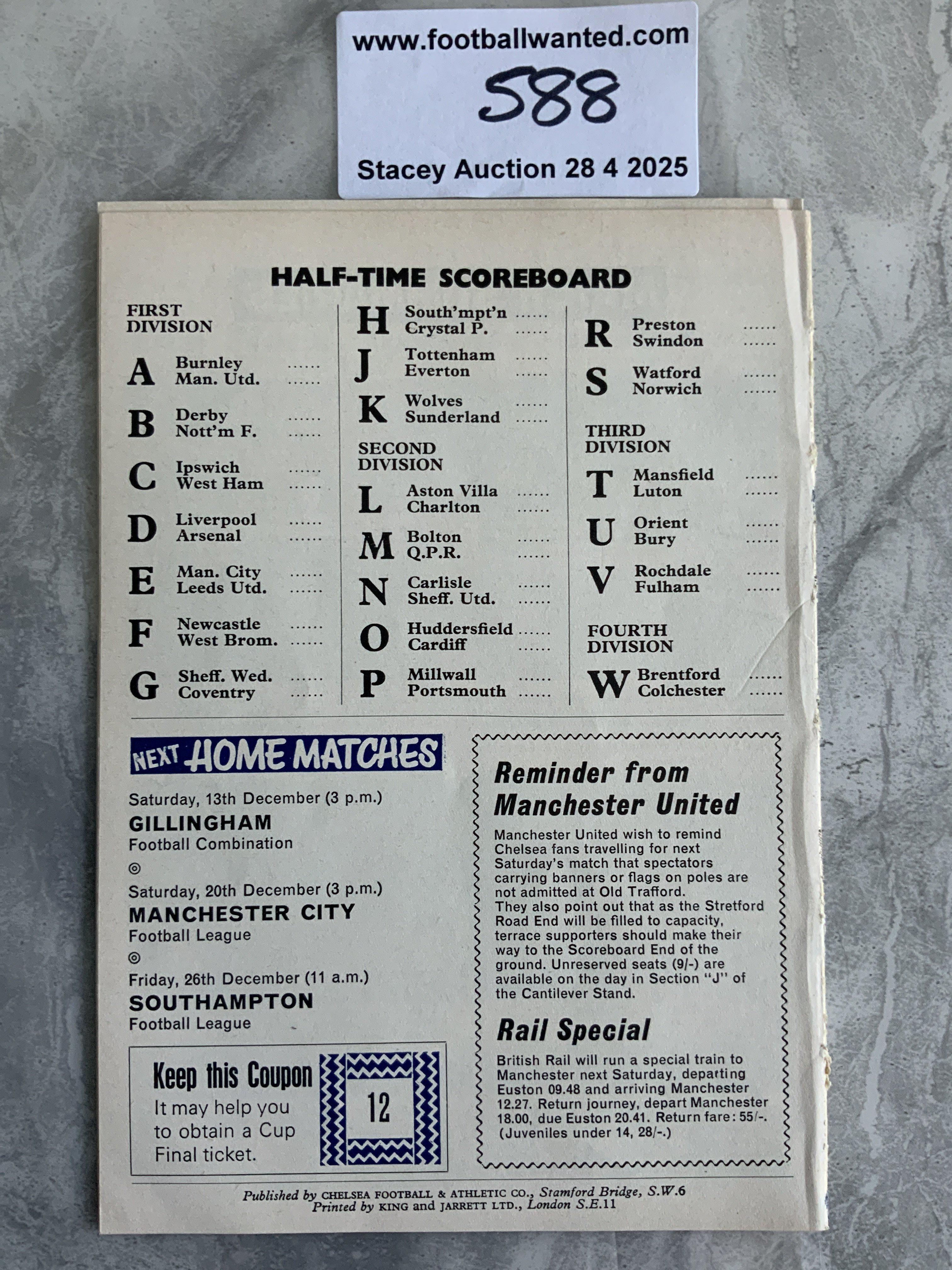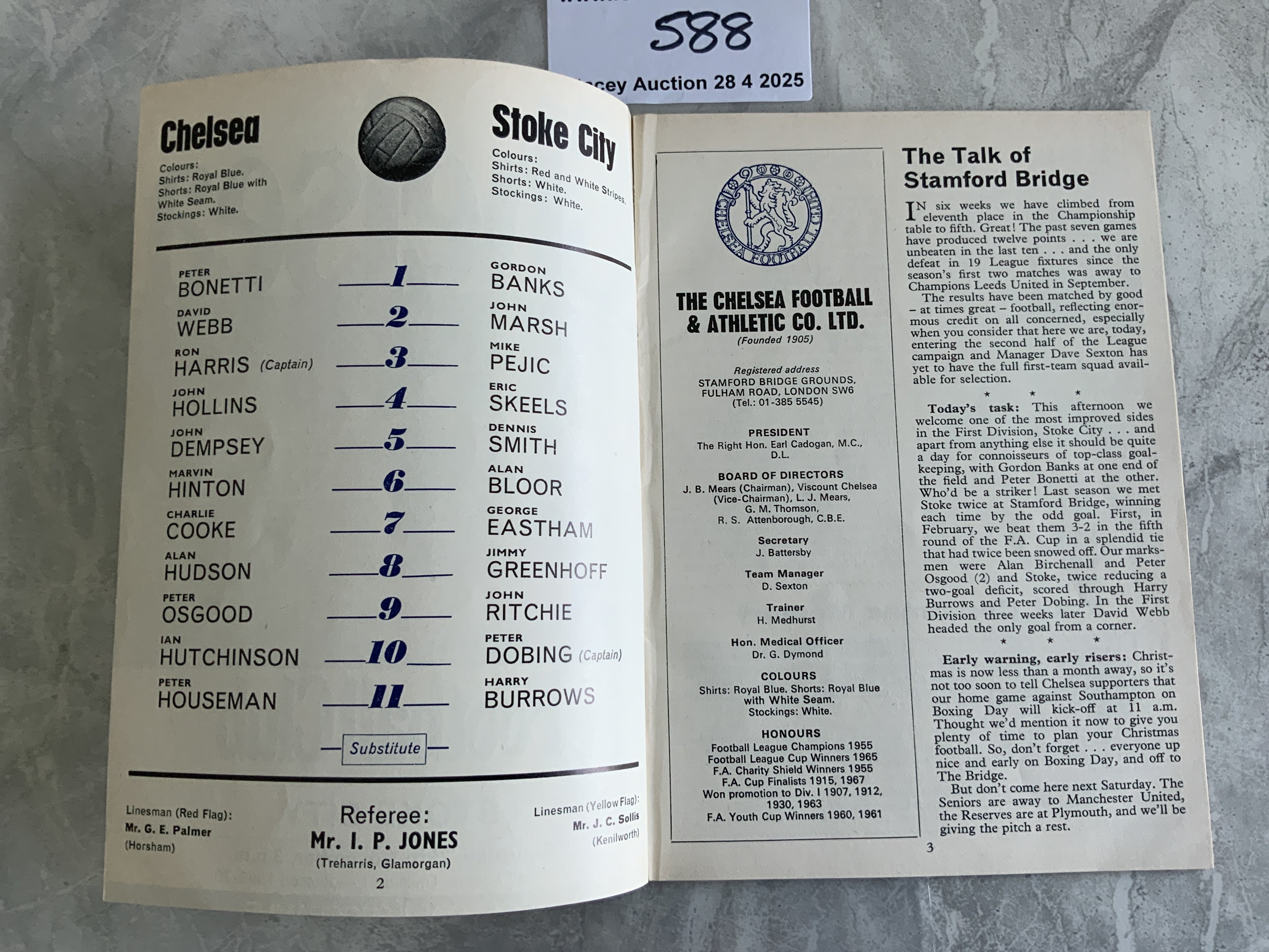 69/70 Chelsea v Stoke City Postponed Football Programme: Hard to obtain dated 29 11 1969. Ex bound with covers has slightest trim.