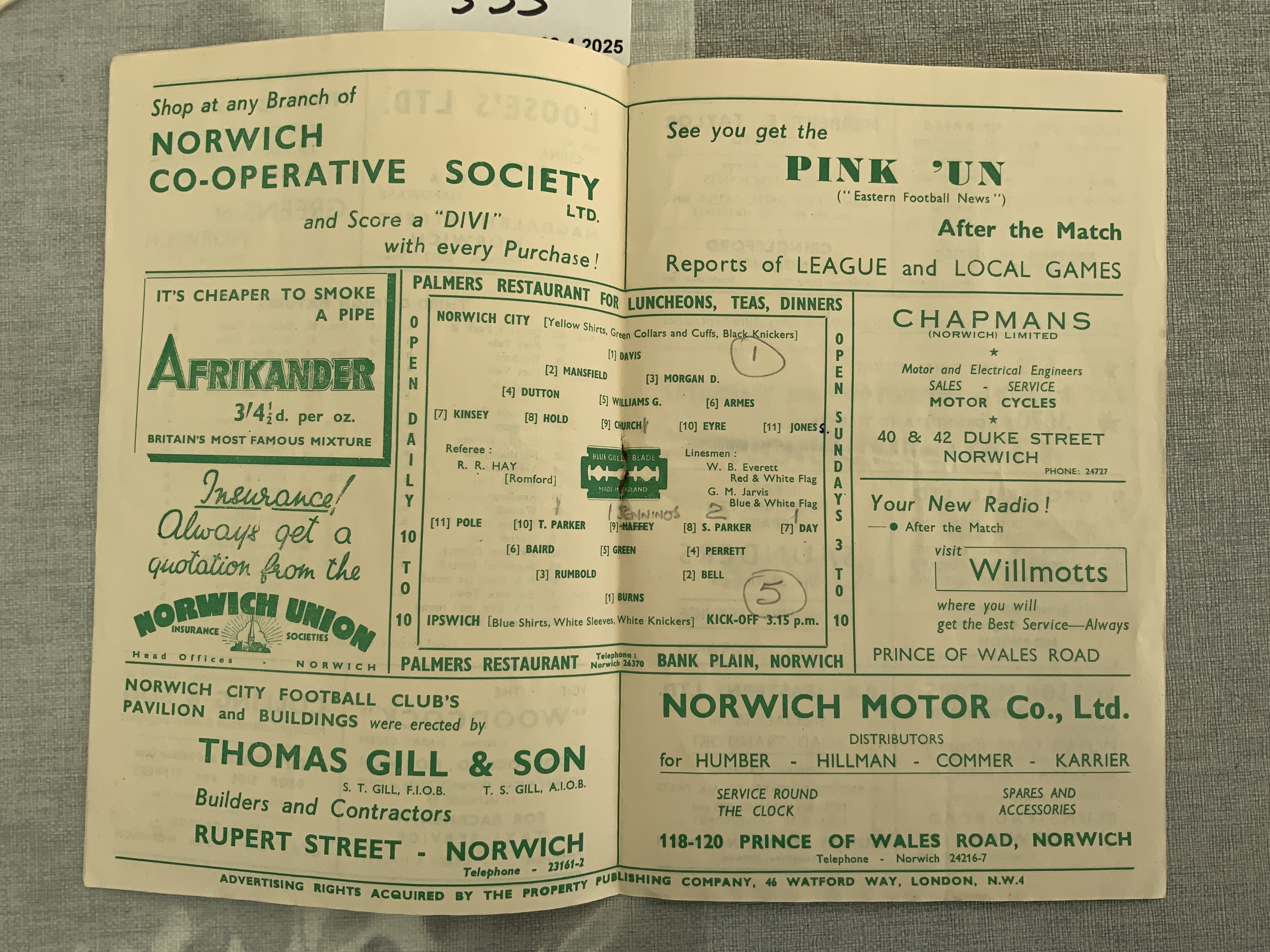 47/48 Norwich City v Ipswich Town Football Programme: Very good condition with pencilled team changes.